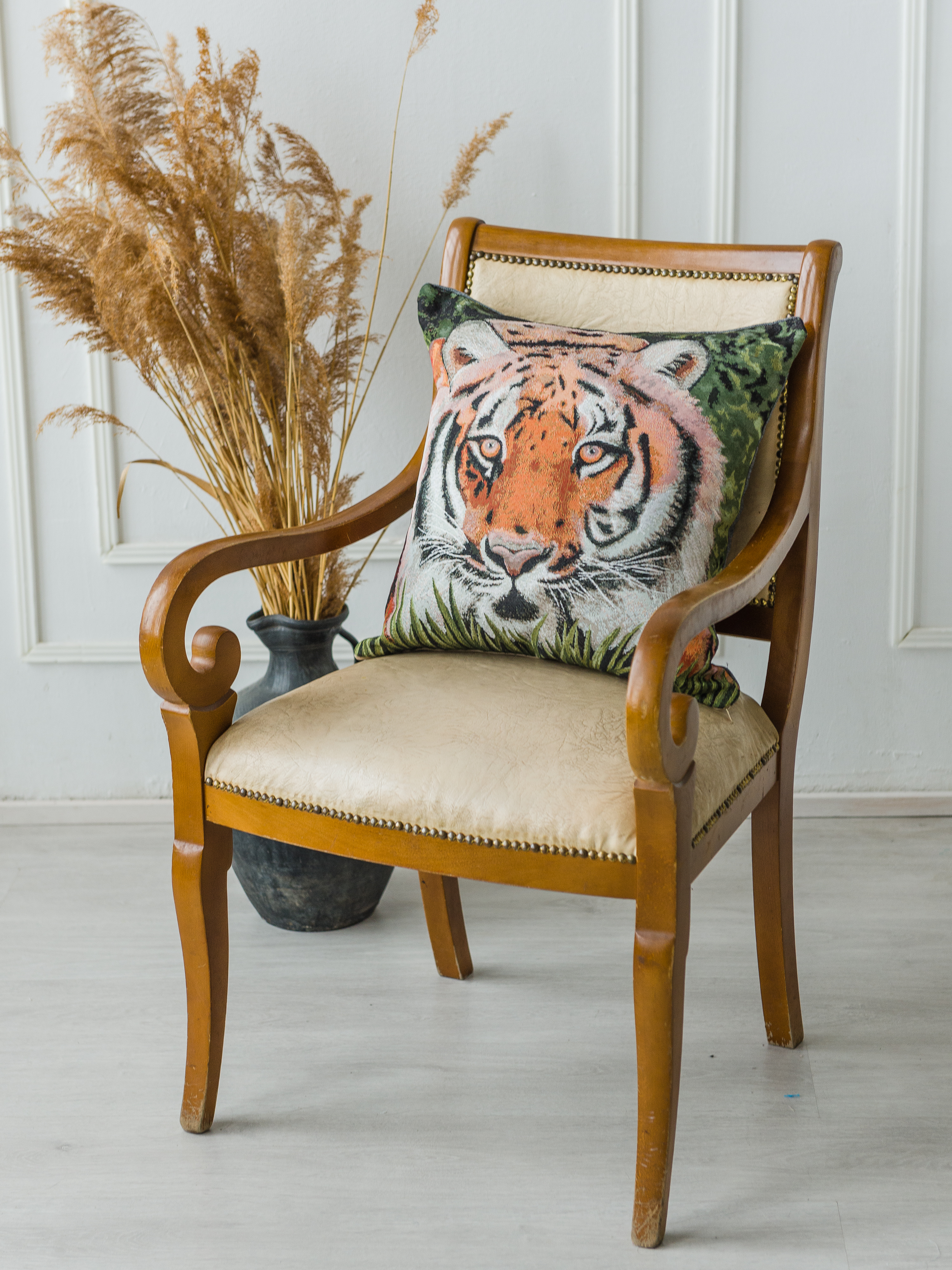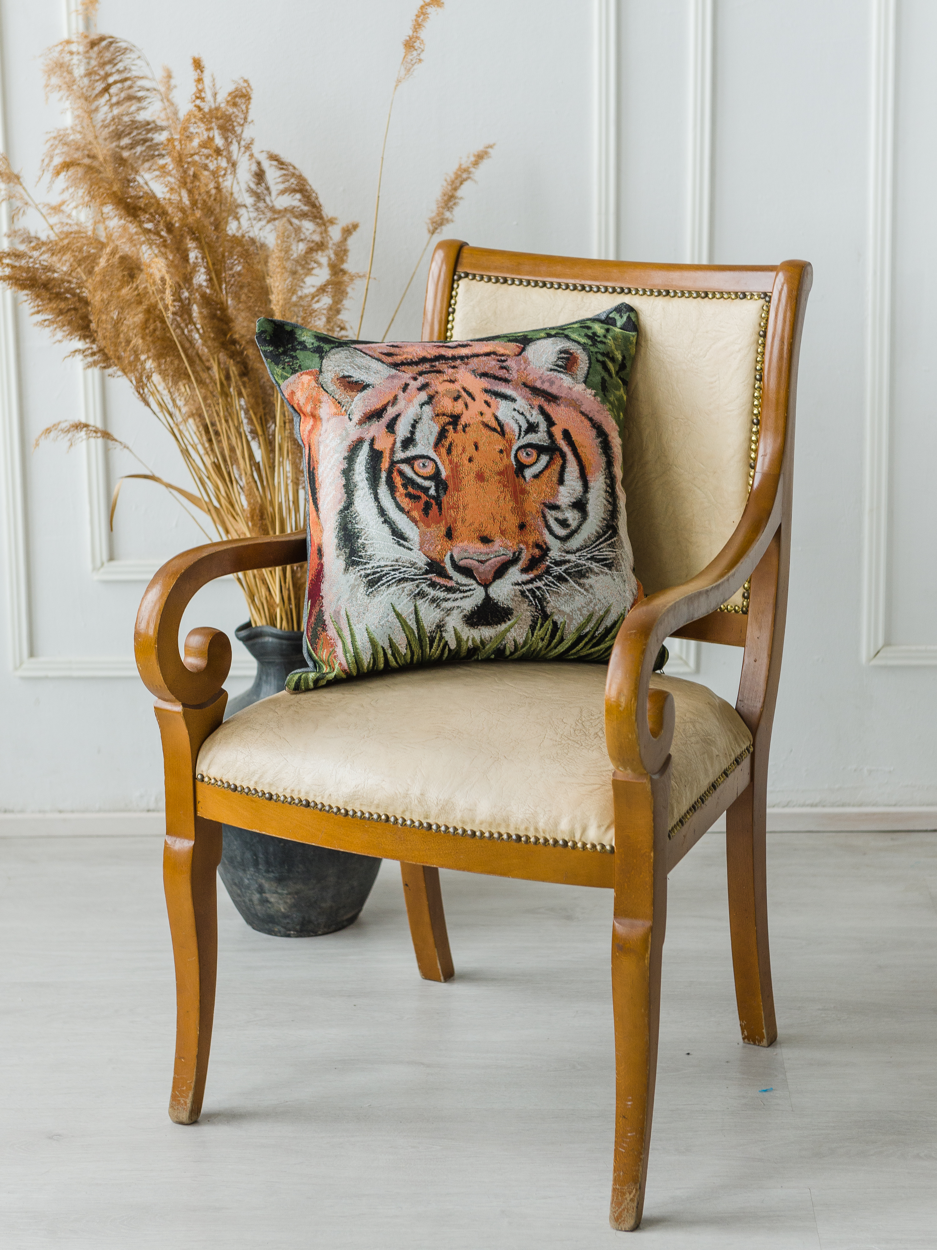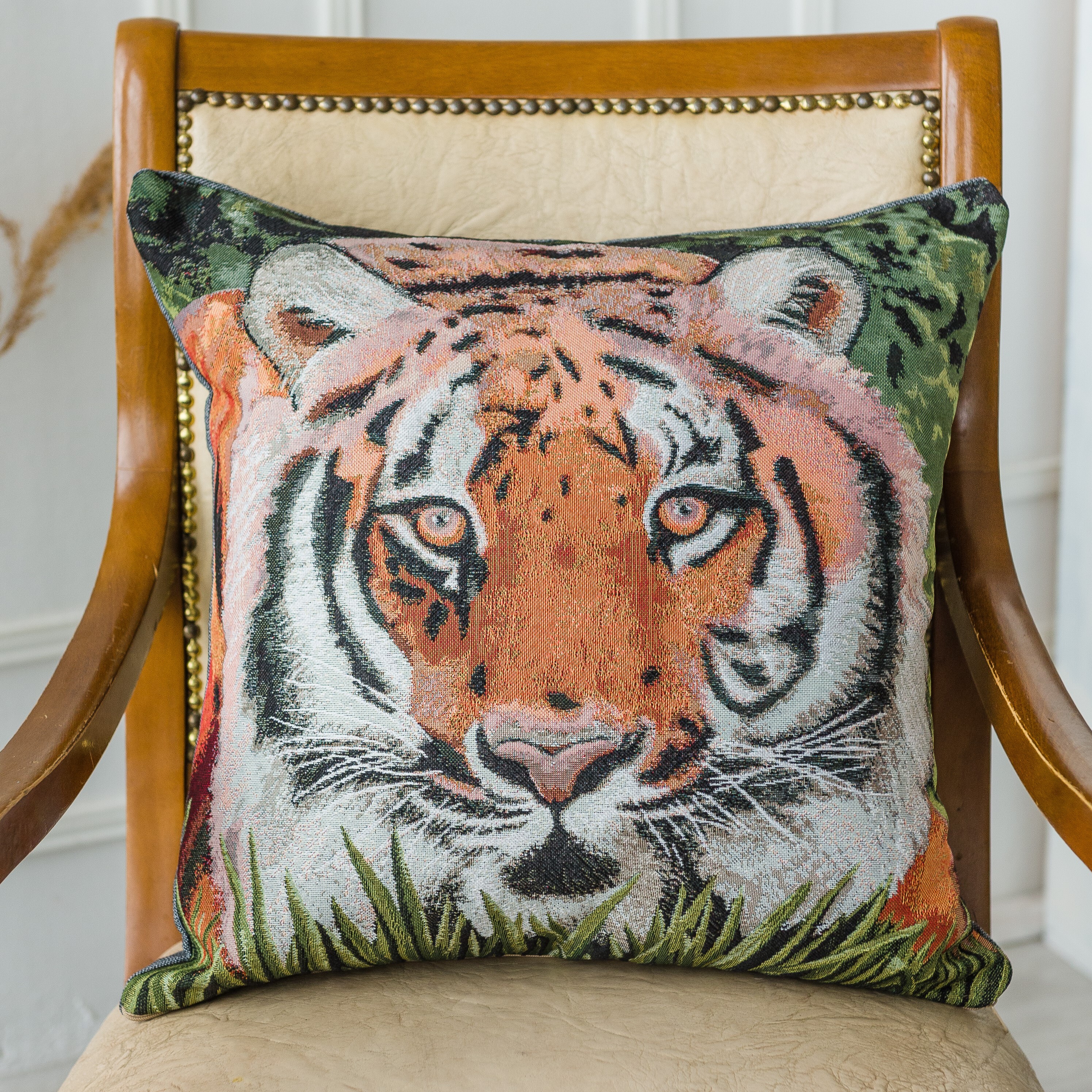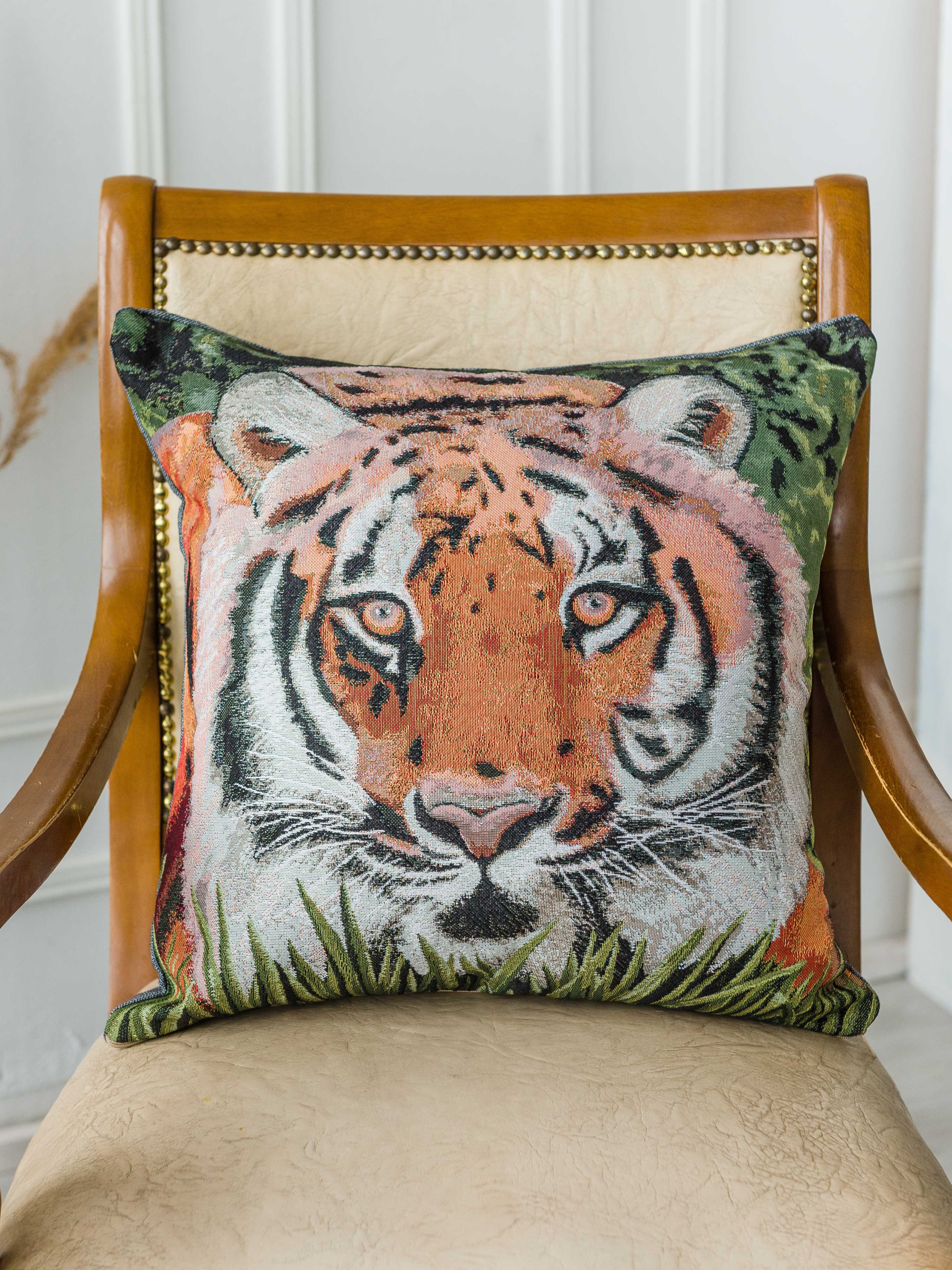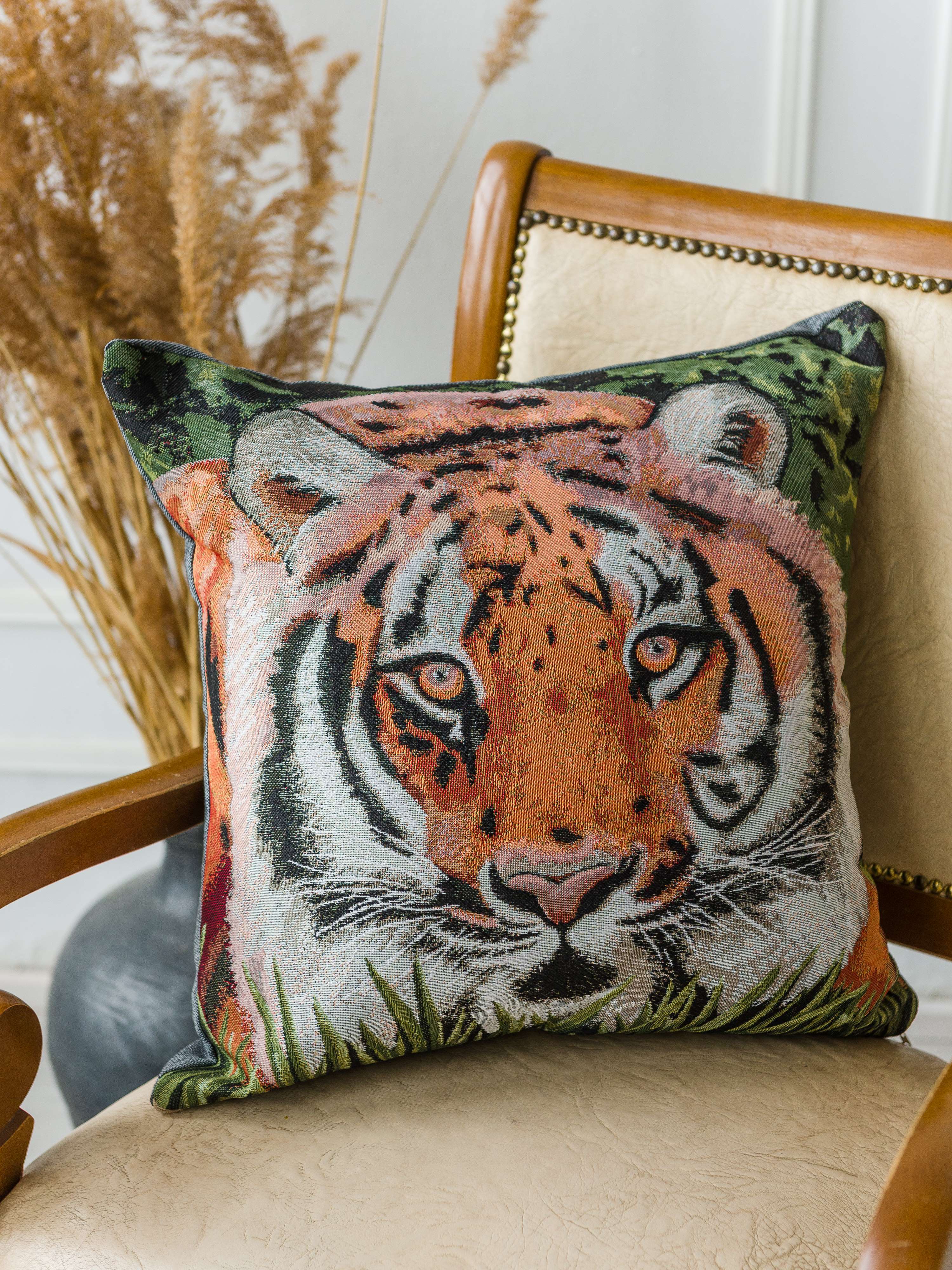 Гобеленовая наволочка для декоративной подушки. Размер наволочки: 47x47см. производство Россия. Изделие собственного производства сшито из отечественной жаккардовой ткани. Задняя часть выполнена из мебельной рогожки так же Российского производства. Все ткани используемые для производства декоративной наволочки производятся с соблюдением ТУ и ГОСТ РФ. Собственное швейное производство позволяет контролировать качество продукции на всех этапах до поступления на склад и предлагать покупателям товары высокого качества по выгодным ценам. Состав ткани 100% полиэстер. Плотность гобелена 380 г/кв.м. Наволочка подходит для подушек размером от 45 до 50 см. Продается без подушки-наполнителя. Подушку-наполнитель так же можно купит у нас. Размер наволочки может отличаться от заявленного +/- 2 см. Допускается деликатная машинная стирка при температуре 30 градусов. Гладить при средней температуре.