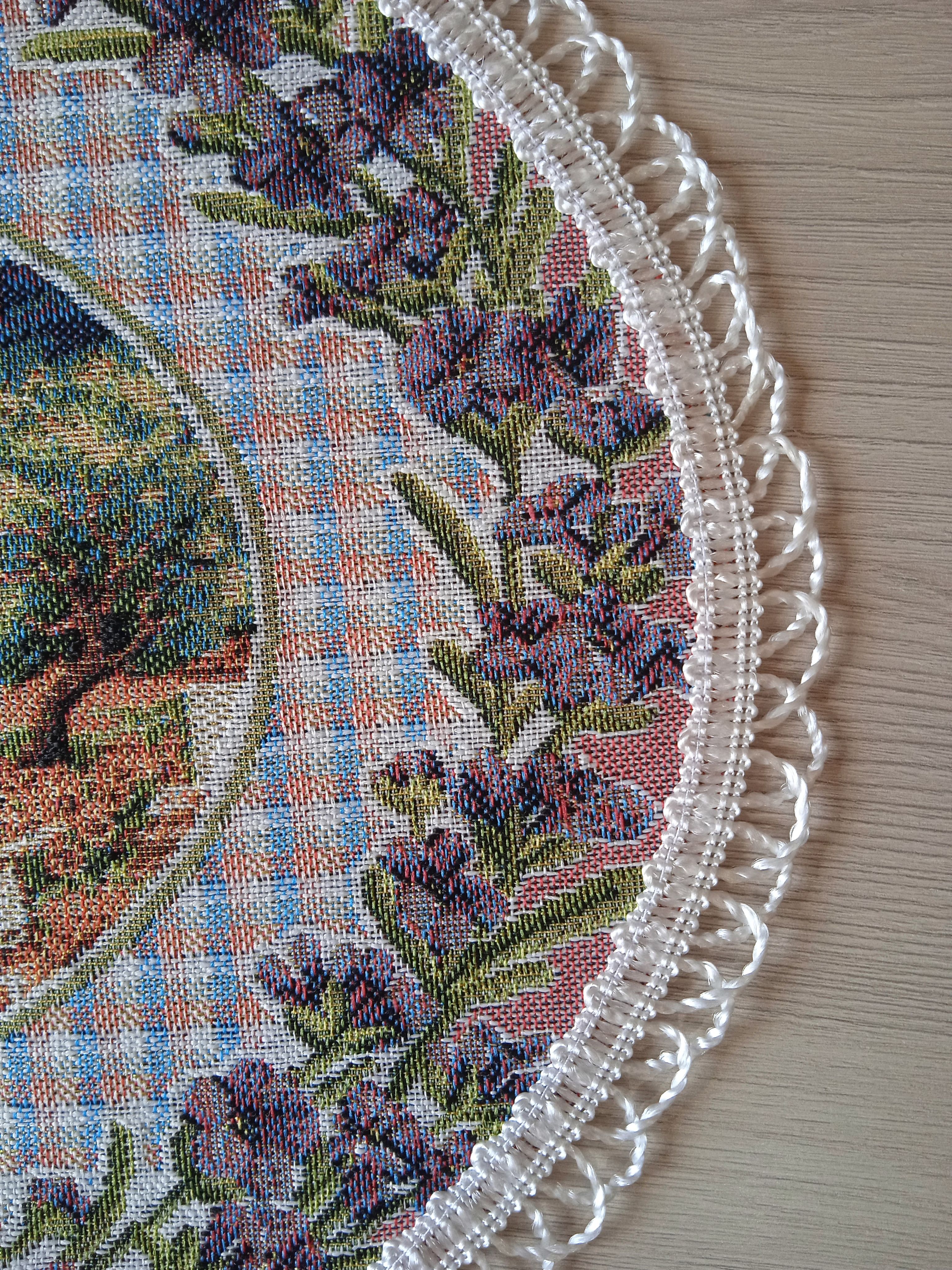 Декоративные гобеленовые салфетки это приятное и полезное украшение для сервировки стола. Салфетки могут продаваться по одной или наборами от двух до десяти штук. Форма, размер, цвет и рисунок салфеток можно выбрать по желанию покупателя. Декоративные салфетки круглой и овальной формы как правило обработаны красивой декоративной тесьмой подходящей по цвету к рисунку на ткани. Гобеленовые декоративные салфетки не только модный, красивый предмет интерьера но и полезны и практичны в использовании. Салфетки помогут предохранить поверхность мебели от повреждения. Гобеленовые салфетки устойчивы к загрязнению, хорошо стираются при температуре 30 градусов на дают усадки не линяют. Изделия из гобеленовой ткани имеют длительный срок службы и сохраняют первоначальный вид и форму.