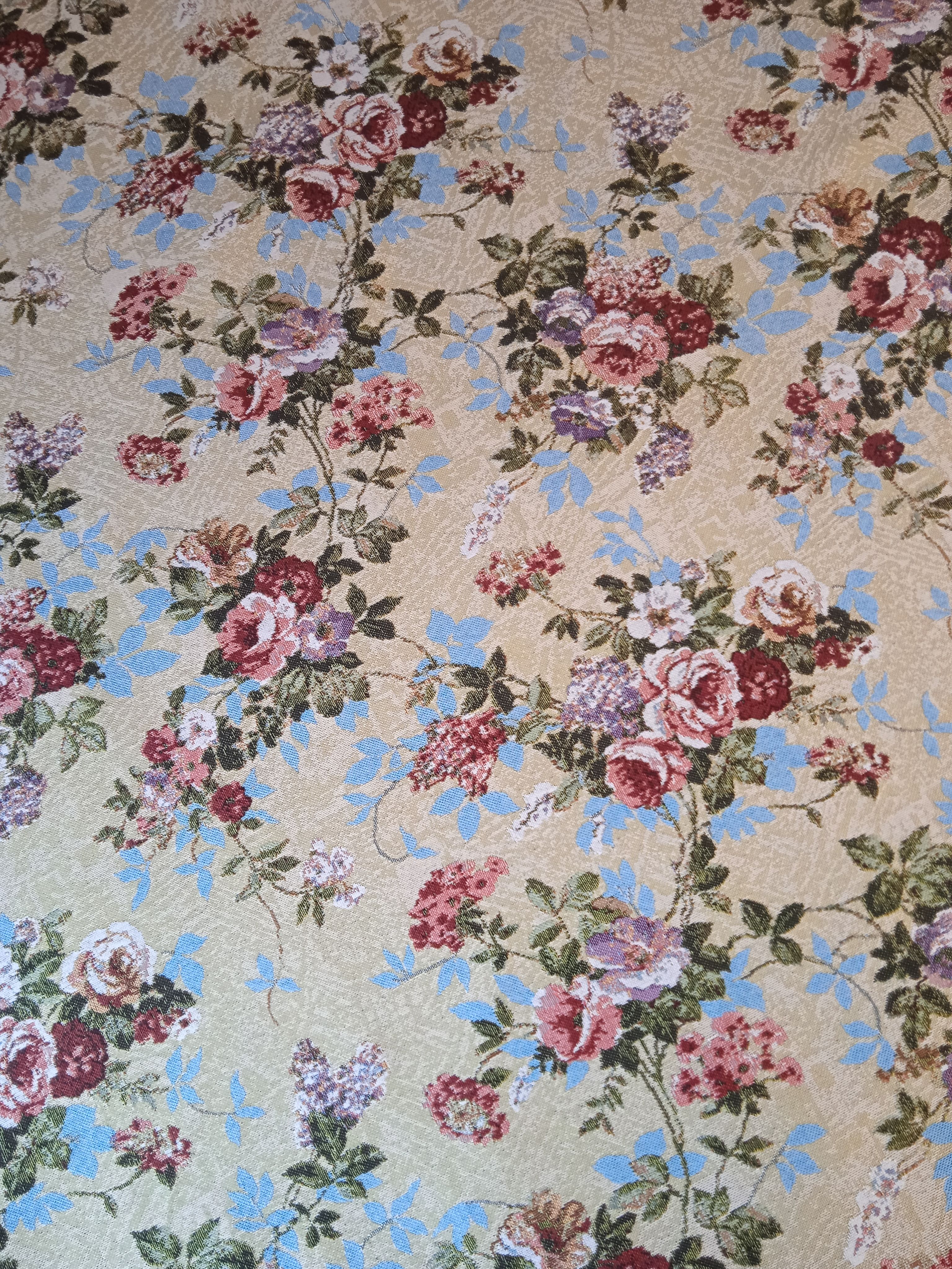 Современные гобеленовые ткани выпускаются в широчайшей цветовой гамме с рисунками практически любой тематики. Это могут быть яркие, крупные розы или мелкие луговые цветы нежных оттенков, геометрический рисунок, продольная полоса, клетка, сюжетные рисунки, пестрая или однотонная ткань.