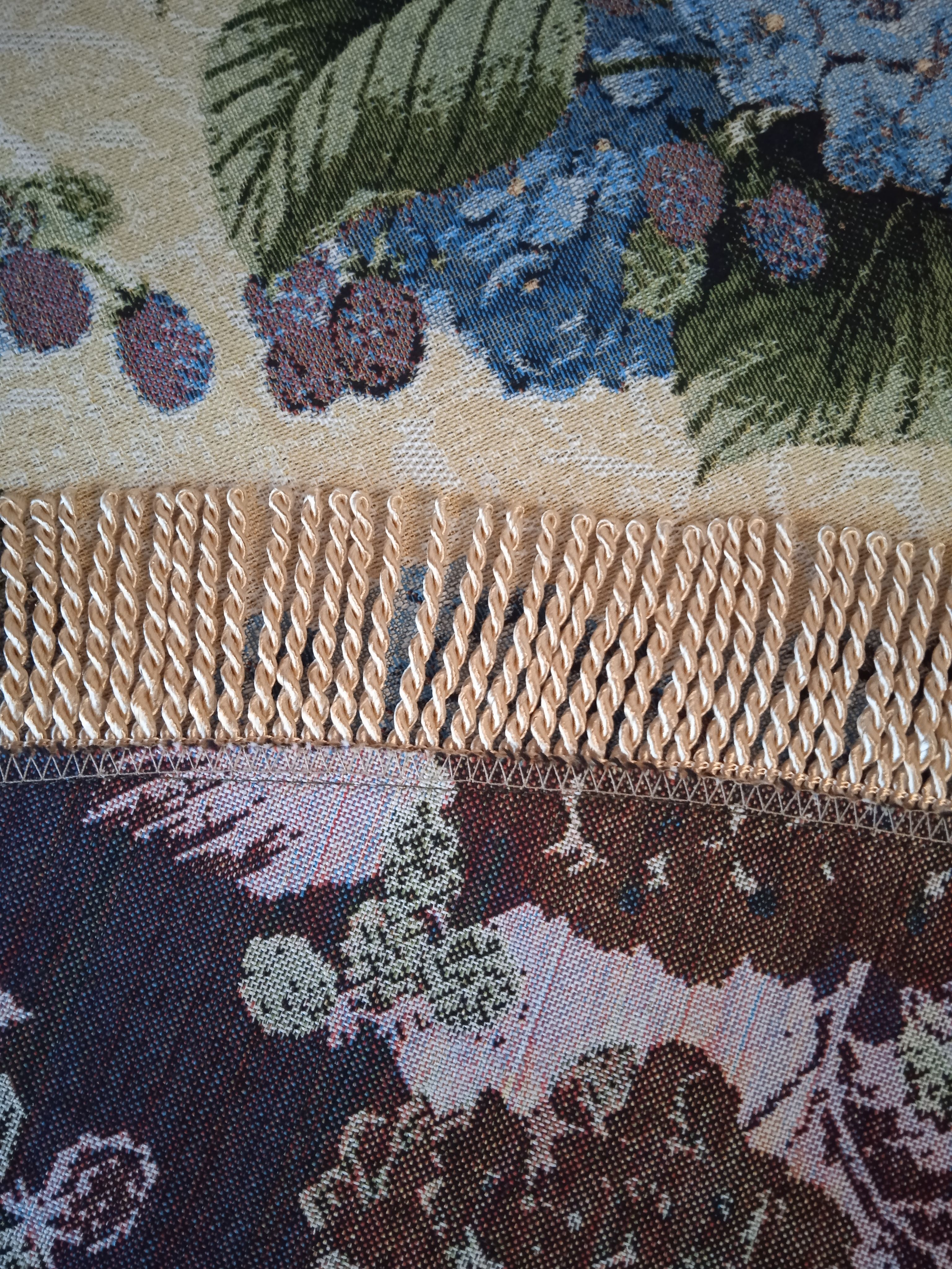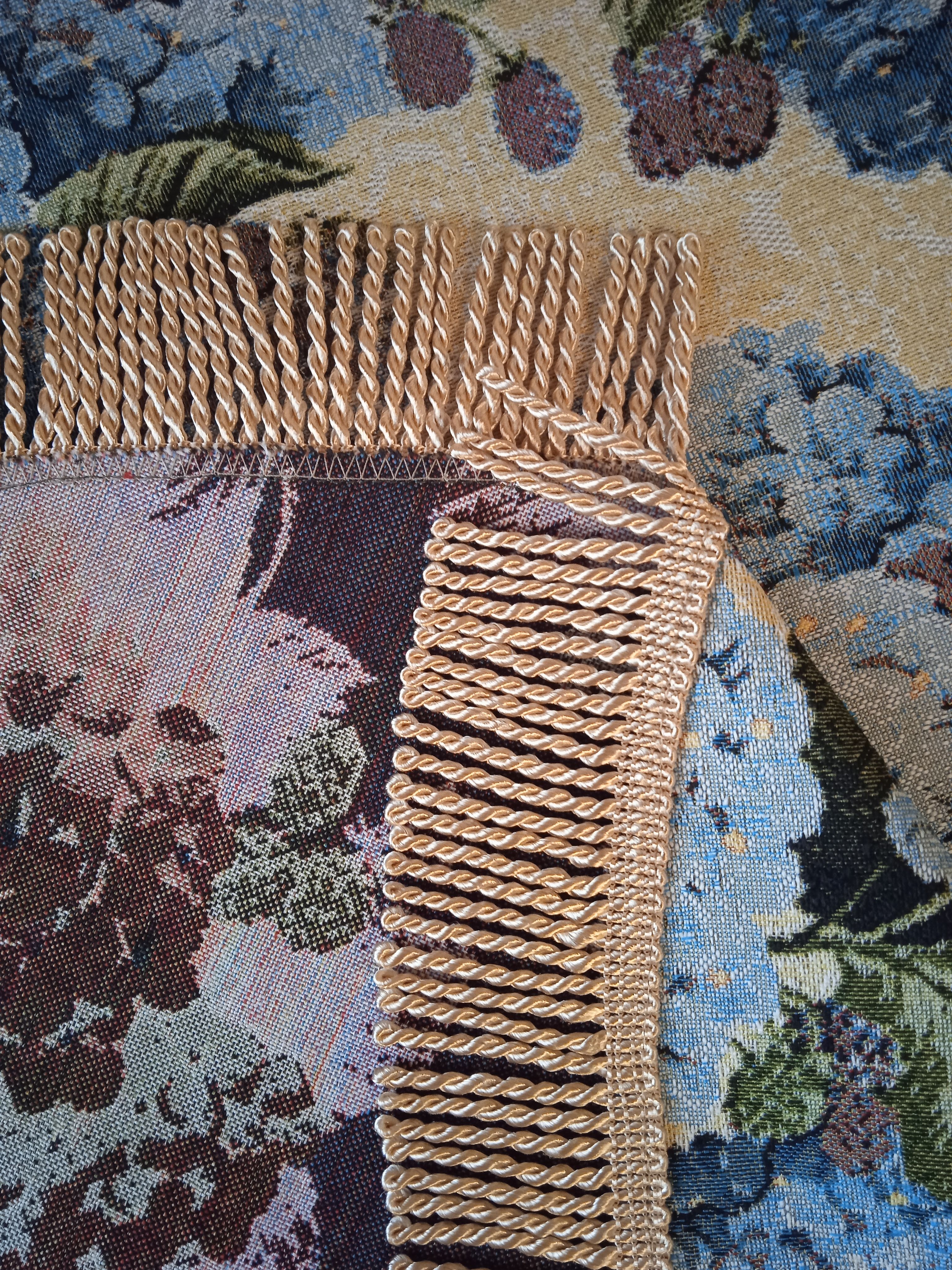 Края скатертей обшиты бахромой, гармонирующей по цвету с цветом скатерти.