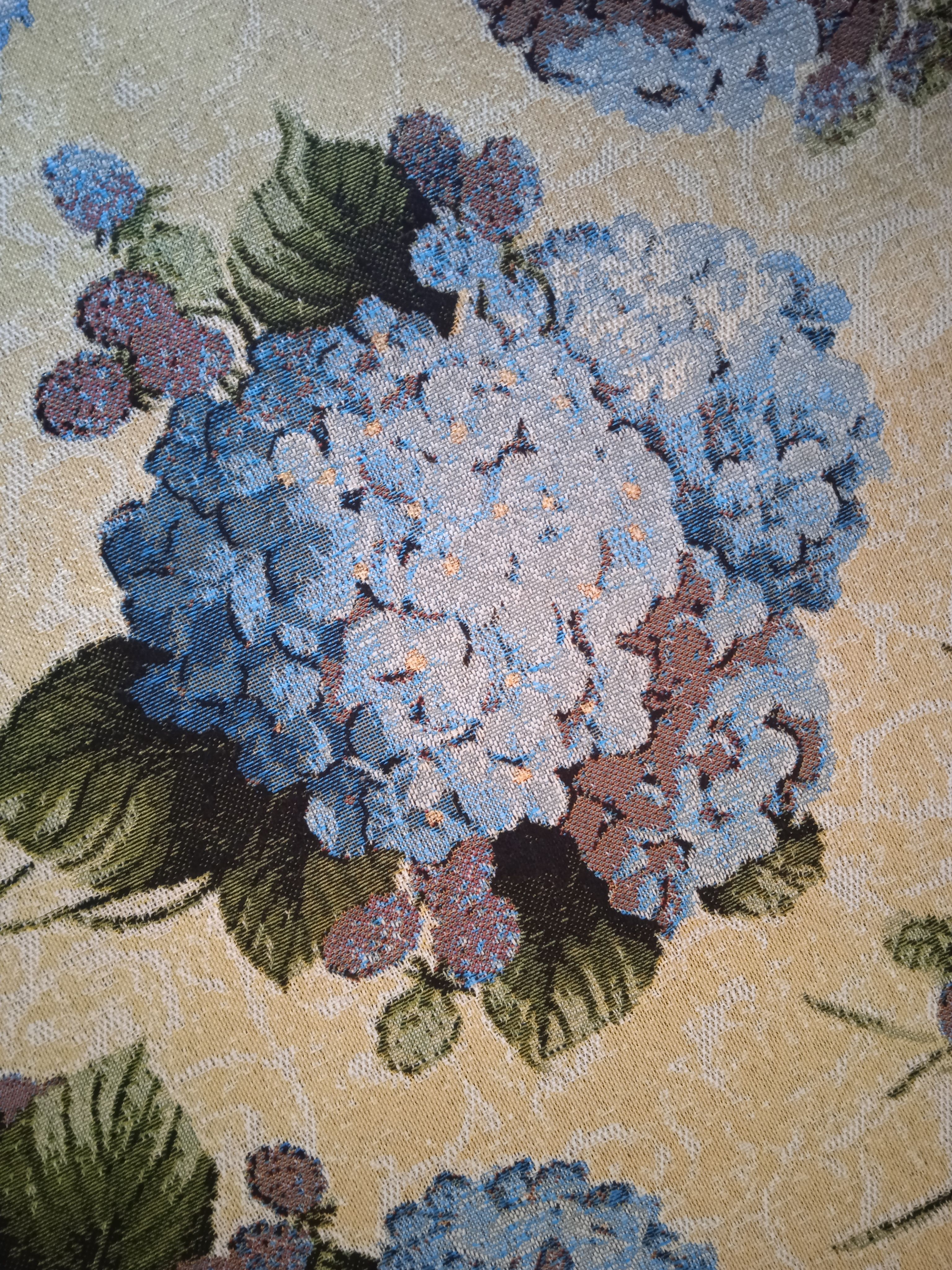 Современные гобеленовые ткани выпускаются в широчайшей цветовой гамме с рисунками практически любой тематики. Это могут быть яркие, крупные розы или мелкие луговые цветы нежных оттенков, геометрический рисунок, продольная полоса, клетка, сюжетные рисунки, пестрая или однотонная ткань.