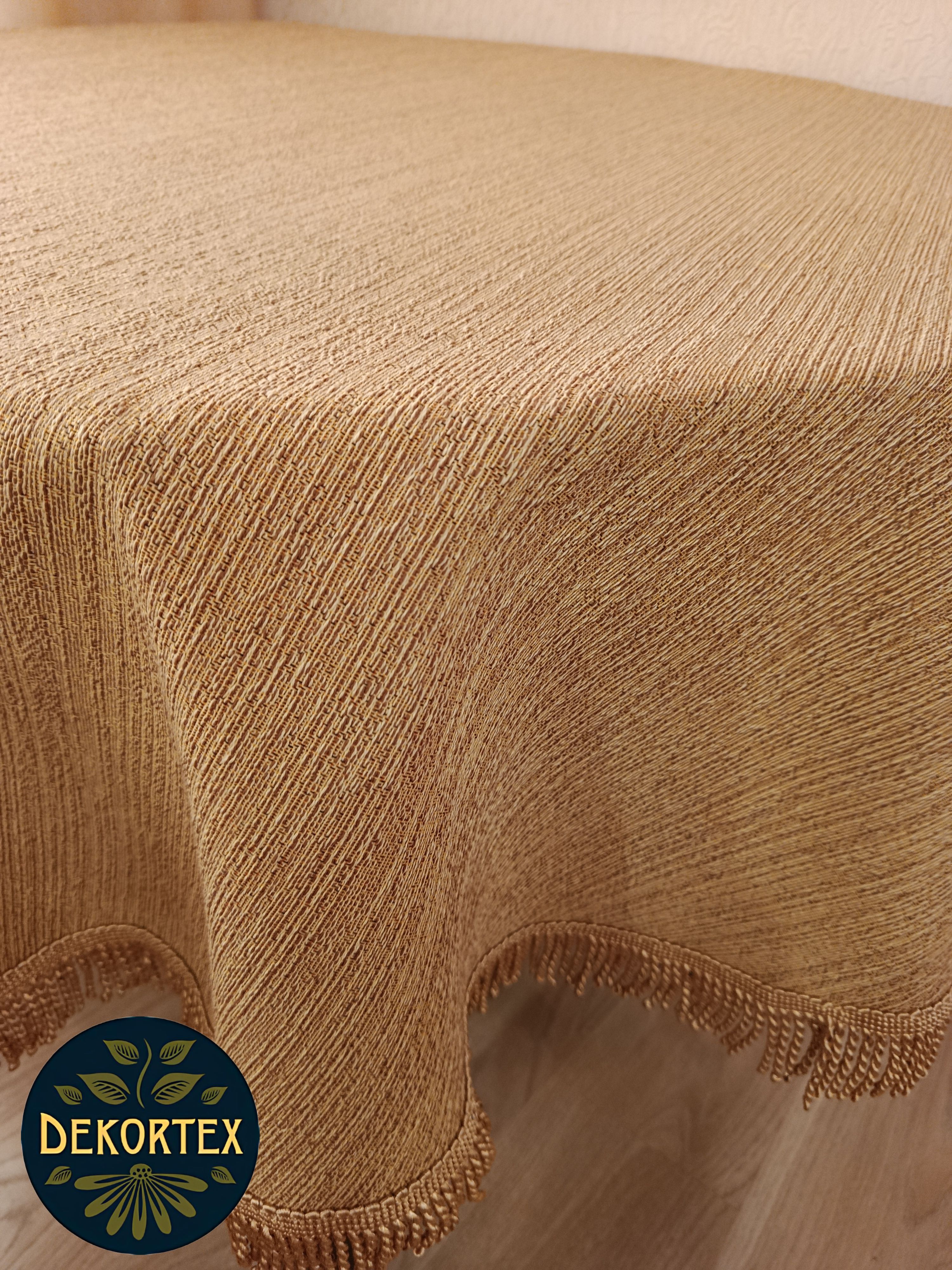 Края скатертей обшиты бахромой, гармонирующей по цвету с цветом скатерти.