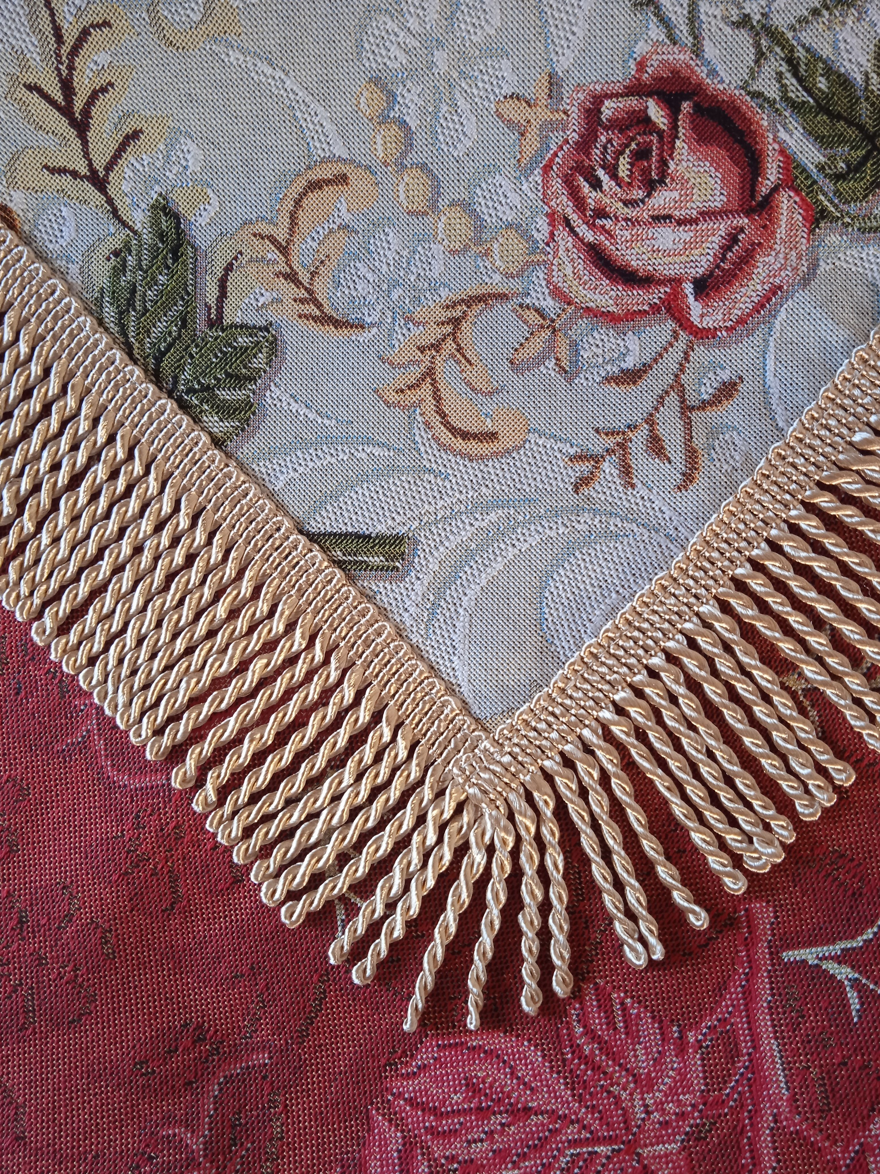 Края скатертей обшиты бахромой, гармонирующей по цвету с цветом скатерти.