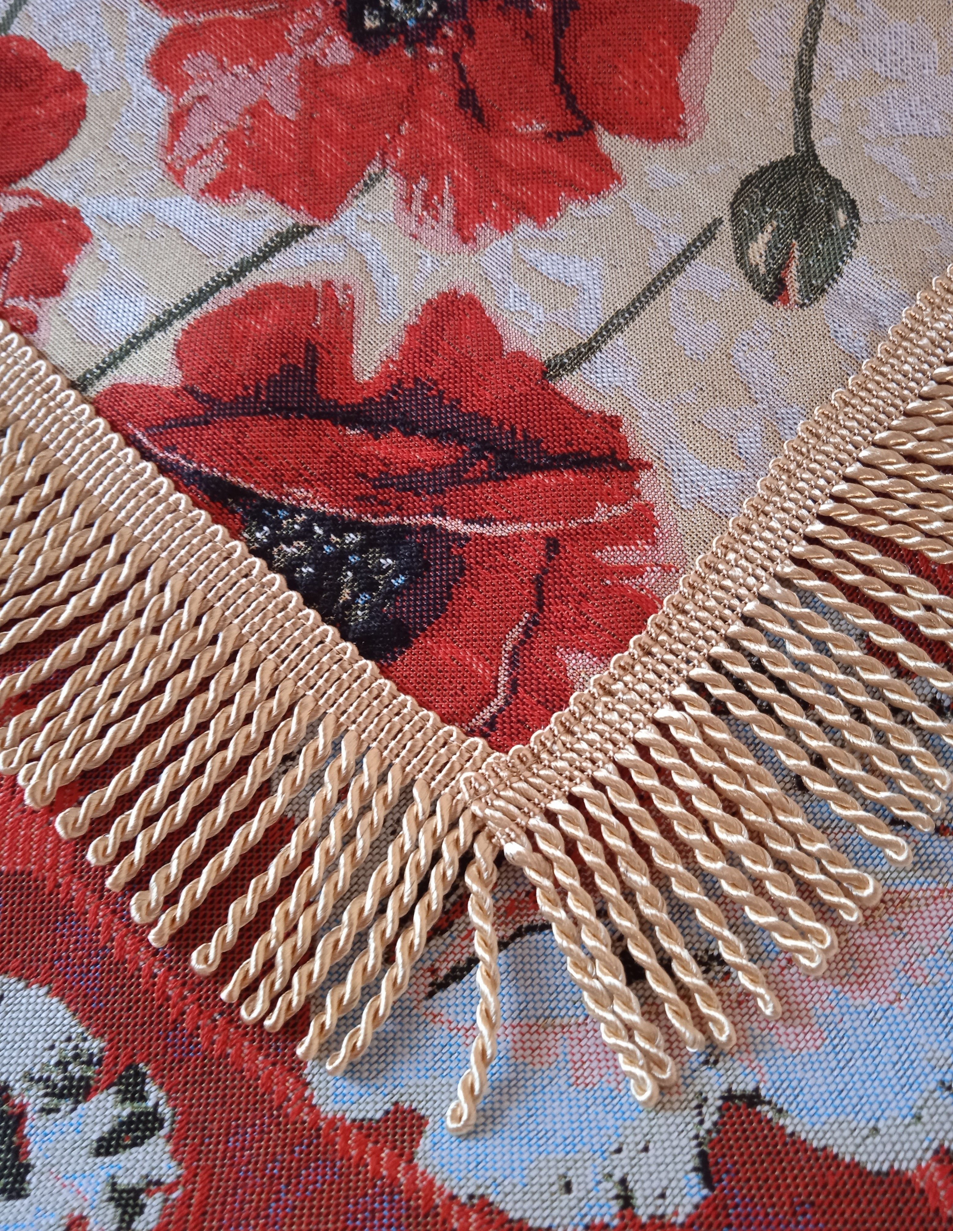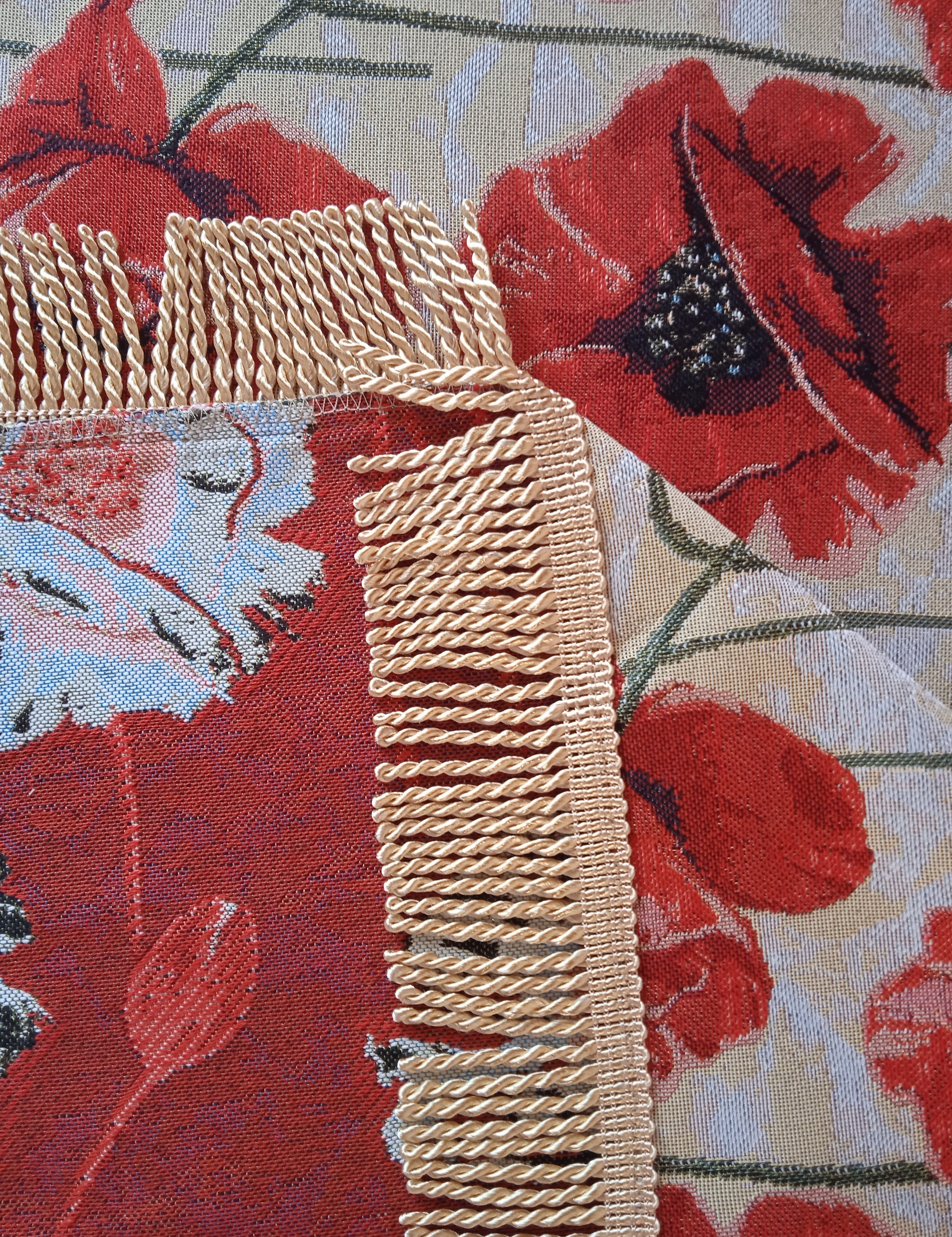 Края скатертей обшиты бахромой, гармонирующей по цвету с цветом скатерти.