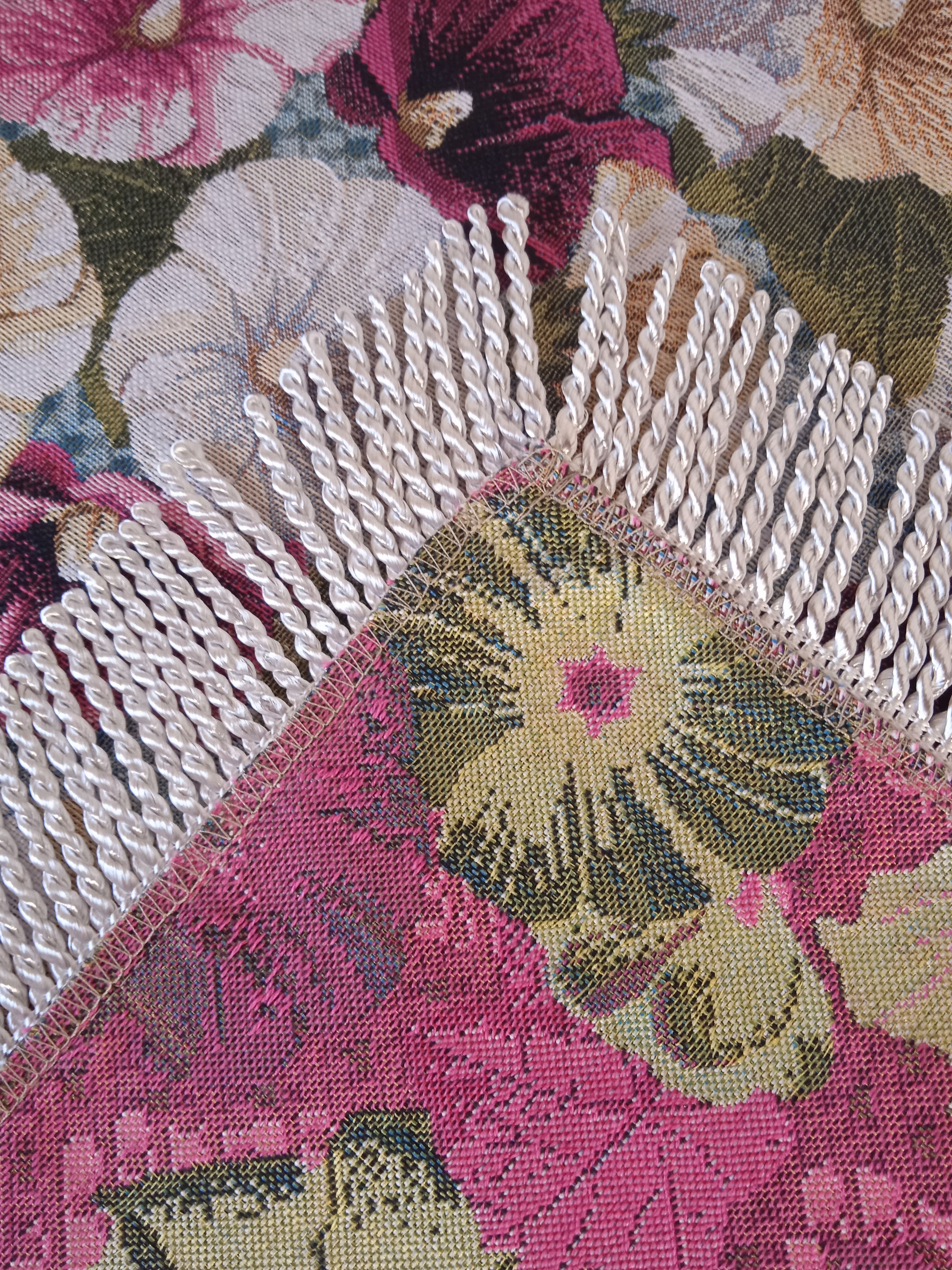 Края скатертей обшиты бахромой, гармонирующей по цвету с цветом скатерти.