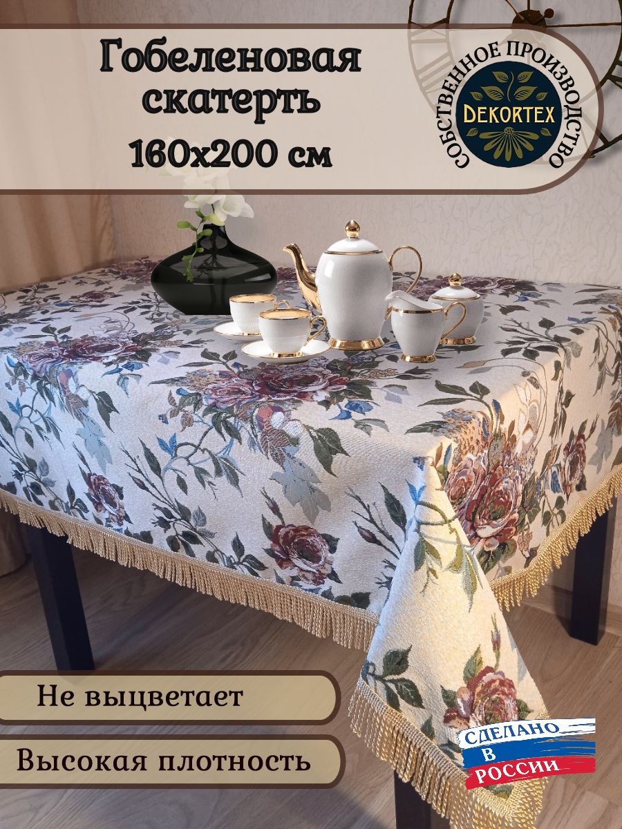 Еще одним выгодным преимуществом скатерти из гобелена является плотность ткани. Гобеленовая скатерть плотно прилегает к поверхности стола, не скользит и не собирается в складки. На гобеленовой скатерти не видно небольших пятен, она долго остается чистой. Гобеленовая скатерть хорошо стирается в теплой воде 30 градусов, практически не садится и не теряет формы.