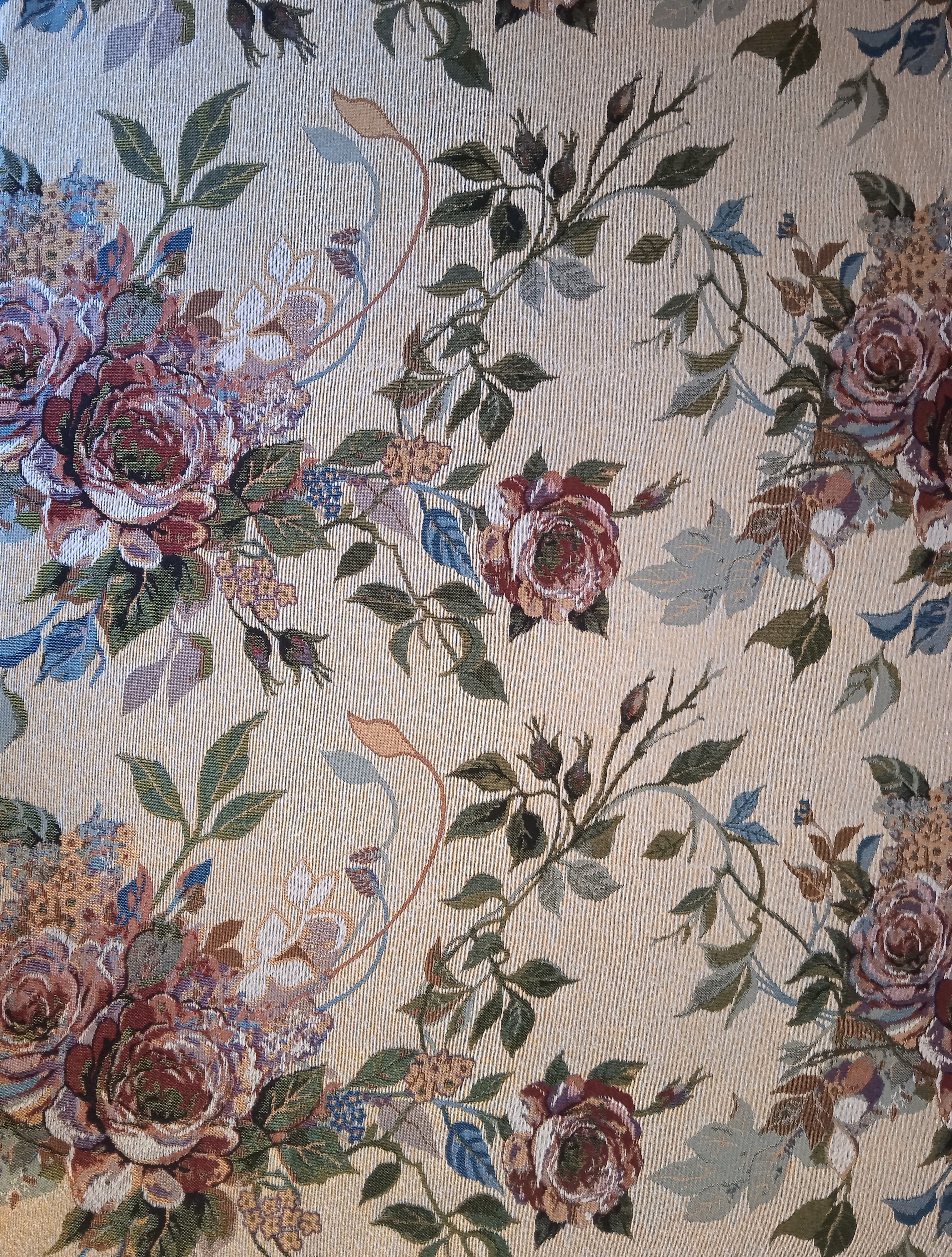 Современные гобеленовые ткани выпускаются в широчайшей цветовой гамме с рисунками практически любой тематики. Это могут быть яркие, крупные розы или мелкие луговые цветы нежных оттенков, геометрический рисунок, продольная полоса, клетка, сюжетные рисунки, пестрая или однотонная ткань.