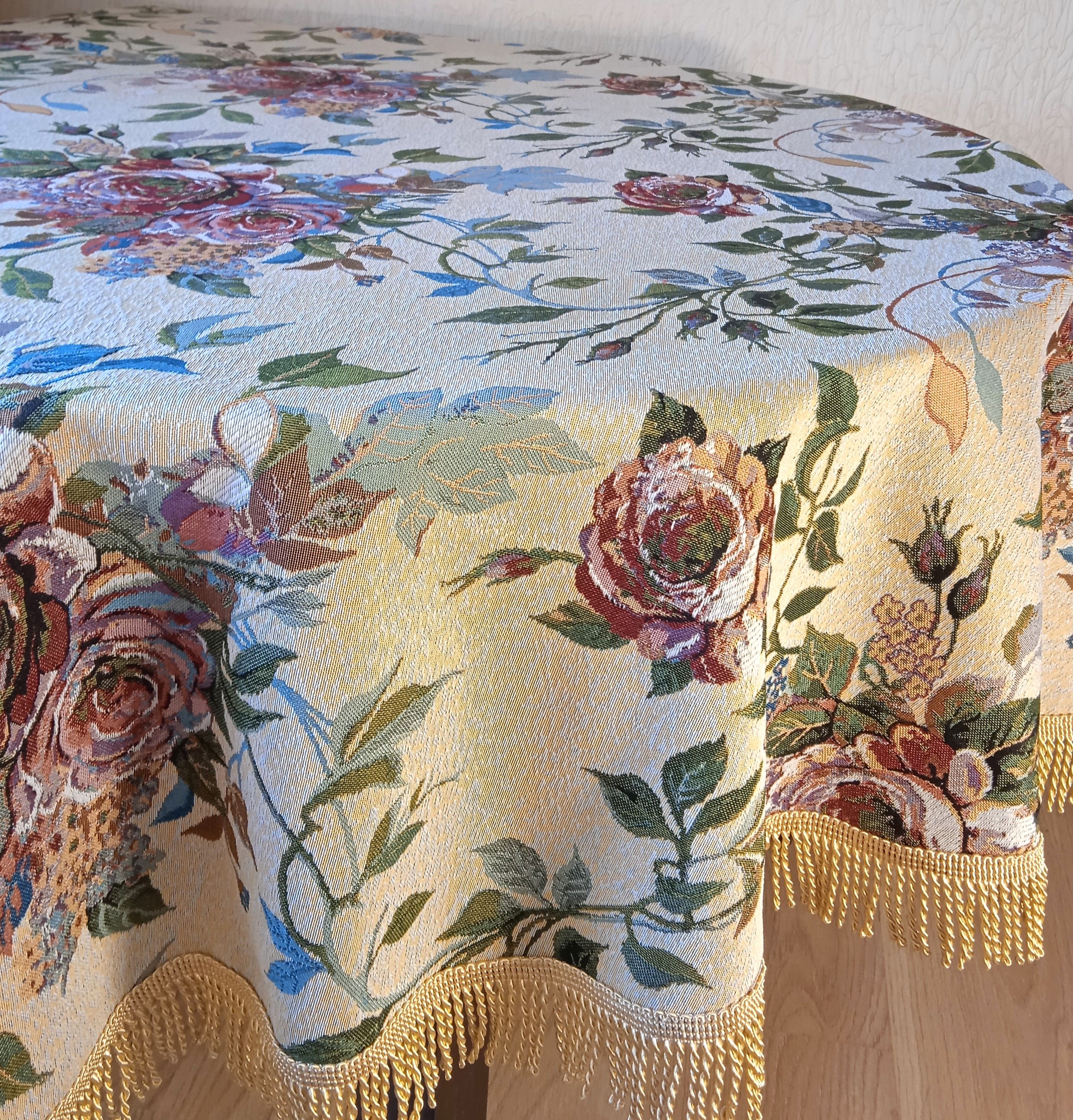 Декоративные скатерти из гобеленовой ткани это популярный предмет интерьерного текстиля. Наряду со шторами, покрывалами, диванными и другими подушками, гобеленовые скатерти помогают добавить в интерьер помещения, домашнего тепла и уюта.