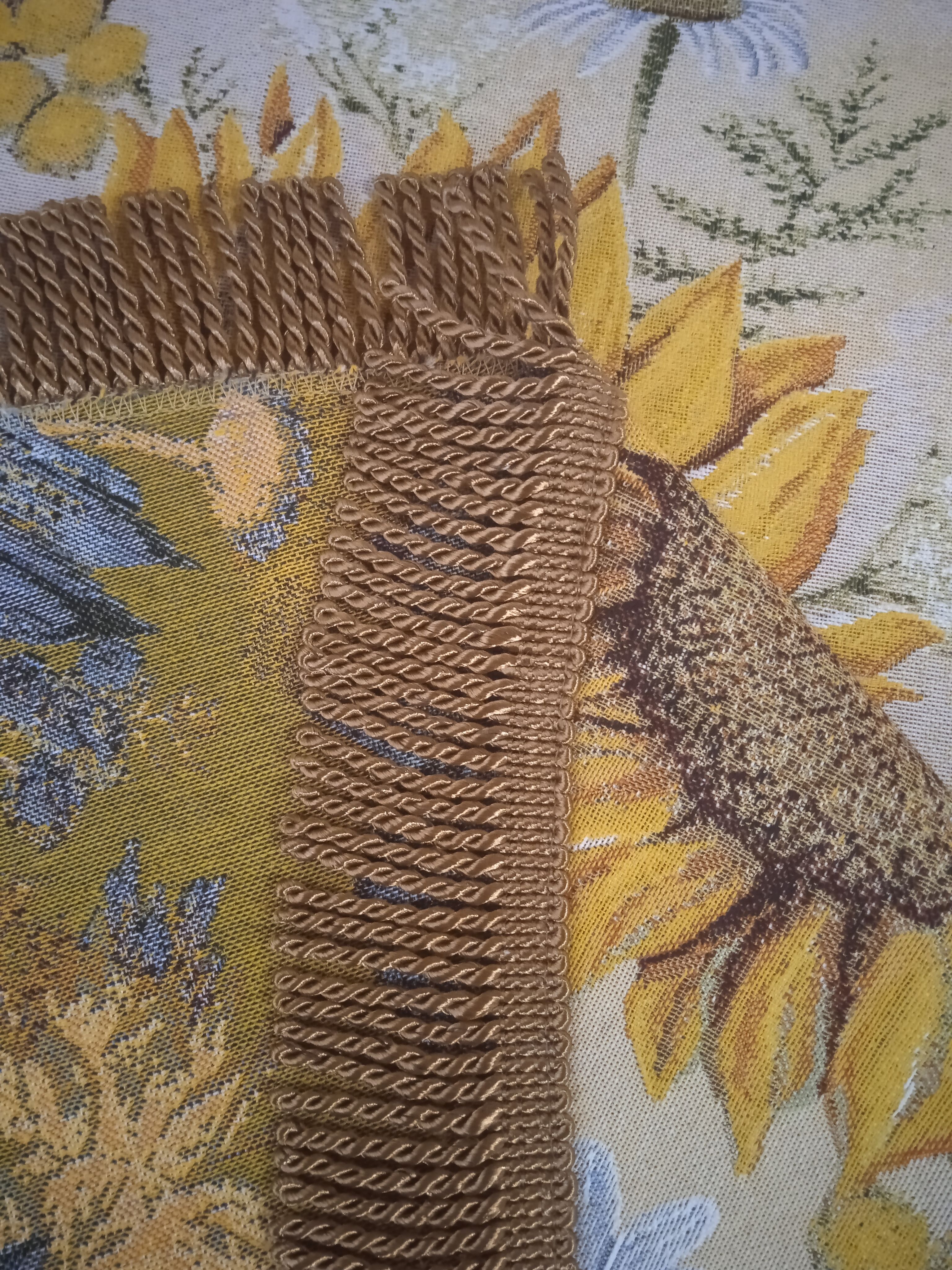 Края скатертей обшиты бахромой, гармонирующей по цвету с цветом скатерти.