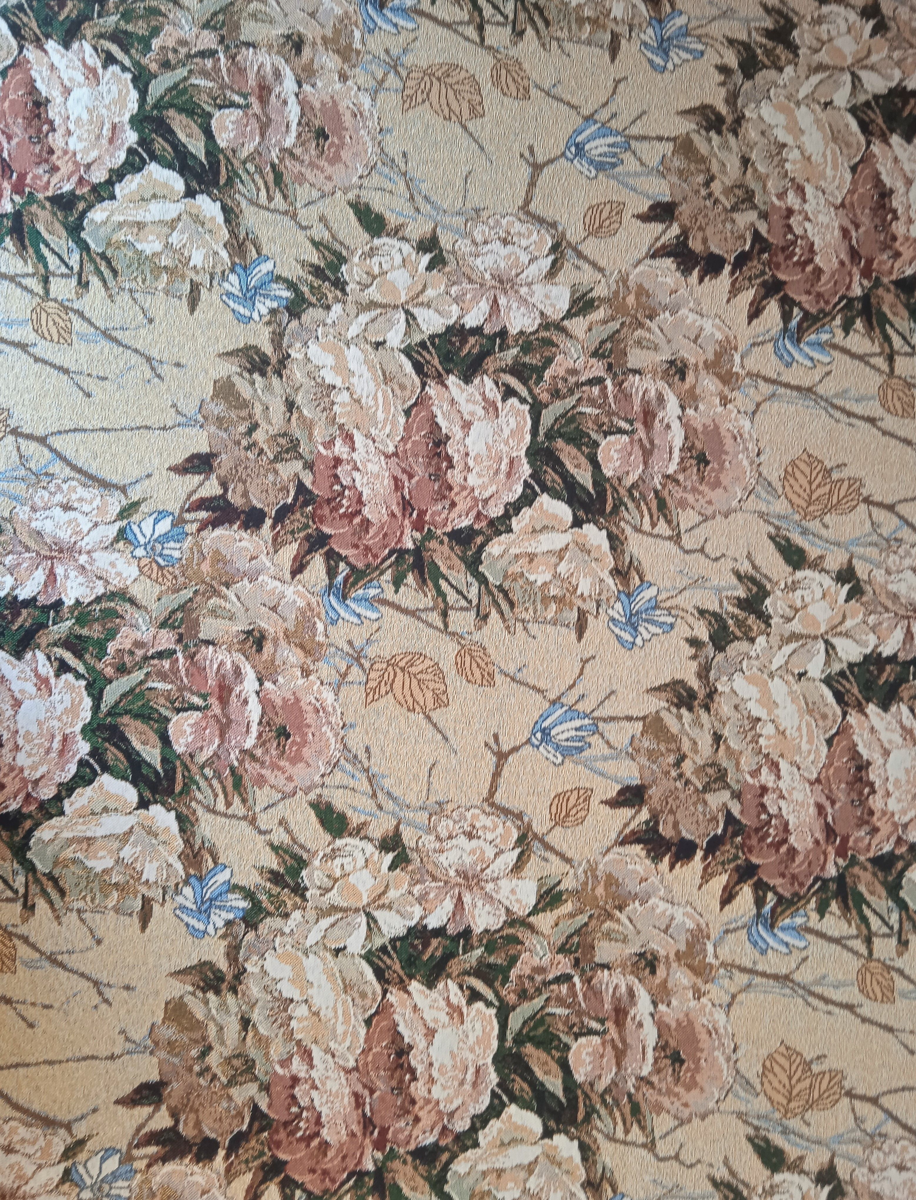 Современные гобеленовые ткани выпускаются в широчайшей цветовой гамме с рисунками практически любой тематики. Это могут быть яркие, крупные розы или мелкие луговые цветы нежных оттенков, геометрический рисунок, продольная полоса, клетка, сюжетные рисунки, пестрая или однотонная ткань.