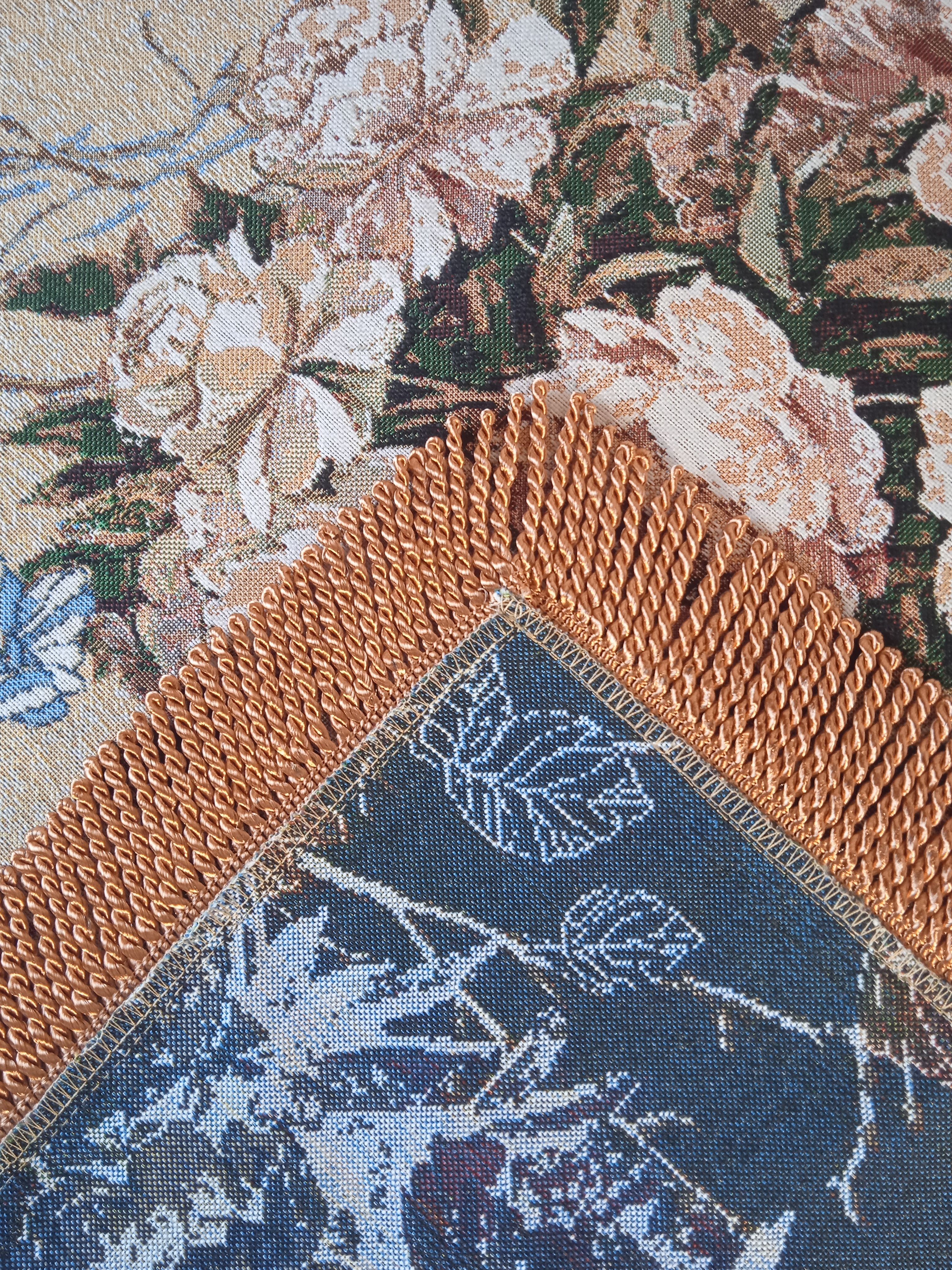 Еще одним выгодным преимуществом скатерти из гобелена является плотность ткани. Гобеленовая скатерть плотно прилегает к поверхности стола, не скользит и не собирается в складки. На гобеленовой скатерти не видно небольших пятен, она долго остается чистой. Гобеленовая скатерть хорошо стирается в теплой воде 30 градусов, практически не садится и не теряет формы.