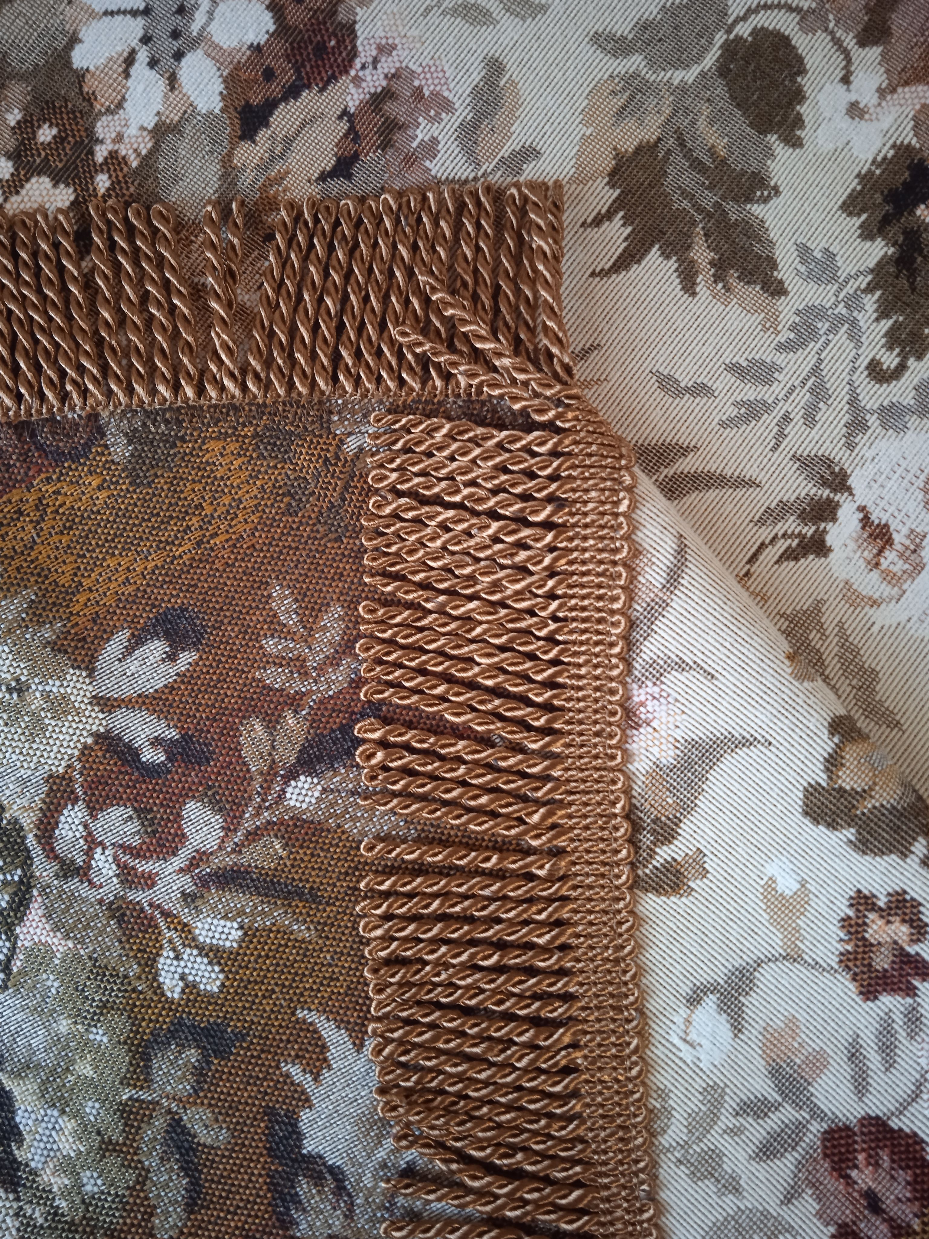 Края скатертей обшиты бахромой, гармонирующей по цвету с цветом скатерти.
