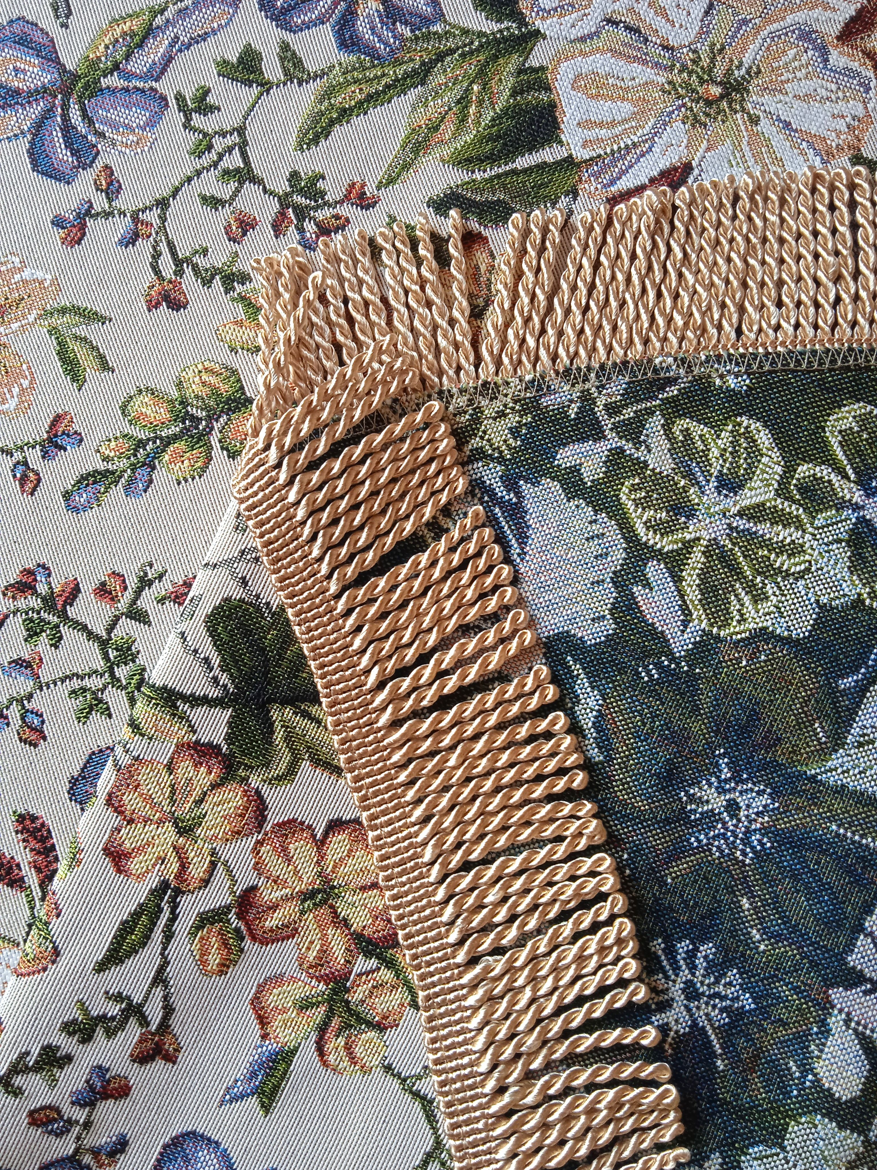 Еще одним выгодным преимуществом скатерти из гобелена является плотность ткани. Гобеленовая скатерть плотно прилегает к поверхности стола, не скользит и не собирается в складки. На гобеленовой скатерти не видно небольших пятен, она долго остается чистой. Гобеленовая скатерть хорошо стирается в теплой воде 30 градусов, практически не садится и не теряет формы.