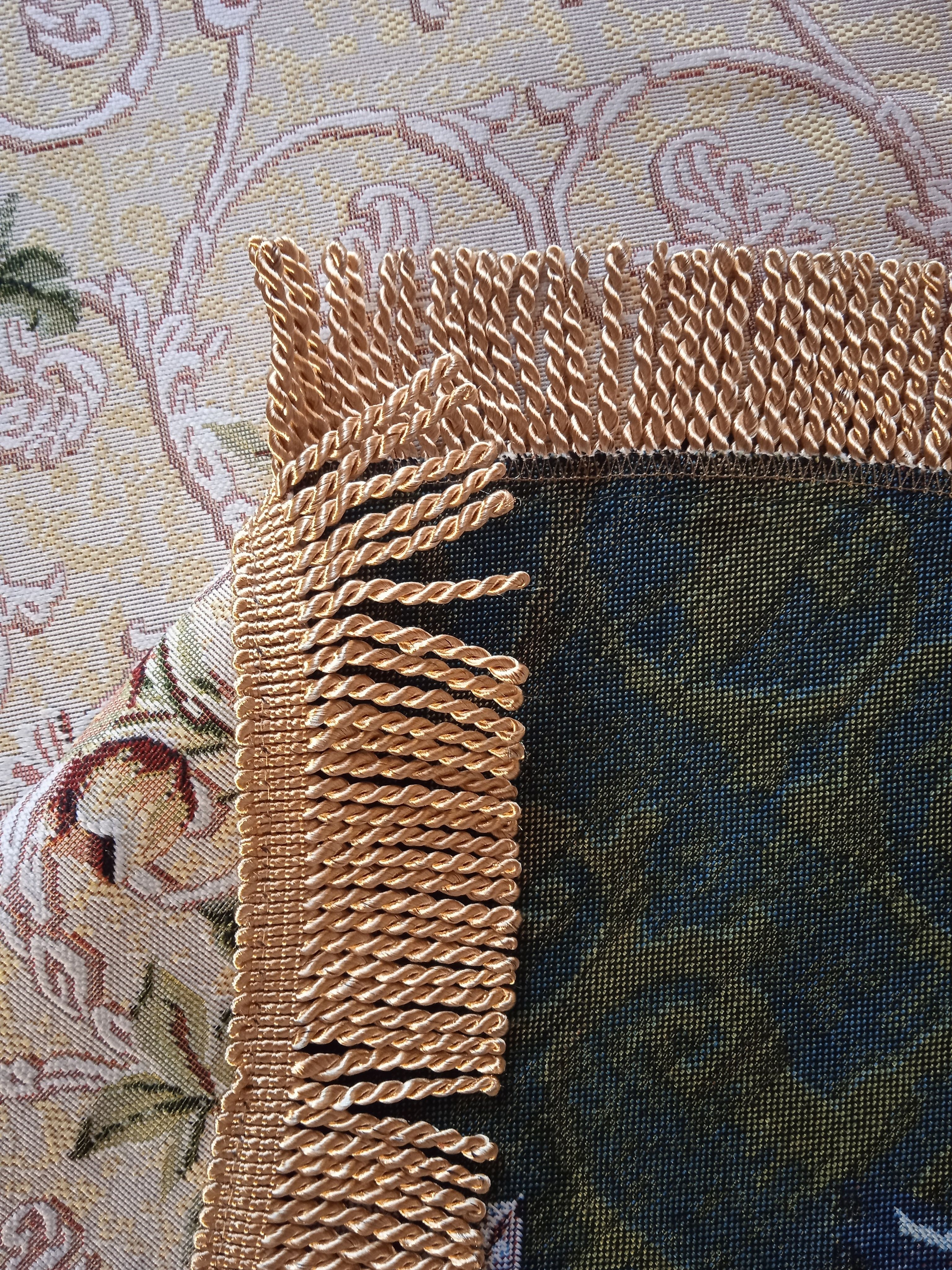 Еще одним выгодным преимуществом скатерти из гобелена является плотность ткани. Гобеленовая скатерть плотно прилегает к поверхности стола, не скользит и не собирается в складки. На гобеленовой скатерти не видно небольших пятен, она долго остается чистой. Гобеленовая скатерть хорошо стирается в теплой воде 30 градусов, практически не садится и не теряет формы.