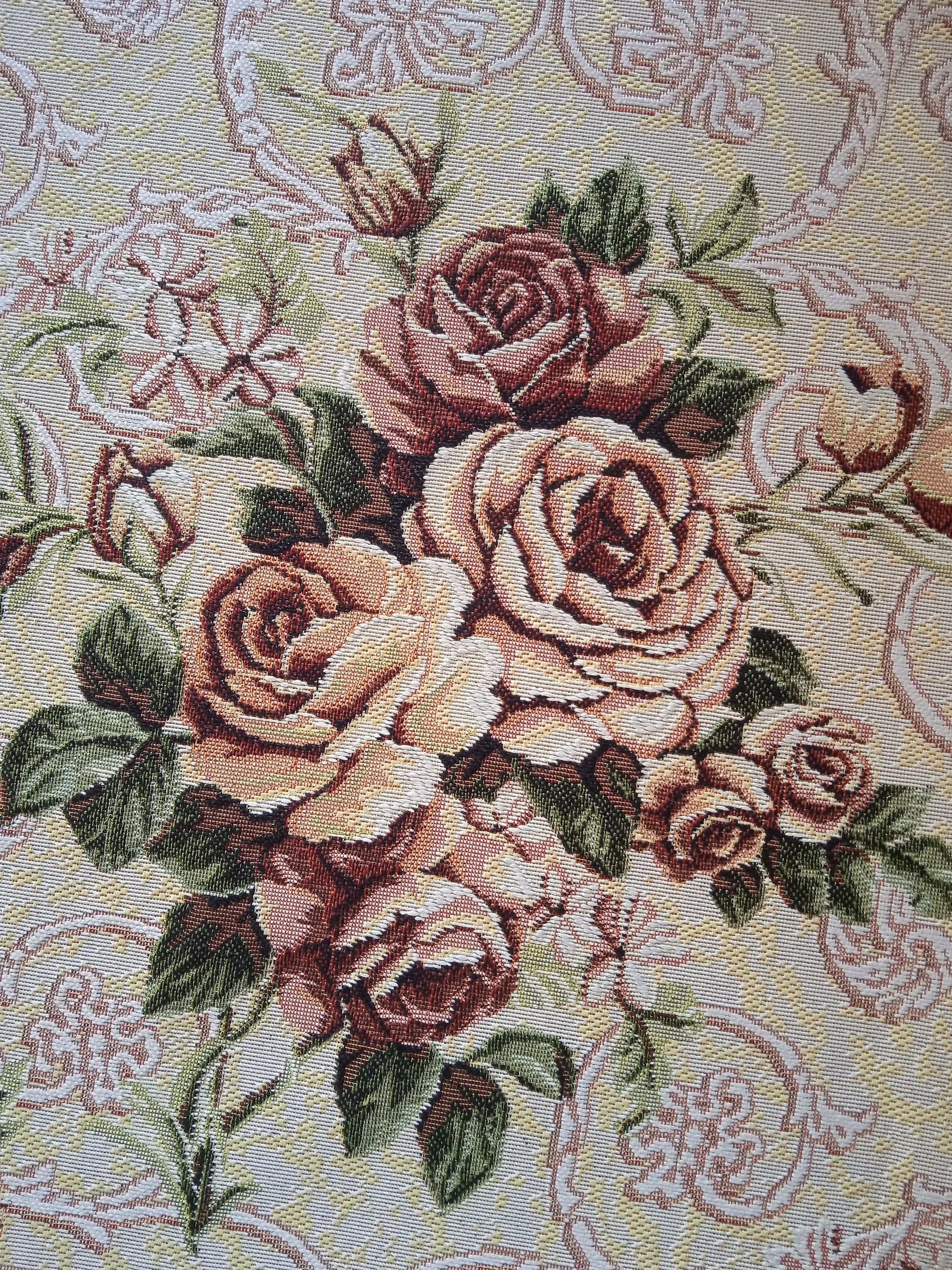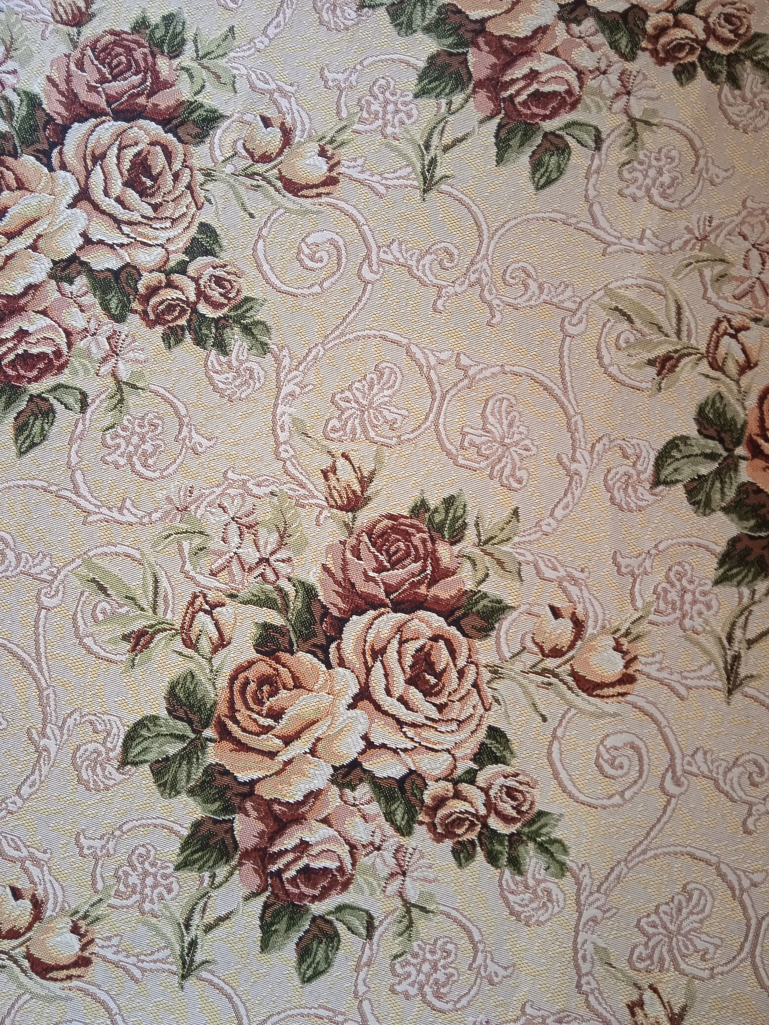 Современные гобеленовые ткани выпускаются в широчайшей цветовой гамме с рисунками практически любой тематики. Это могут быть яркие, крупные розы или мелкие луговые цветы нежных оттенков, геометрический рисунок, продольная полоса, клетка, сюжетные рисунки, пестрая или однотонная ткань.