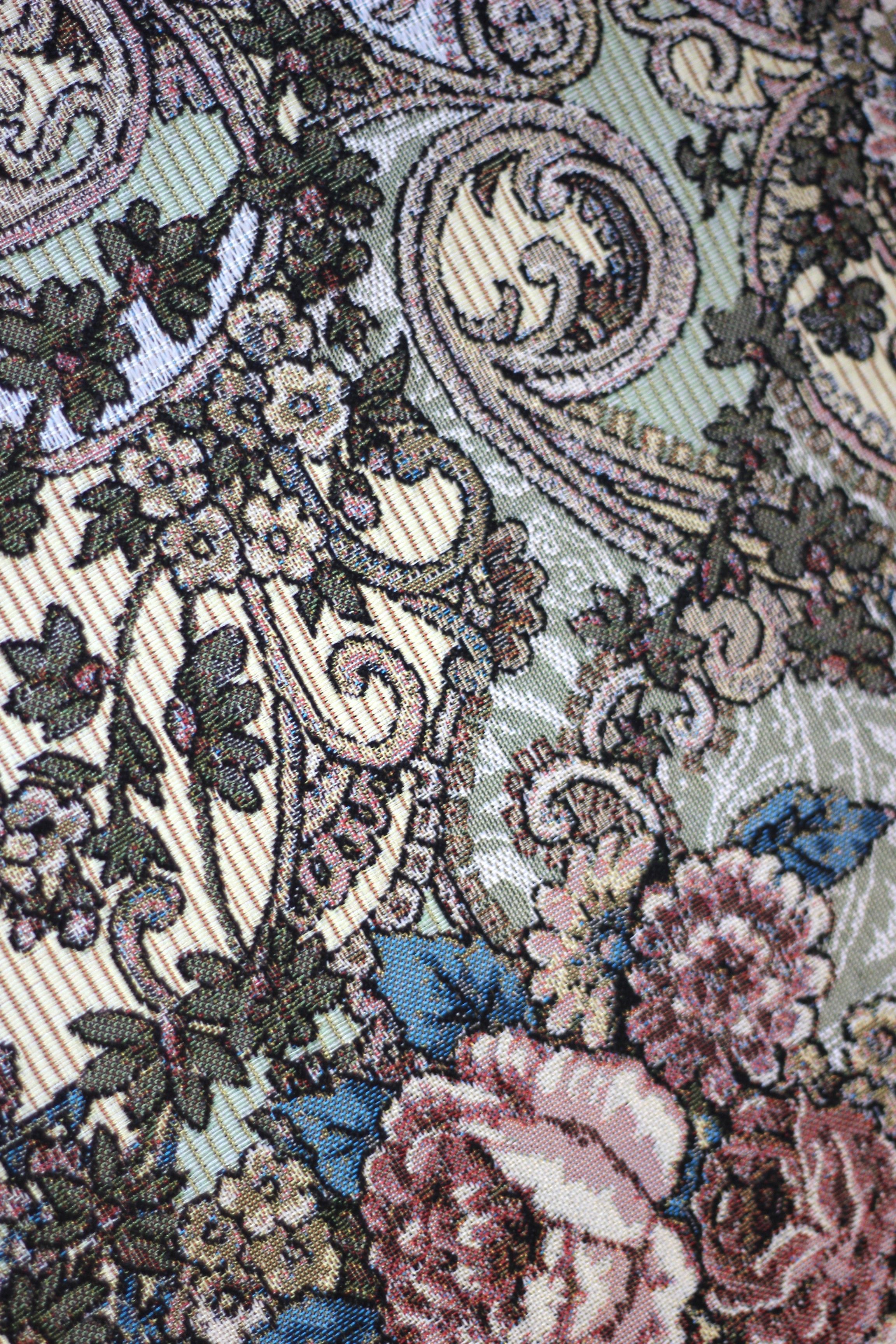 Современные гобеленовые ткани выпускаются в широчайшей цветовой гамме с рисунками практически любой тематики. Это могут быть яркие, крупные розы или мелкие луговые цветы нежных оттенков, геометрический рисунок, продольная полоса, клетка, сюжетные рисунки, пестрая или однотонная ткань.
