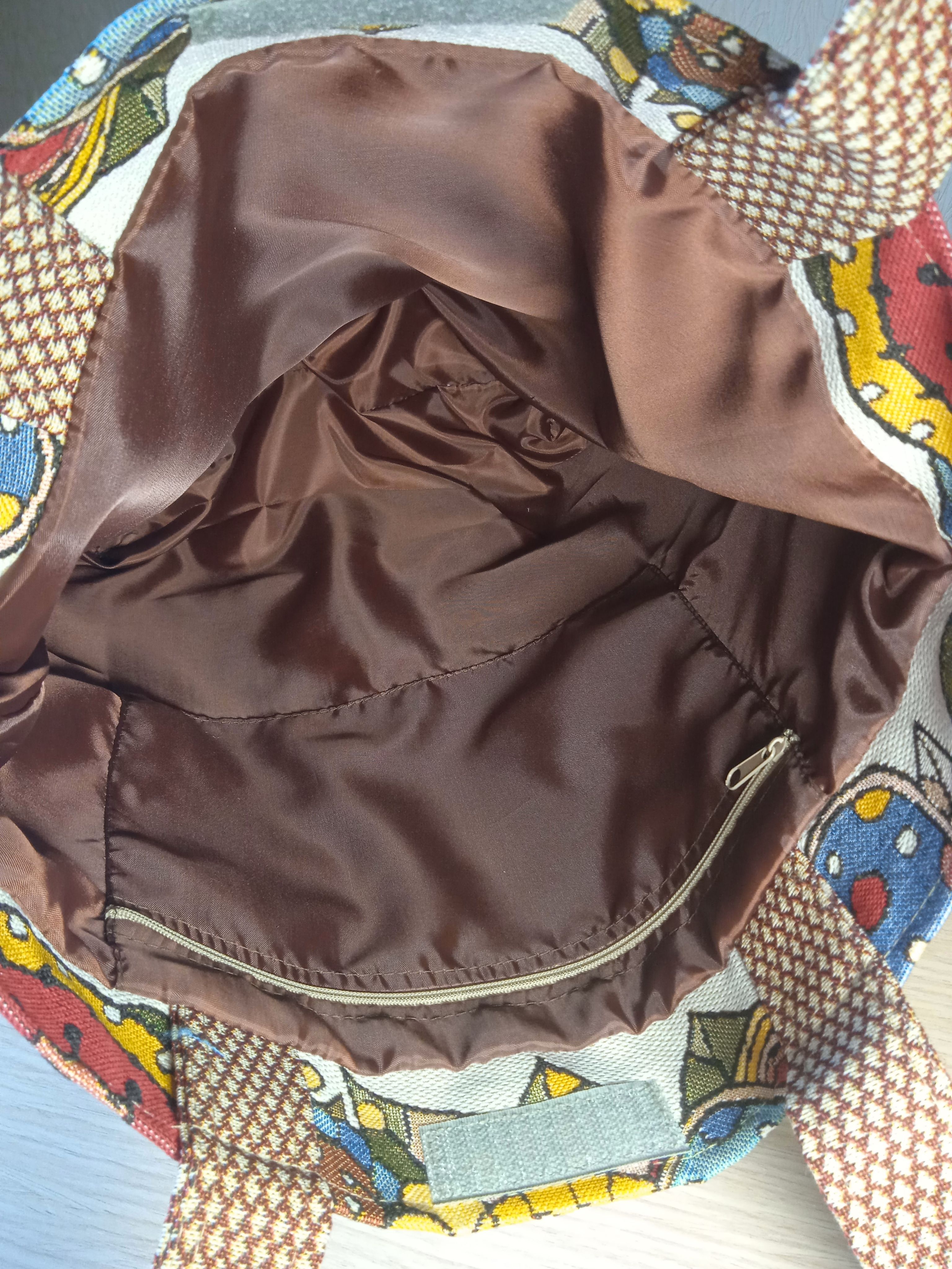 Гобеленовая сумка Шоппер собственного производства выполнена из износостойкого, Российского полиэстера с высокой плотностью. Ее можно взять с собой на прогулку, в магазин, на учебу и на пляж. Сумка оснащена вместительным отделом, небольшим карманом на молнии для мелочей, а так же широкими и прочными ручками. Яркая и необычная расцветка добавит изюминку вашему образу.