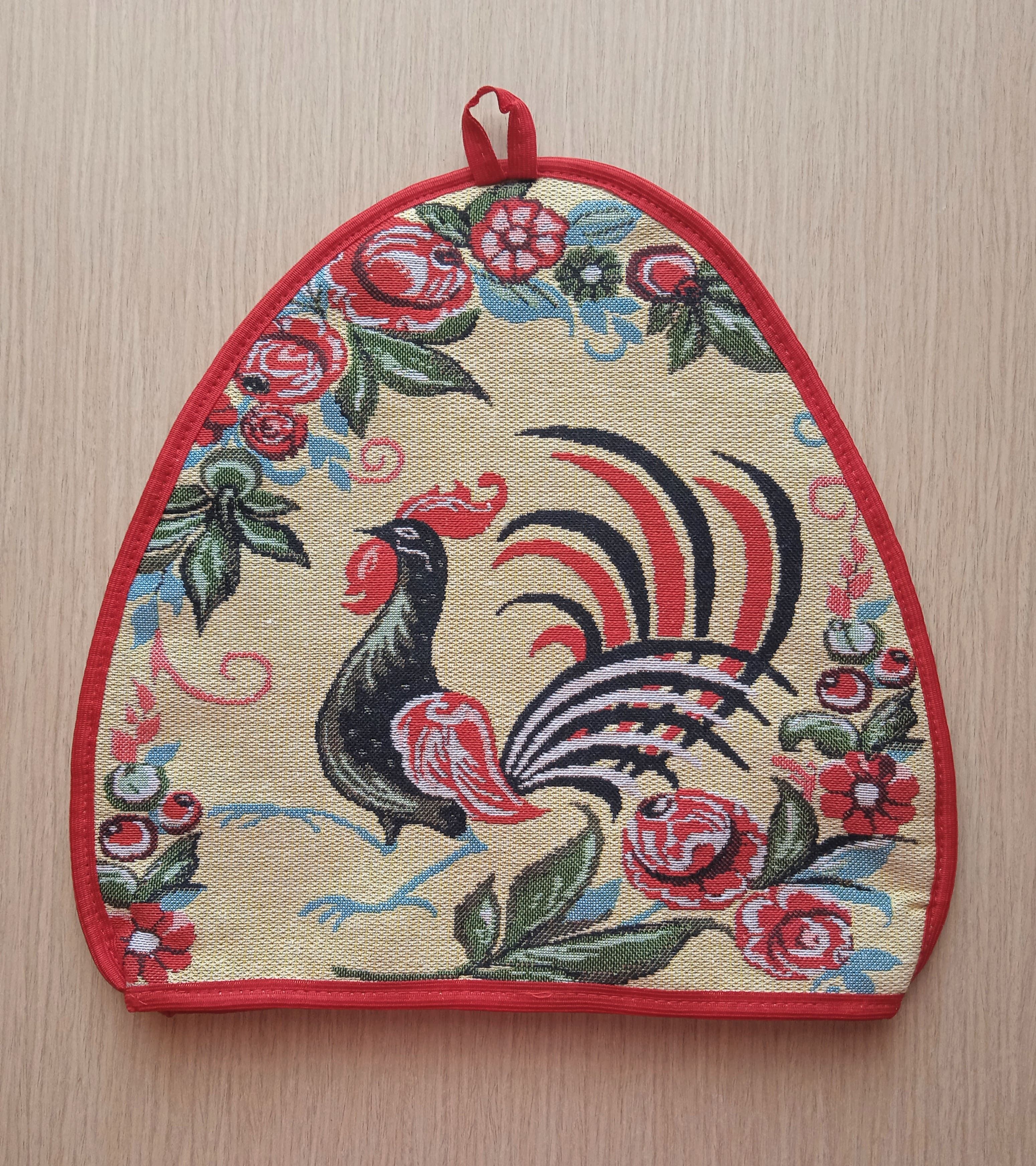 Гобеленовый набор для чайника. В набор входит колпак-грелка на заварочный чайник и подставка-прихватка круглой формы. Набор на чайник сшит из гобеленовой ткани с рисунком специально подобранным для этого предмета кухонного текстиля. Предметы входящие в набор имеют прокладку из хлопкового ватина, для сохранения температуры чая в заварочном чайнике, и подкладку из хлопковой бязи внутри колпака и на обратной стороне подставки-прихватки.Колпак входящий в набор для чайника надевается на заварочный чайник для сохранения температуры чая внутри чайника на длительное время. Круглая подставка служит изолирующей прокладкой между чайником и поверхностью стола и так же как и колпак помогает сохранять температуру чая в чайнике.Вместе эти предметы кухонного текстиля образуют гобеленовый термос, красивый стильный, оригинальный и безусловно полезный во время чаепития с гостями. Вам не придется многократно подогревать чай, он останется горячим. Чай при постоянно высокой температуре заваривается гораздо быстрее, и лучше раскрывает аромат хорошего чая. И сам гобеленовый набор для чая не останется без внимания ваших гостей.За очень не высокую цену вы можете приобрести оригинальный и полезный набор для кухни себе или в подарок, который непременно оценят ваши друзья и будут пользоваться им вспоминая вас с благодарностью.