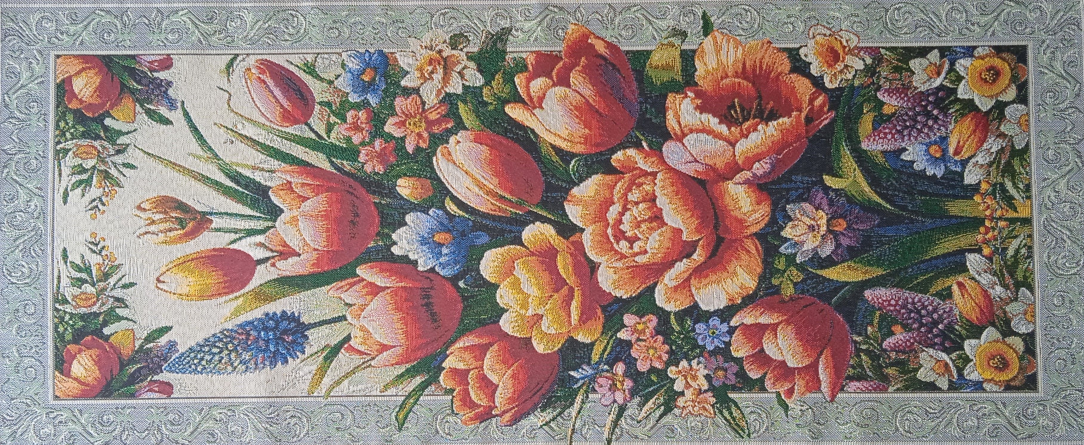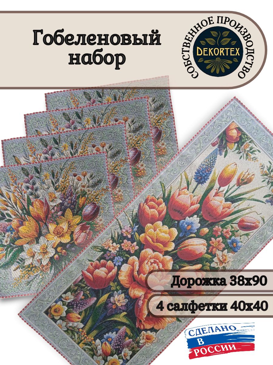 Декоративные гобеленовые дорожки и салфетки - это приятное и полезное украшение для сервировки стола. Гобеленовые декоративные дорожки не только модный, красивый предмет интерьера но и полезны и практичны в использовании. Они помогут предохранить поверхность мебели от повреждения. Гобеленовые столешницы устойчивы к загрязнению, хорошо стираются при температуре 30 градусов на дают усадки не линяют. Изделия из гобеленовой ткани имеют длительный срок службы и сохраняют первоначальный вид и форму.
