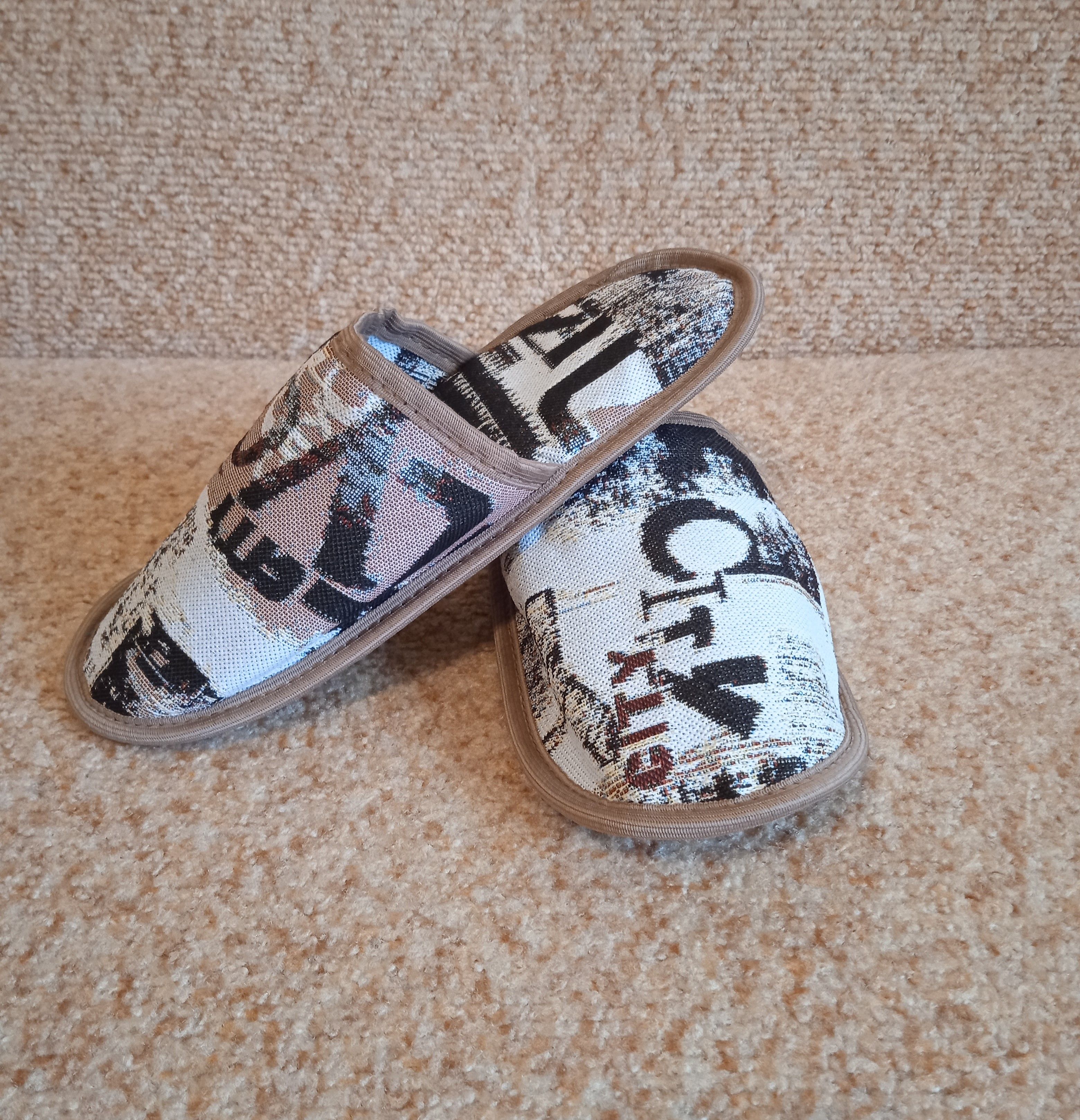 Гостевой набор тапочек собственного производства выполнен из износостойкого, Российского двухслойного гобелена с высокой плотностью. В набор входят 3 пары тапочек и большой тапок-карман для удобного хранения. В подошве тапок есть мягкая прослойка поролона. Набор тапочек можно повесить на крючок в прихожей и Вы всегда будете готовы к приходу гостей. Кроме того, гостевой набор может стать красивым и полезным подарком на новоселье, 8 марта, новый год и другие праздники.