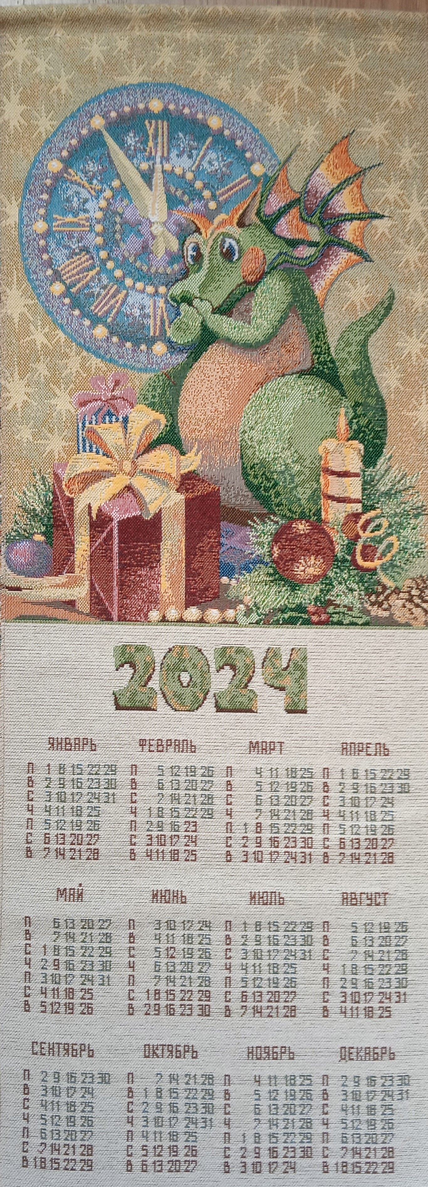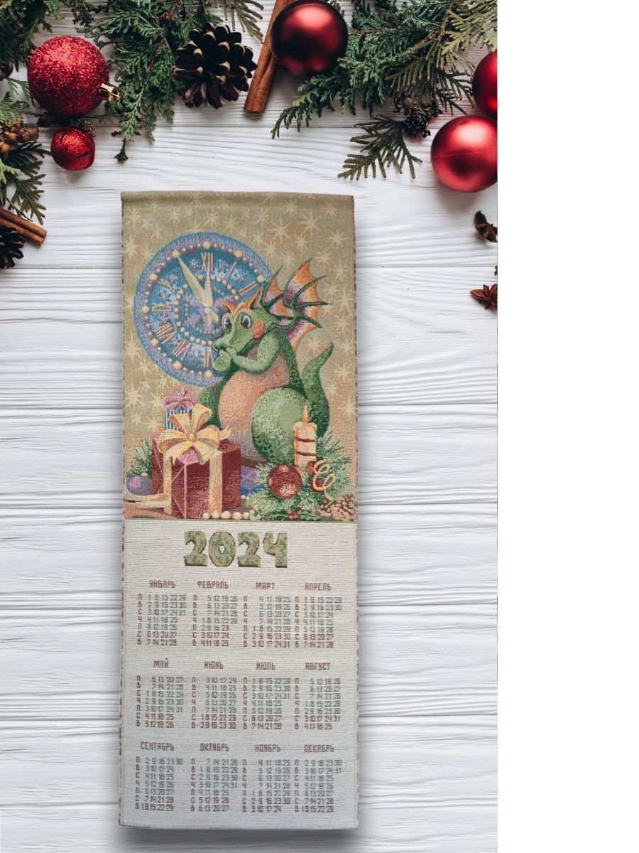 Гобеленовый календарь с изображением символа 2024 года Дракона - оригинальный, корпоративный подарок к предстоящим Новогодним Праздникам. Календарь на гобеленовой ткани выгодно отличается от бумажных аналогов, при этом стоит совсем не дорого. Покупая календари у компании DEKORTEX вы получаете выгодные цены и и качественную обработку изделия выделяющую нашу продукцию среди конкурентов.