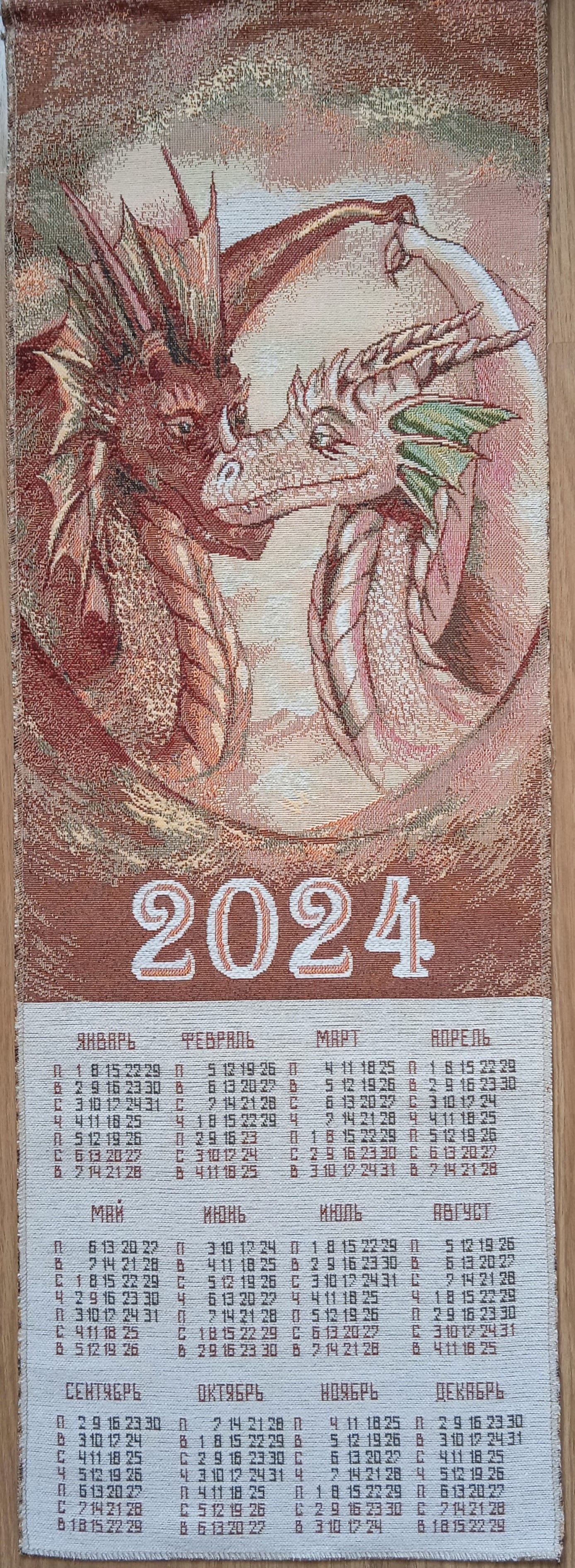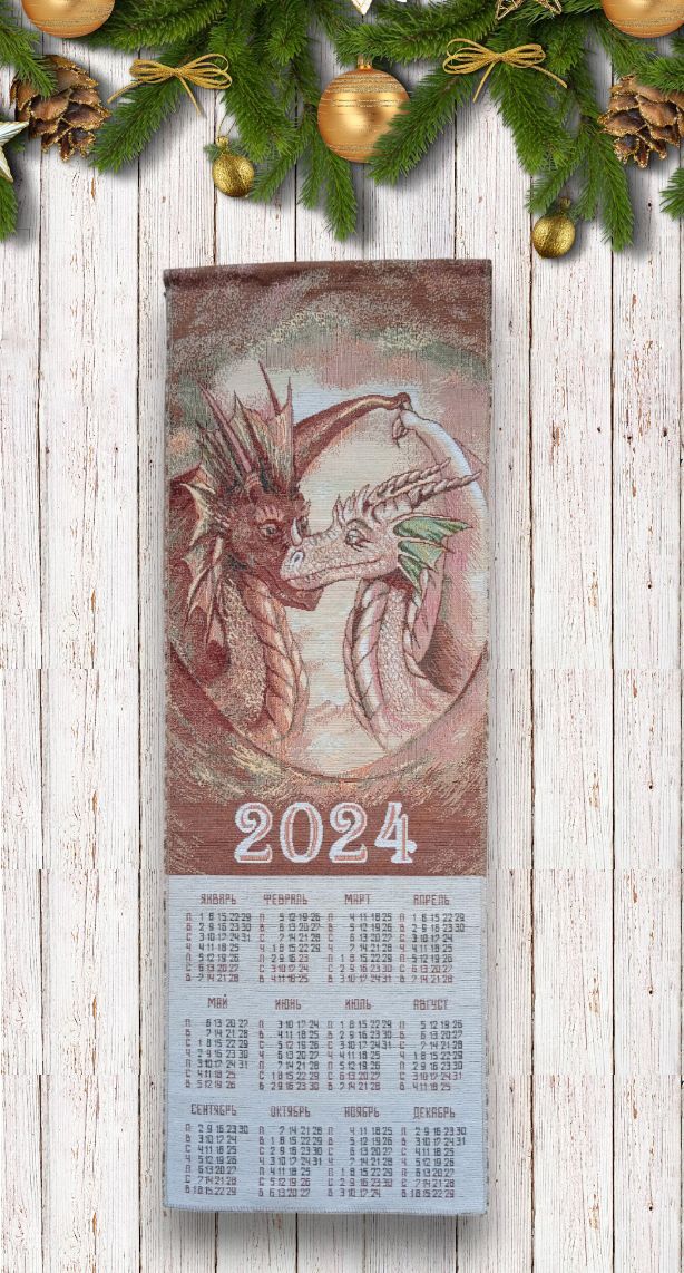 Гобеленовый календарь с изображением символа 2024 года Дракона - оригинальный, корпоративный подарок к предстоящим Новогодним Праздникам. Календарь на гобеленовой ткани выгодно отличается от бумажных аналогов, при этом стоит совсем не дорого. Покупая календари у компании DEKORTEX вы получаете выгодные цены и и качественную обработку изделия выделяющую нашу продукцию среди конкурентов.
