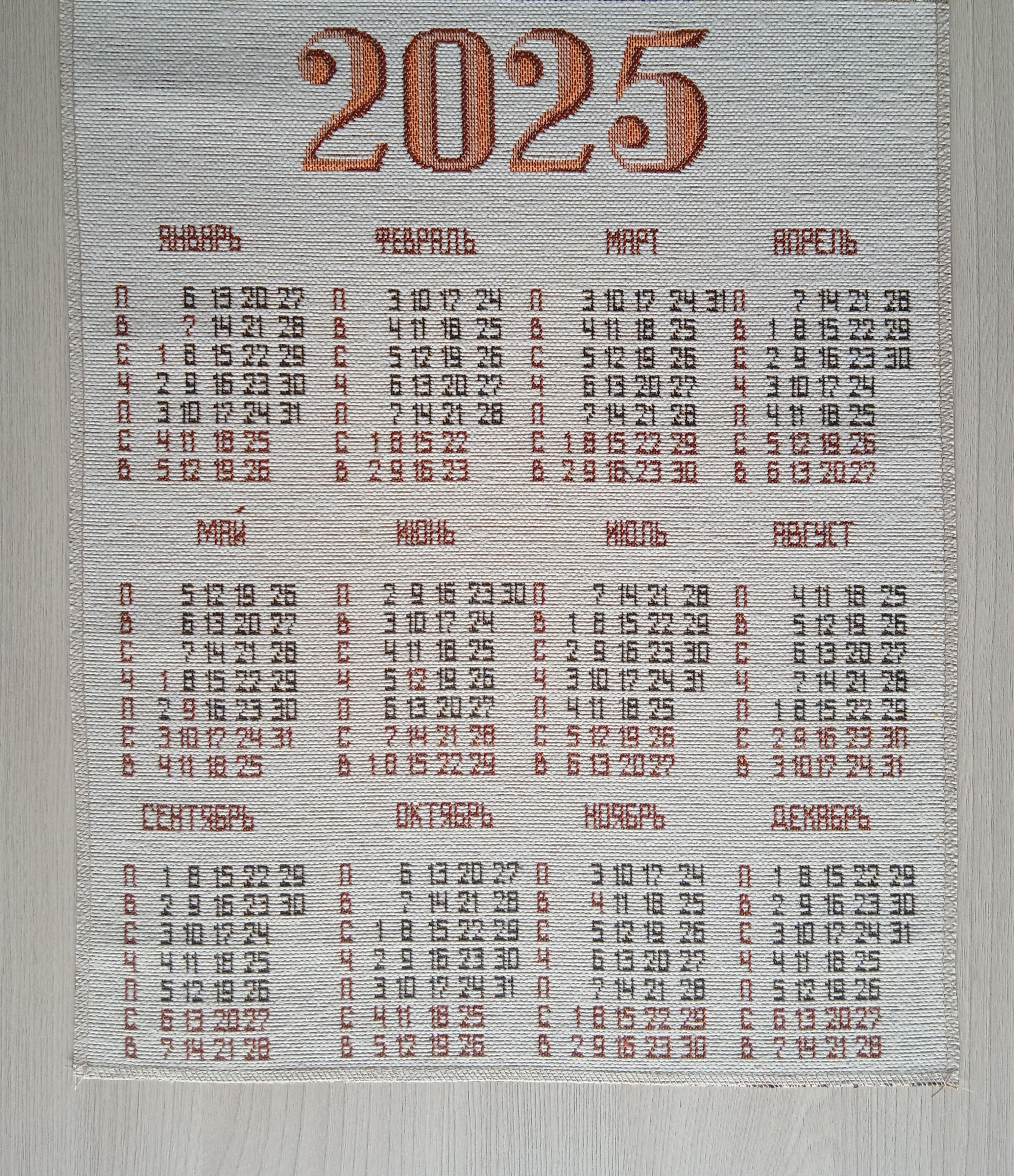 Гобеленовый календарь - оригинальный, корпоративный подарок к предстоящим Новогодним Праздникам. Календарь на гобеленовой ткани выгодно отличается от бумажных аналогов, при этом стоит совсем не дорого. Покупая календари у компании DEKORTEX вы получаете выгодные цены и и качественную обработку изделия выделяющую нашу продукцию среди конкурентов.