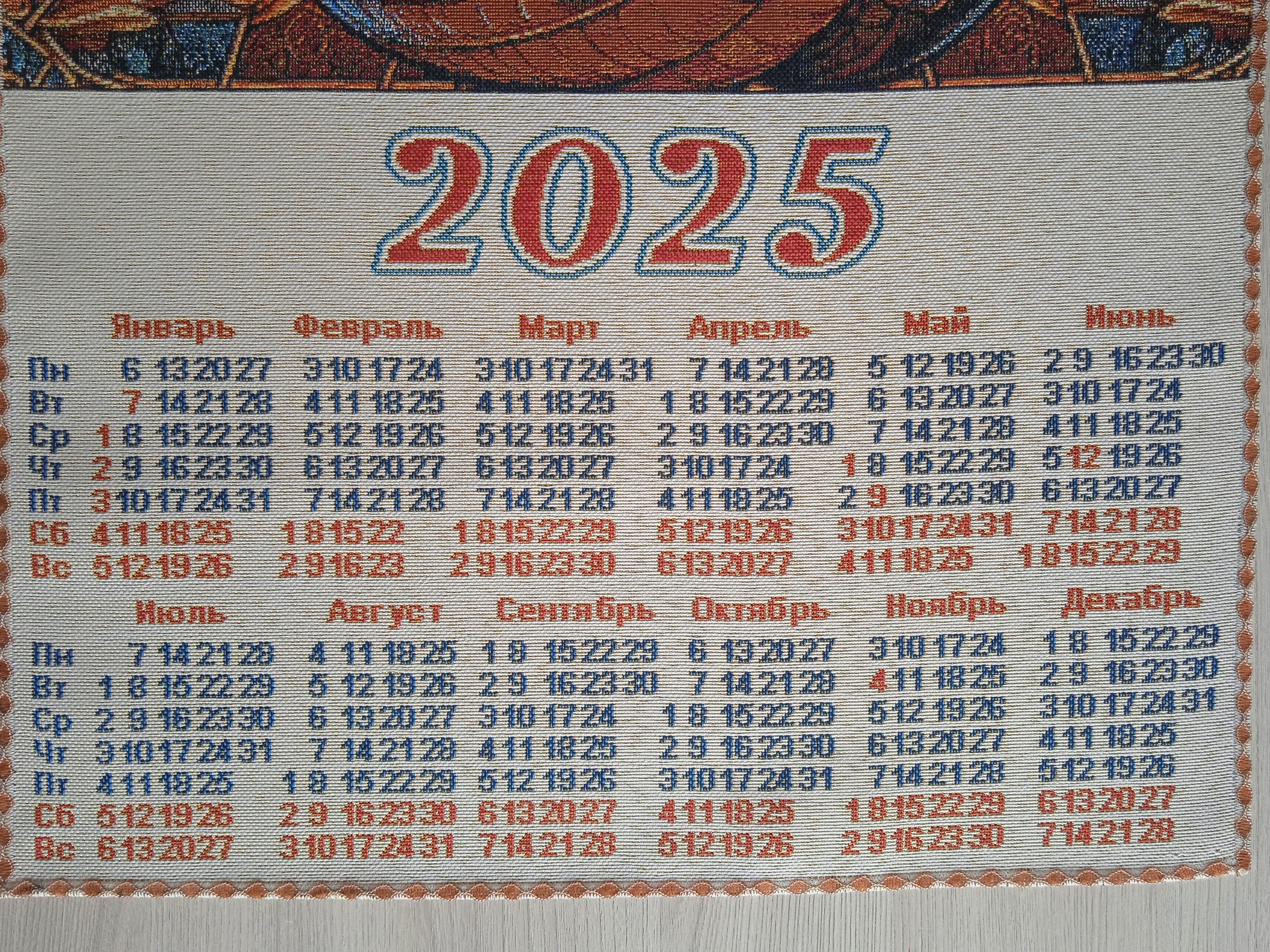 Гобеленовый календарь - оригинальный, корпоративный подарок к предстоящим Новогодним Праздникам. Календарь на гобеленовой ткани выгодно отличается от бумажных аналогов, при этом стоит совсем не дорого. Покупая календари у компании DEKORTEX вы получаете выгодные цены и и качественную обработку изделия выделяющую нашу продукцию среди конкурентов.