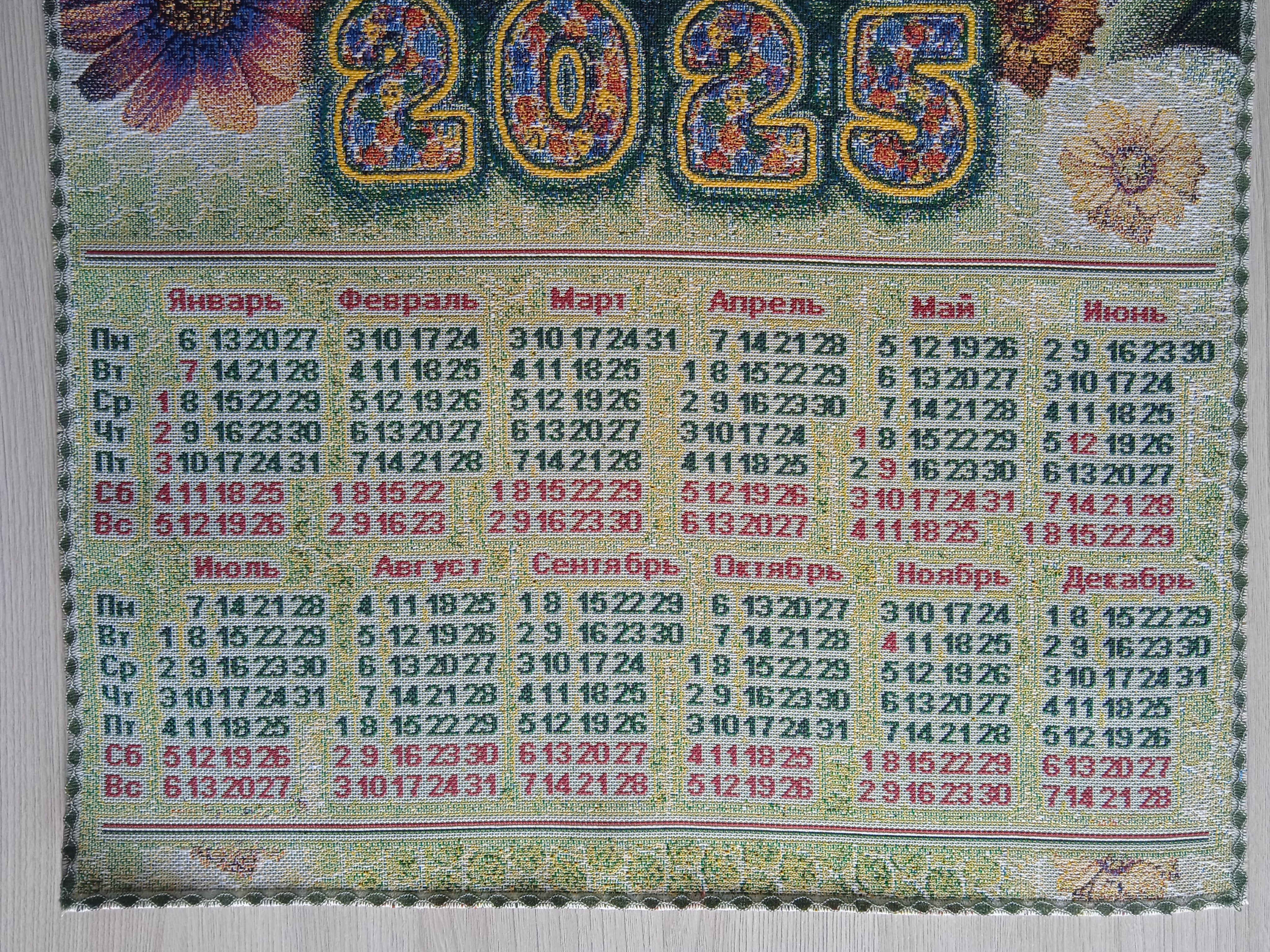 Гобеленовый календарь - оригинальный, корпоративный подарок к предстоящим Новогодним Праздникам. Календарь на гобеленовой ткани выгодно отличается от бумажных аналогов, при этом стоит совсем не дорого. Покупая календари у компании DEKORTEX вы получаете выгодные цены и и качественную обработку изделия выделяющую нашу продукцию среди конкурентов.
