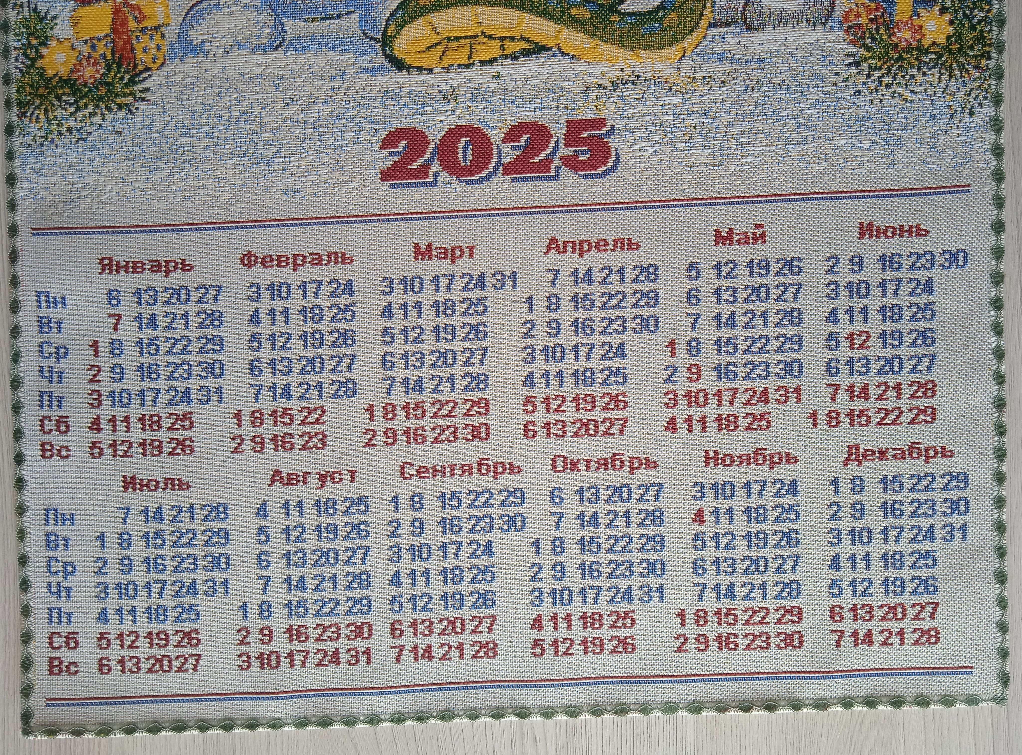 Гобеленовый календарь - оригинальный, корпоративный подарок к предстоящим Новогодним Праздникам. Календарь на гобеленовой ткани выгодно отличается от бумажных аналогов, при этом стоит совсем не дорого. Покупая календари у компании DEKORTEX вы получаете выгодные цены и и качественную обработку изделия выделяющую нашу продукцию среди конкурентов.