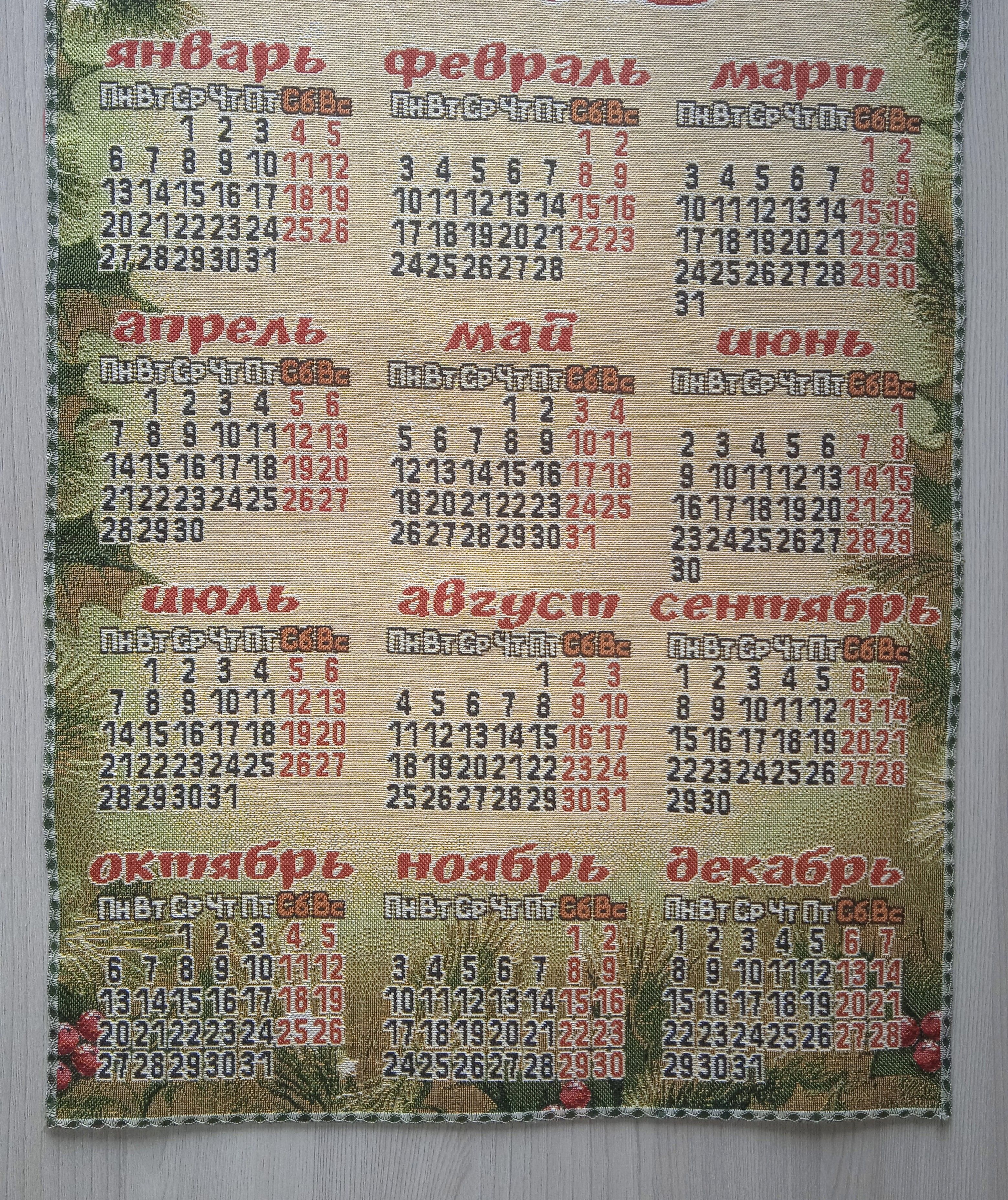 Гобеленовый календарь - оригинальный, корпоративный подарок к предстоящим Новогодним Праздникам. Календарь на гобеленовой ткани выгодно отличается от бумажных аналогов, при этом стоит совсем не дорого. Покупая календари у компании DEKORTEX вы получаете выгодные цены и и качественную обработку изделия выделяющую нашу продукцию среди конкурентов.