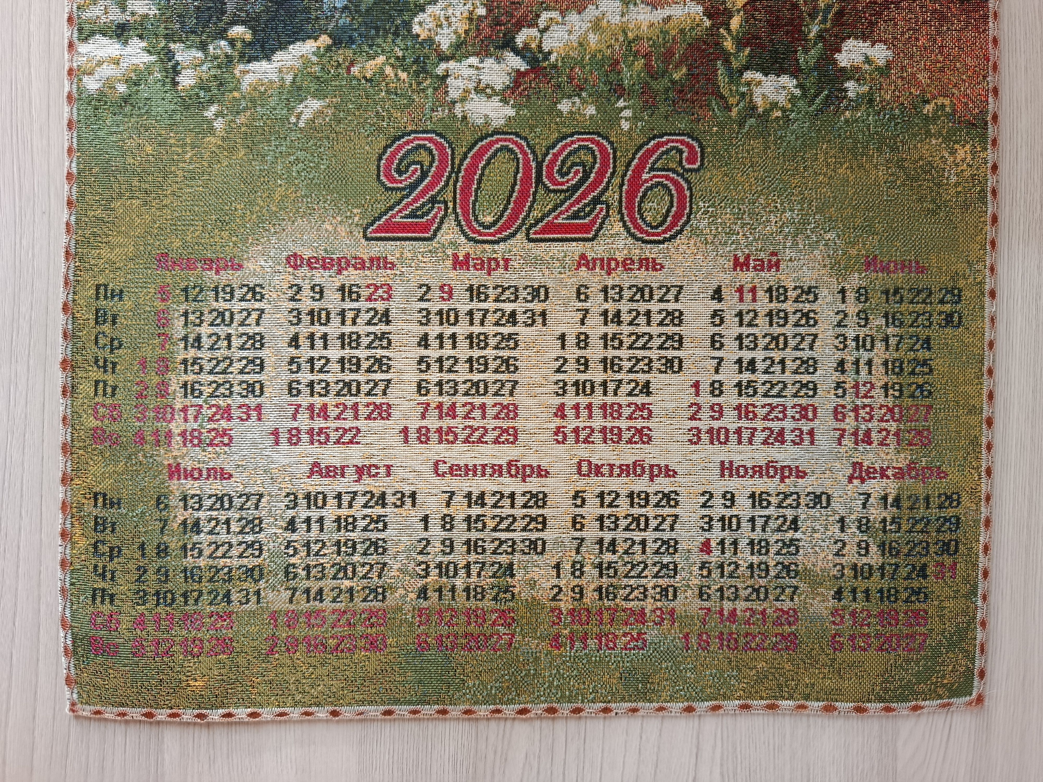 Гобеленовый календарь - оригинальный, корпоративный подарок к предстоящим Новогодним Праздникам. Календарь на гобеленовой ткани выгодно отличается от бумажных аналогов, при этом стоит совсем не дорого. Покупая календари у компании DEKORTEX вы получаете выгодные цены и и качественную обработку изделия выделяющую нашу продукцию среди конкурентов.