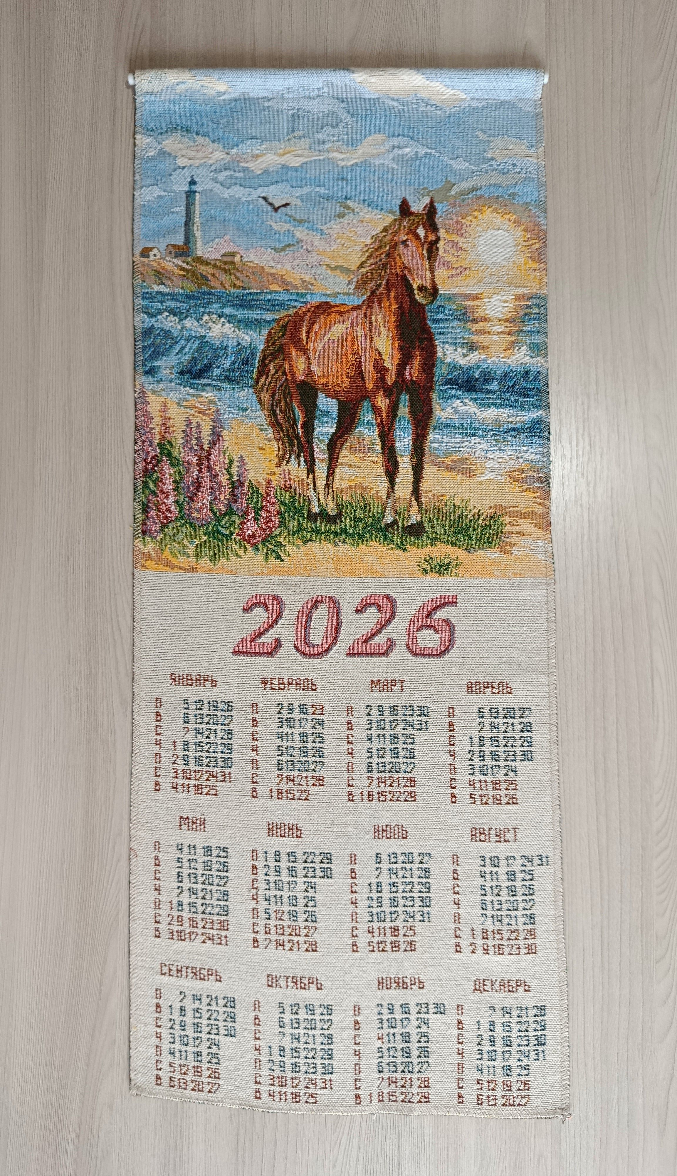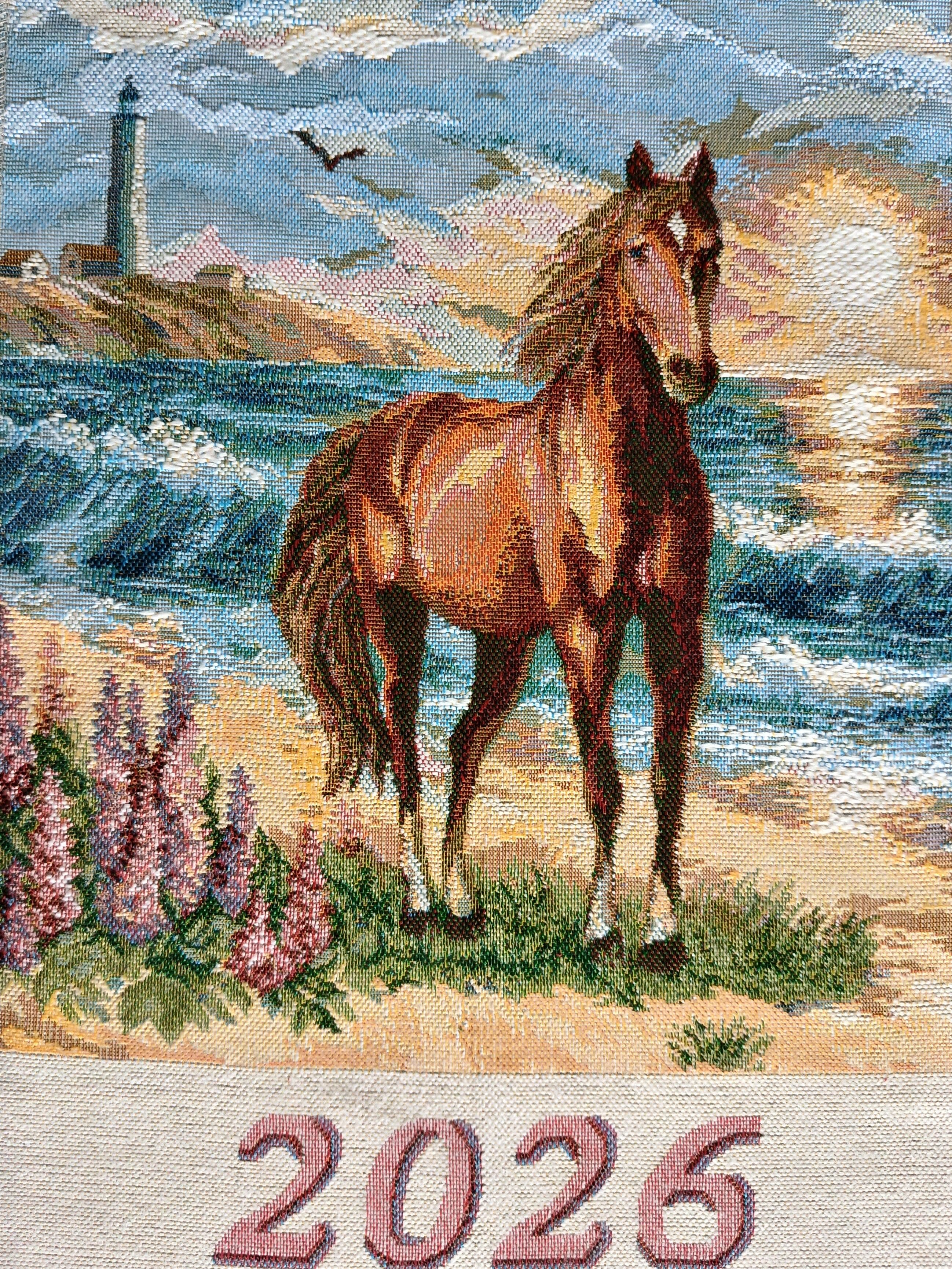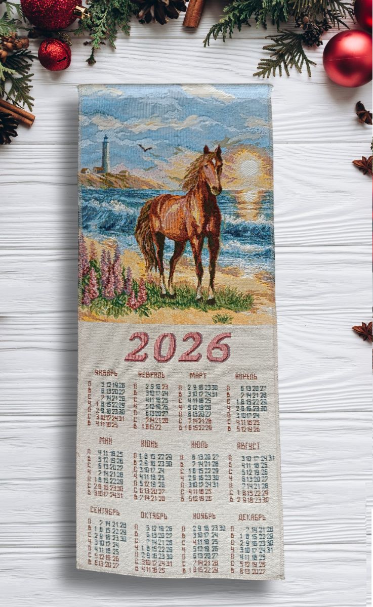 Гобеленовый календарь с изображением символа 2026 года Лошади - оригинальный, корпоративный подарок к предстоящим Новогодним Праздникам. Календарь на гобеленовой ткани выгодно отличается от бумажных аналогов, при этом стоит совсем не дорого. Покупая календари у компании DEKORTEX вы получаете выгодные цены и и качественную обработку изделия выделяющую нашу продукцию среди конкурентов.