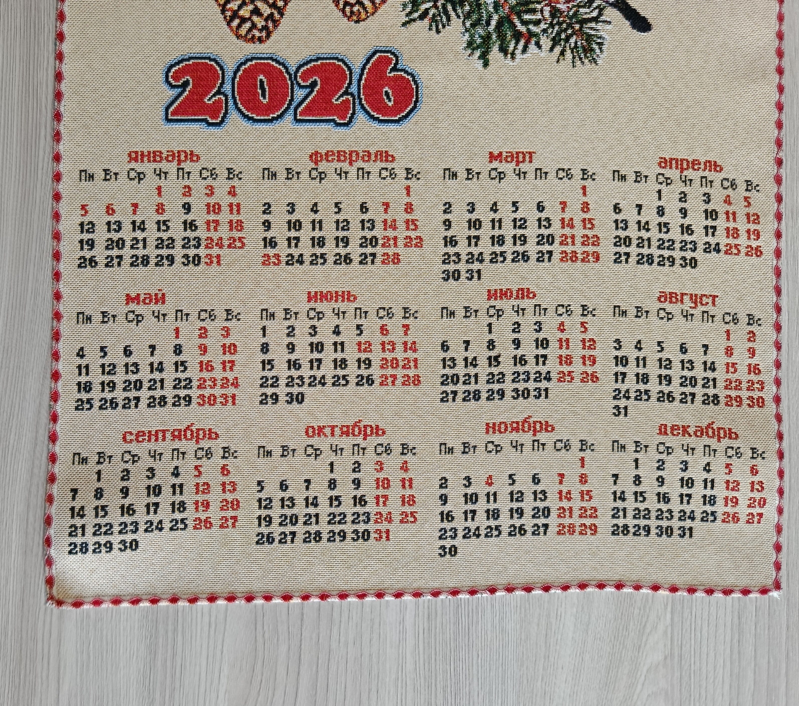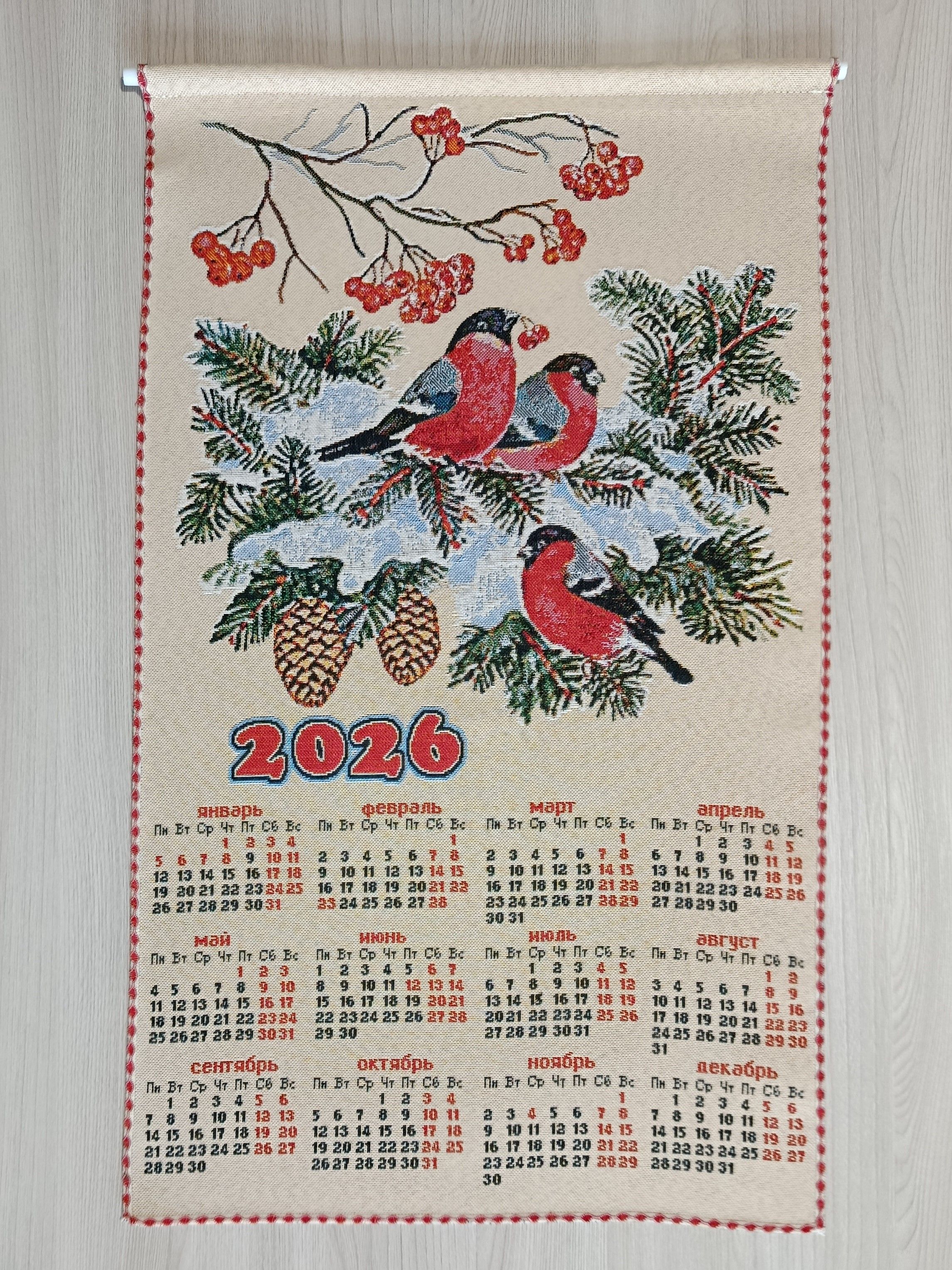 Гобеленовый календарь - оригинальный, корпоративный подарок к предстоящим Новогодним Праздникам. Календарь на гобеленовой ткани выгодно отличается от бумажных аналогов, при этом стоит совсем не дорого. Покупая календари у компании DEKORTEX вы получаете выгодные цены и и качественную обработку изделия выделяющую нашу продукцию среди конкурентов.