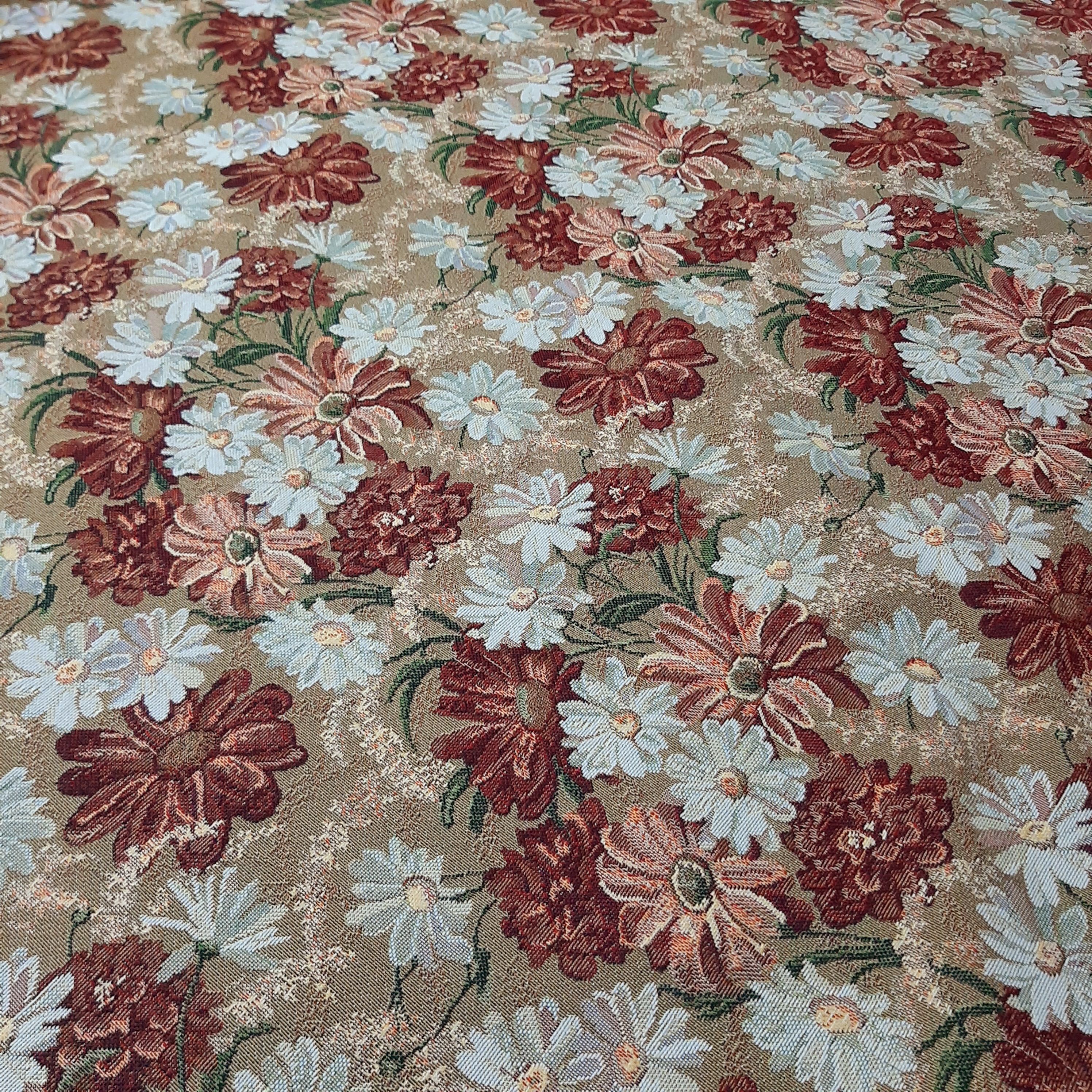 Ткань гобеленовая для обивки и перетяжки мебели "Любит не любит" Российского производства, повышенной плотности, с содержанием хлопка. Ширина 160 см. ; Плотность 380 см. ; Состав 5% хлопок. 95% п/э. Гобеленовые ткани отлично подходят для обивки мягкой мебели, стульев, используются для пошива покрывал, скатертей драпировки стен, интерьерных подушек и других предметов домашнего интерьера. Плотные и прочные гобеленовые ткани отличаются высокой износостойкостью и длительным сроком службы, хорошо стираются при температуре 30 градусов, практически не дают усадку и не линяют. Гобелены Российского производства продаются по цене гораздо ниже аналогичных импортных тканей, что делает покупку более выгодной и экономит ваши деньги.