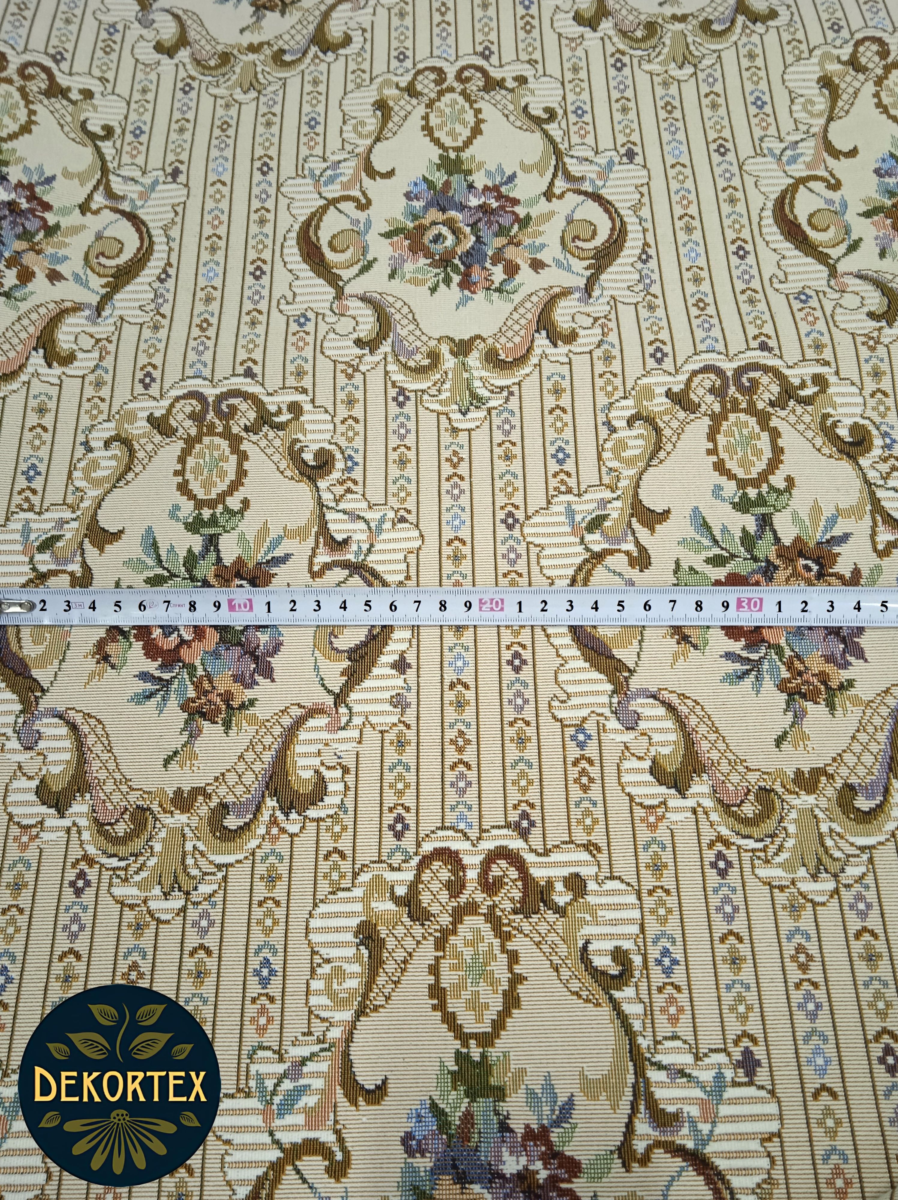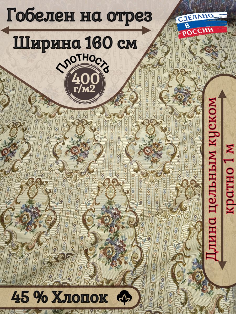 Ткань гобеленовая для обивки и перетяжки мебели "12 стульев" Российского производства, повышенной плотности, с высоким содержанием хлопка. Ширина 160 см. ; Плотность 400 см. ; Состав 45% хлопок. 55% п/э. Гобеленовые ткани отлично подходят для обивки мягкой мебели, стульев, используются для пошива покрывал, скатертей драпировки стен, интерьерных подушек и других предметов домашнего текстиля. Плотные и прочные гобеленовые ткани отличаются высокой износостойкостью и длительным сроком службы, хорошо стираются при температуре 30 градусов, практически не дают усадку и не линяют.