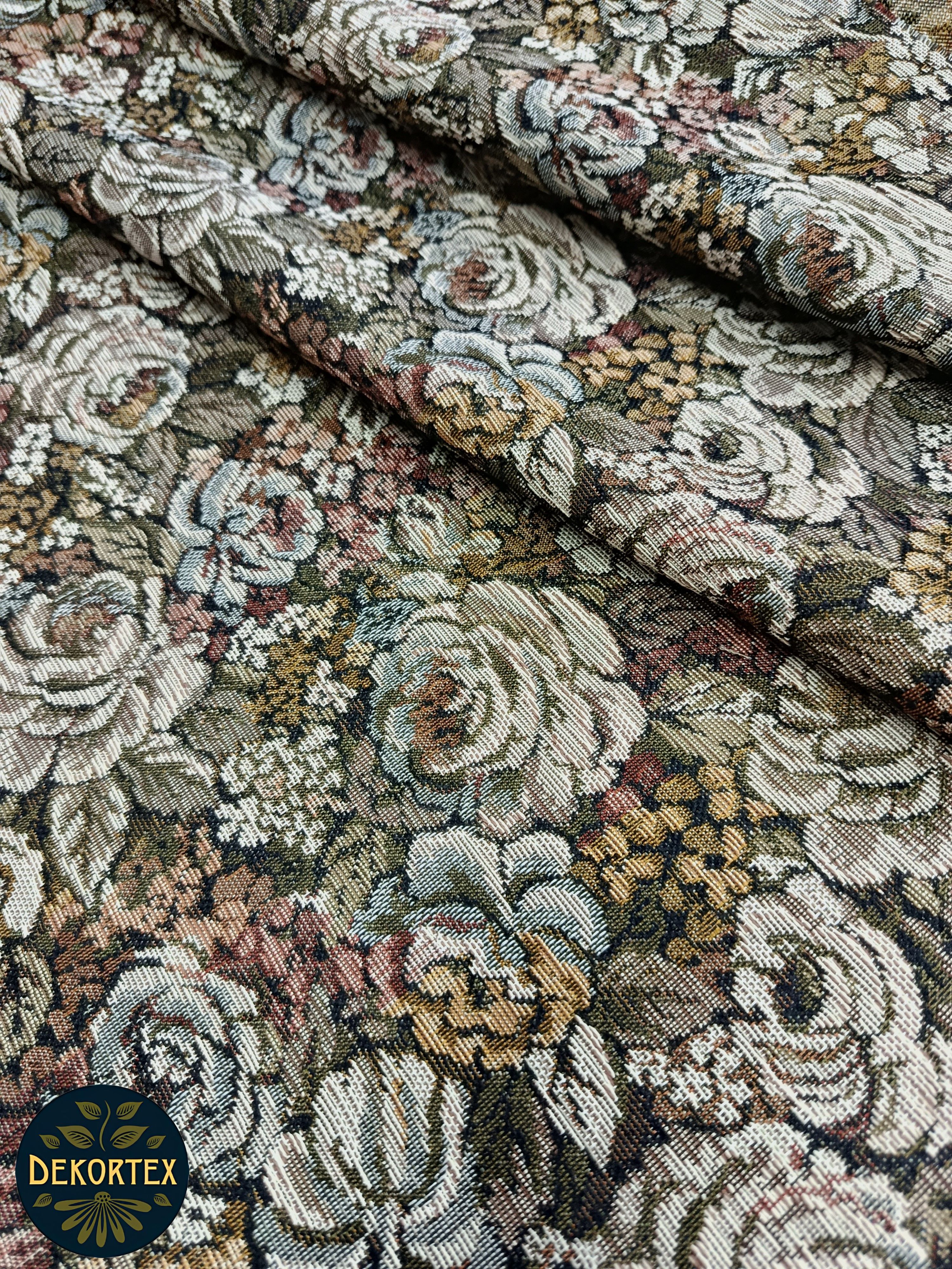 Ткань гобеленовая для рукоделия, обивки и перетяжки мебели "Капуста" Российского производства, повышенной плотности, с высоким содержанием хлопка. Ширина 160 см. ; Плотность 380 г/кв.м. ; Состав 50% хлопок. 50% п/э. Гобеленовые ткани отлично подходят для обивки мягкой мебели, стульев, используются для пошива покрывал, скатертей драпировки стен, интерьерных подушек и других предметов домашнего текстиля. Плотные и прочные гобеленовые ткани отличаются высокой износостойкостью и длительным сроком службы, хорошо стираются при температуре 30 градусов, практически не дают усадку и не линяют.
