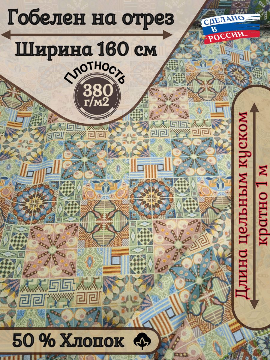 Ткань гобеленовая для обивки и перетяжки мебели "Керамика" Российского производства, повышенной плотности, с высоким содержанием хлопка. Ширина 160 см. ; Плотность 380 см. ; Состав 50% хлопок. 50% п/э. Гобеленовые ткани отлично подходят для обивки мягкой мебели, стульев, используются для пошива покрывал, скатертей драпировки стен, интерьерных подушек и других предметов домашнего текстиля. Плотные и прочные гобеленовые ткани отличаются высокой износостойкостью и длительным сроком службы, хорошо стираются при температуре 30 градусов, практически не дают усадку и не линяют.