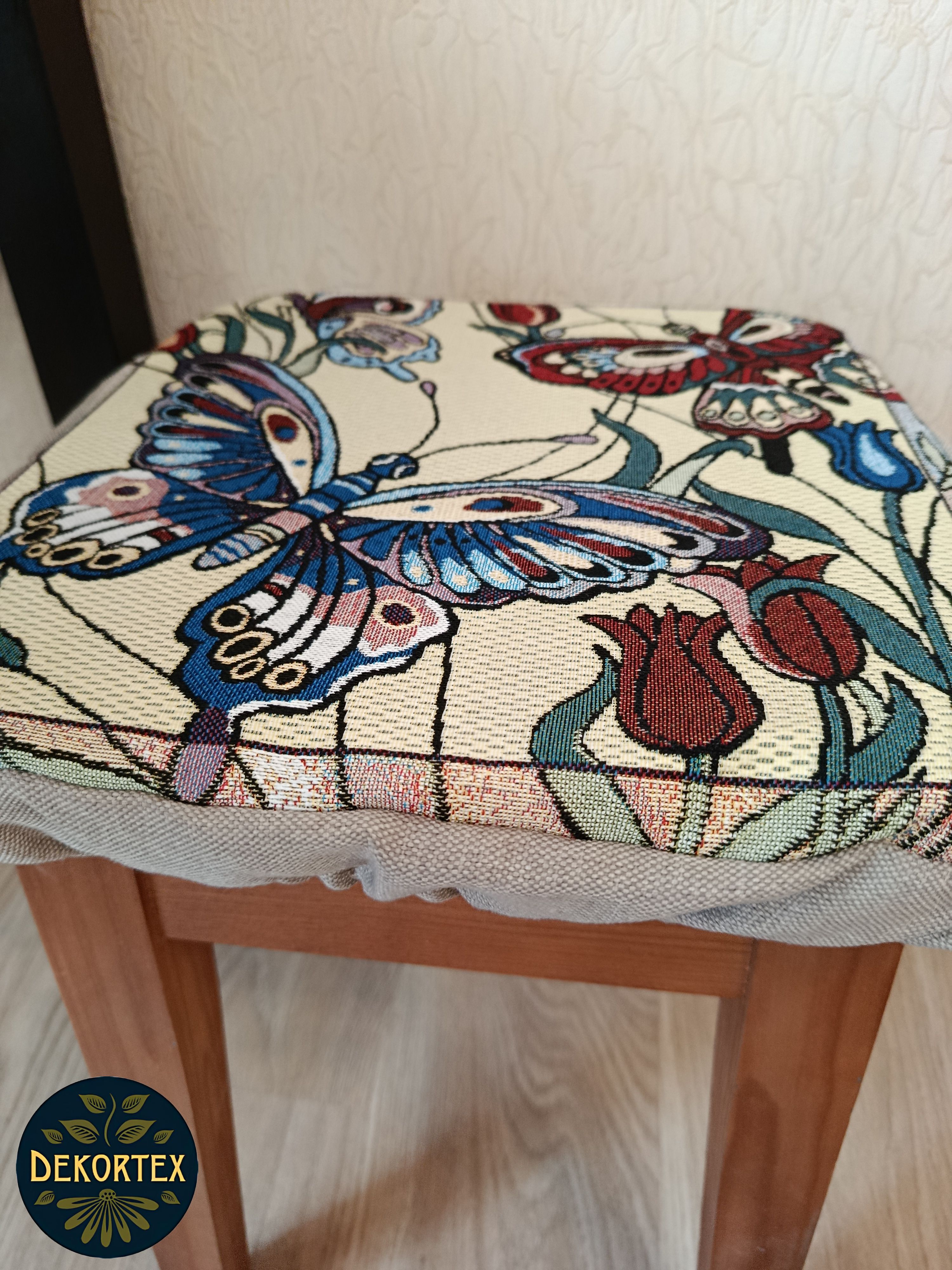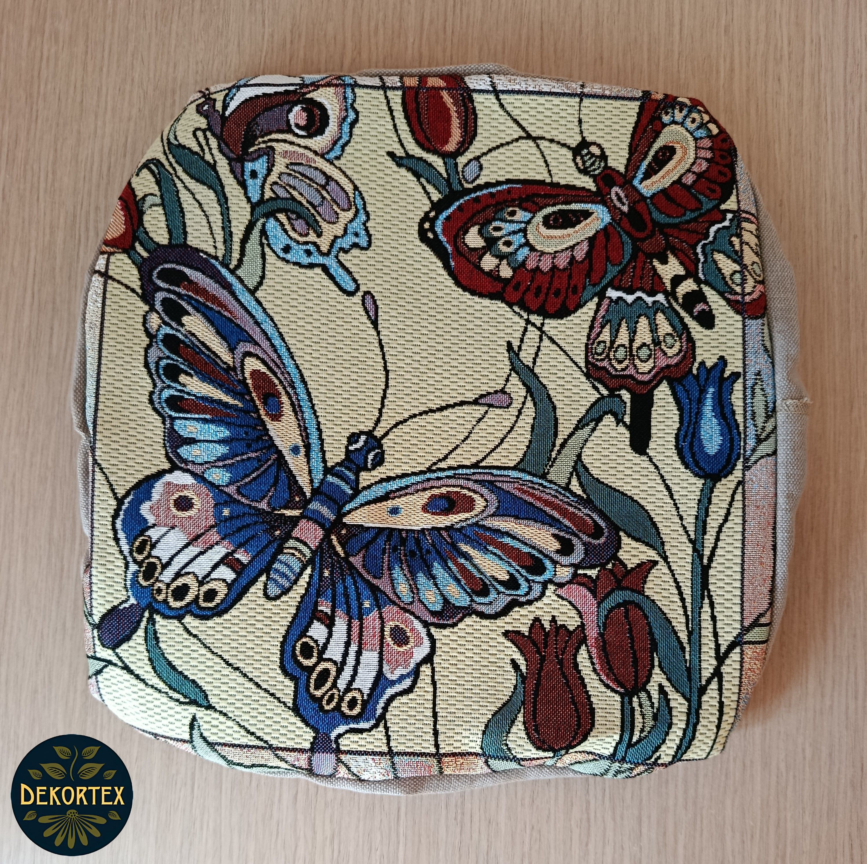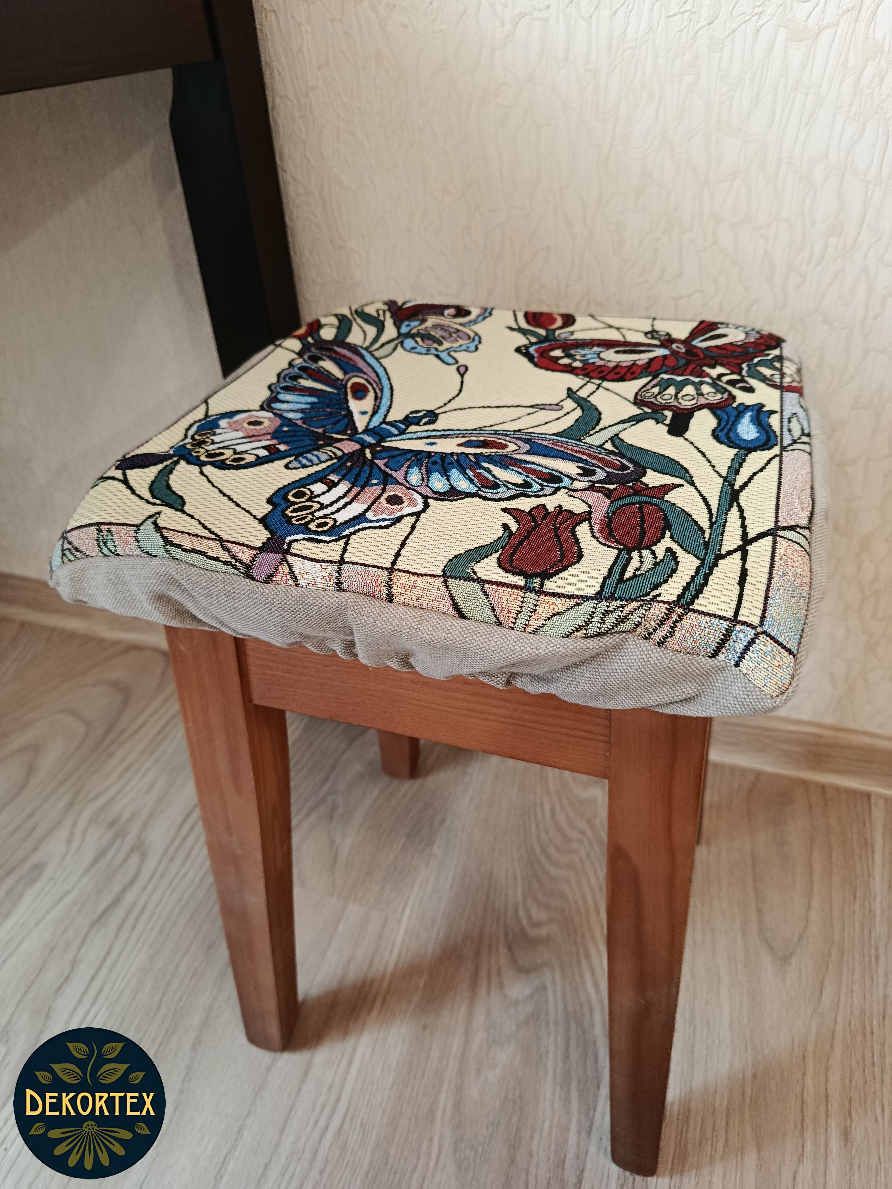 Чехол на табурет из гобелена квадратной формы размером 33х33 см. Верх выполнен из плотного, износостойкого гобелена Российского производства, плотностью 380 г/кв.м и однотонной рогожки. Крепится на табурет с помощью резинки. Благодаря поролоновой вставке высотой 2 см скроет на поверхности табурета неровности, потертости и придаст комфорт при использовании. Поролон легко вынимается и Вы можете почистить или постирать гобеленовый чехол. Допускается бережная стирка. Состав гобелена: 100% П/Э. Допускается погрешность размере табуретницы 1см.