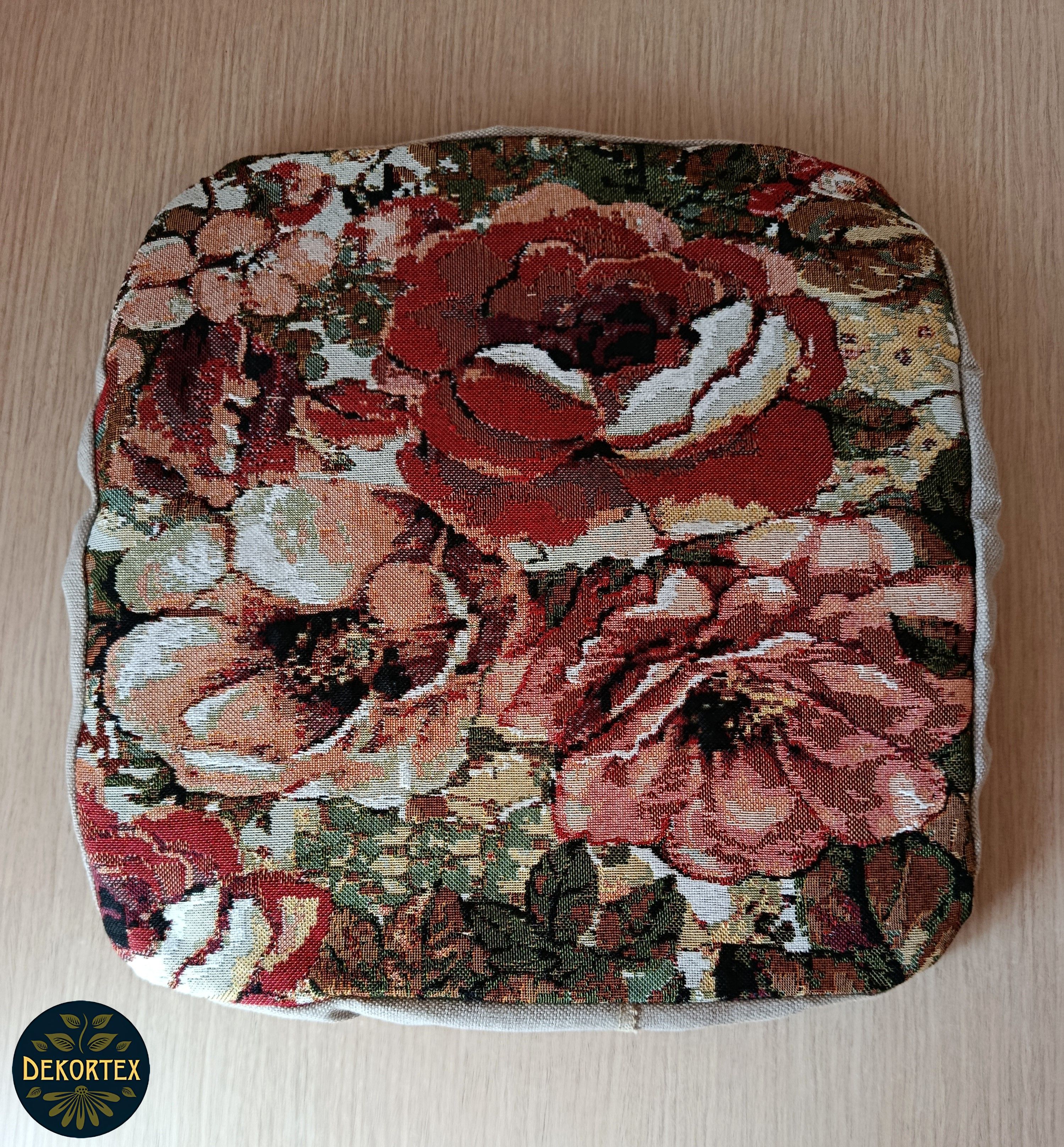 Чехол на табурет из гобелена квадратной формы размером 33х33 см. Верх выполнен из плотного, износостойкого гобелена Российского производства, плотностью 380 г/кв.м и однотонной рогожки. Крепится на табурет с помощью резинки. Благодаря поролоновой вставке высотой 2 см скроет на поверхности табурета неровности, потертости и придаст комфорт при использовании. Поролон легко вынимается и Вы можете почистить или постирать гобеленовый чехол. Допускается бережная стирка. Состав гобелена: 100% П/Э. Допускается погрешность размере табуретницы 1см.