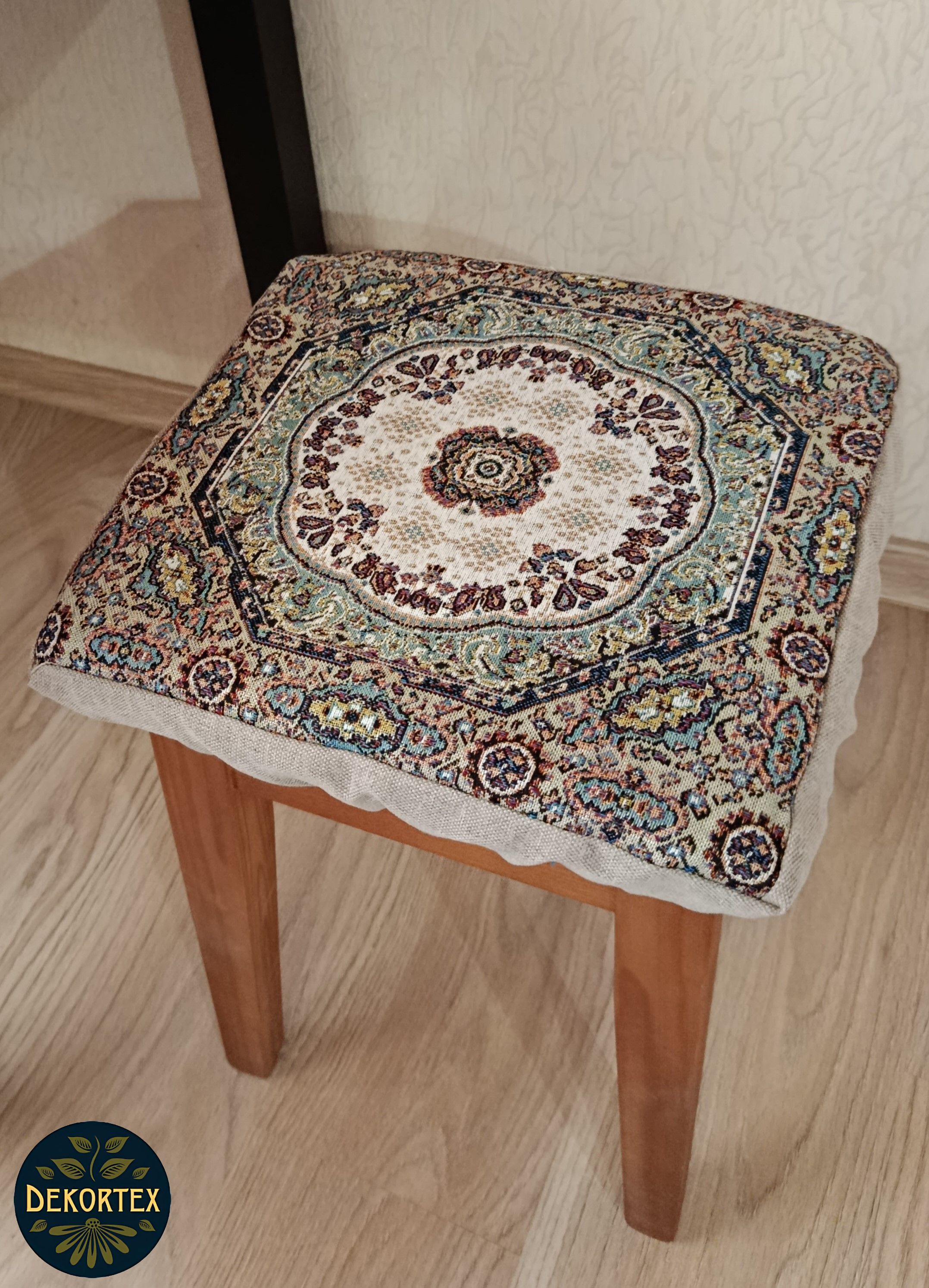 Чехол на табурет из гобелена квадратной формы размером 33х33 см. Верх выполнен из плотного, износостойкого гобелена Российского производства, плотностью 380 г/кв.м и однотонной рогожки. Крепится на табурет с помощью резинки. Благодаря поролоновой вставке высотой 2 см скроет на поверхности табурета неровности, потертости и придаст комфорт при использовании. Поролон легко вынимается и Вы можете почистить или постирать гобеленовый чехол. Допускается бережная стирка. Состав гобелена: 100% П/Э. Допускается погрешность размере табуретницы 1см.