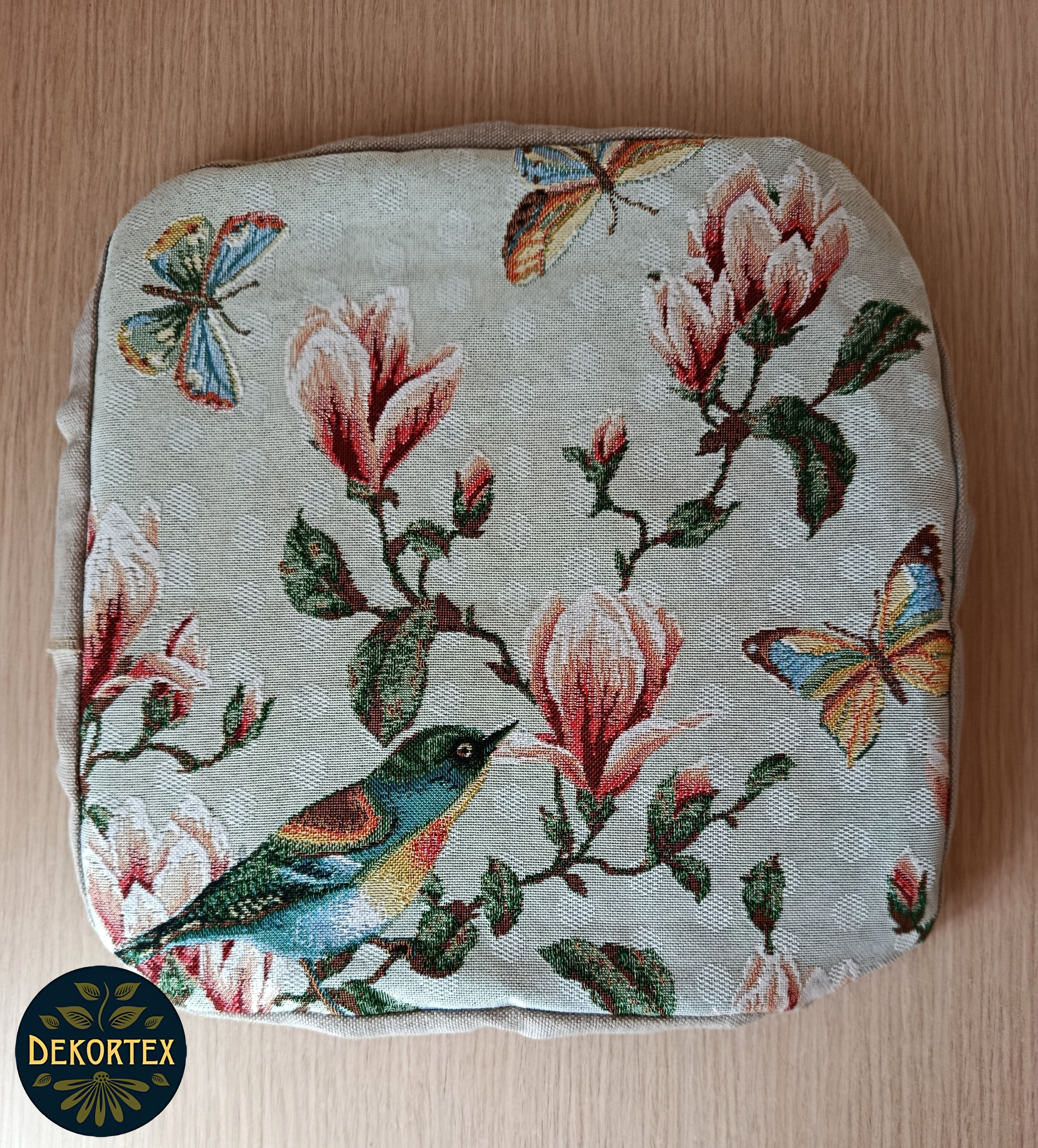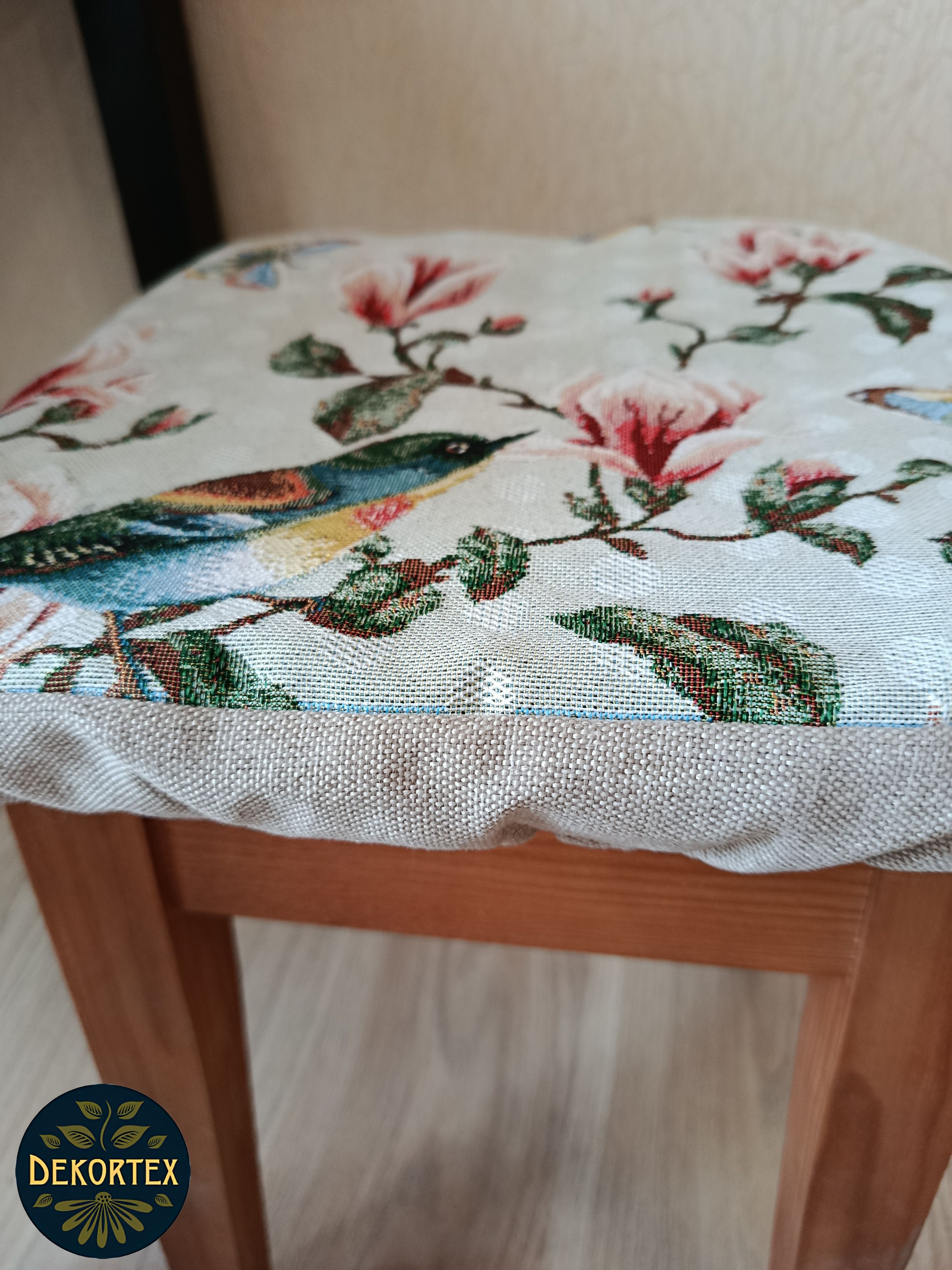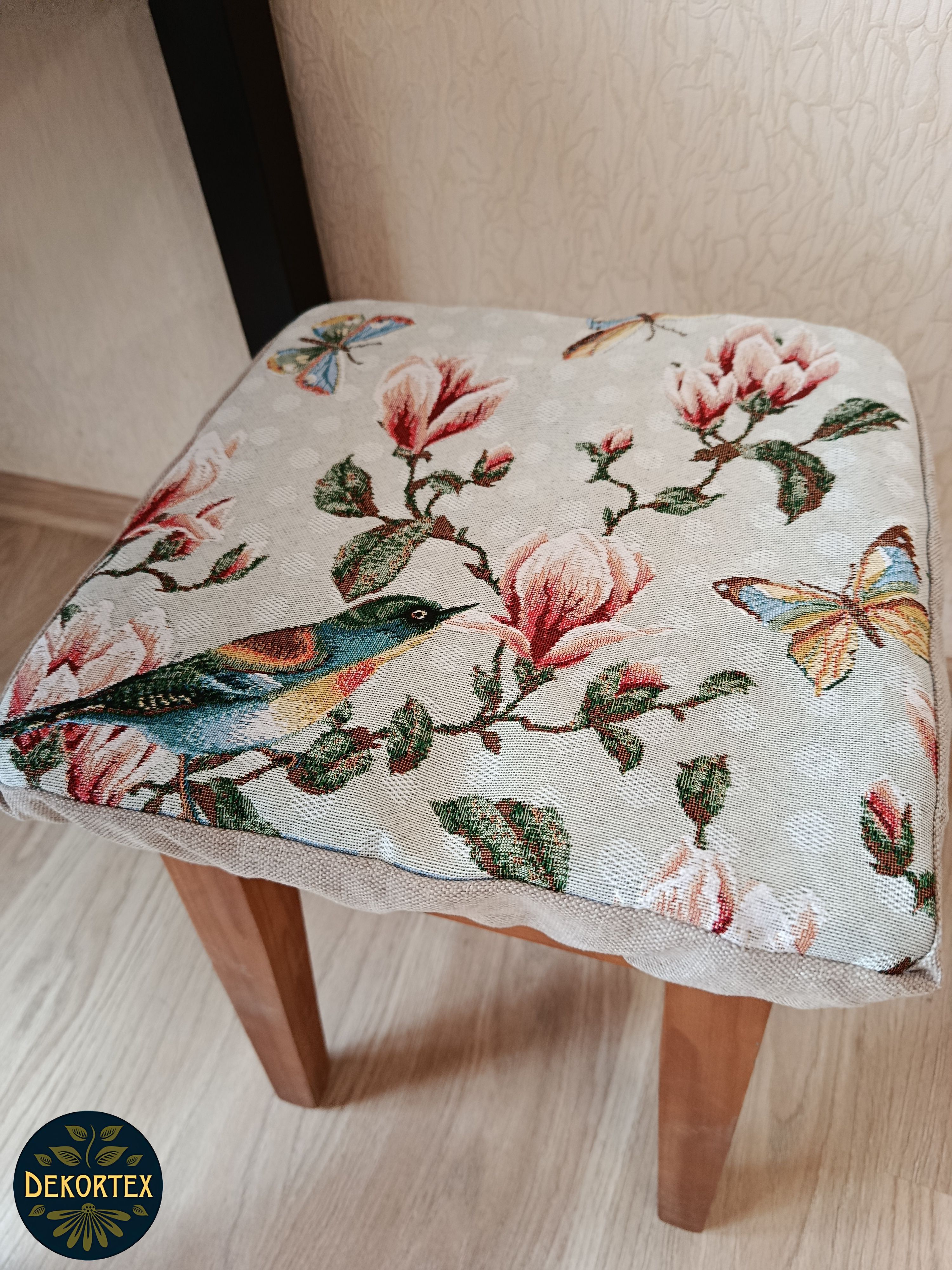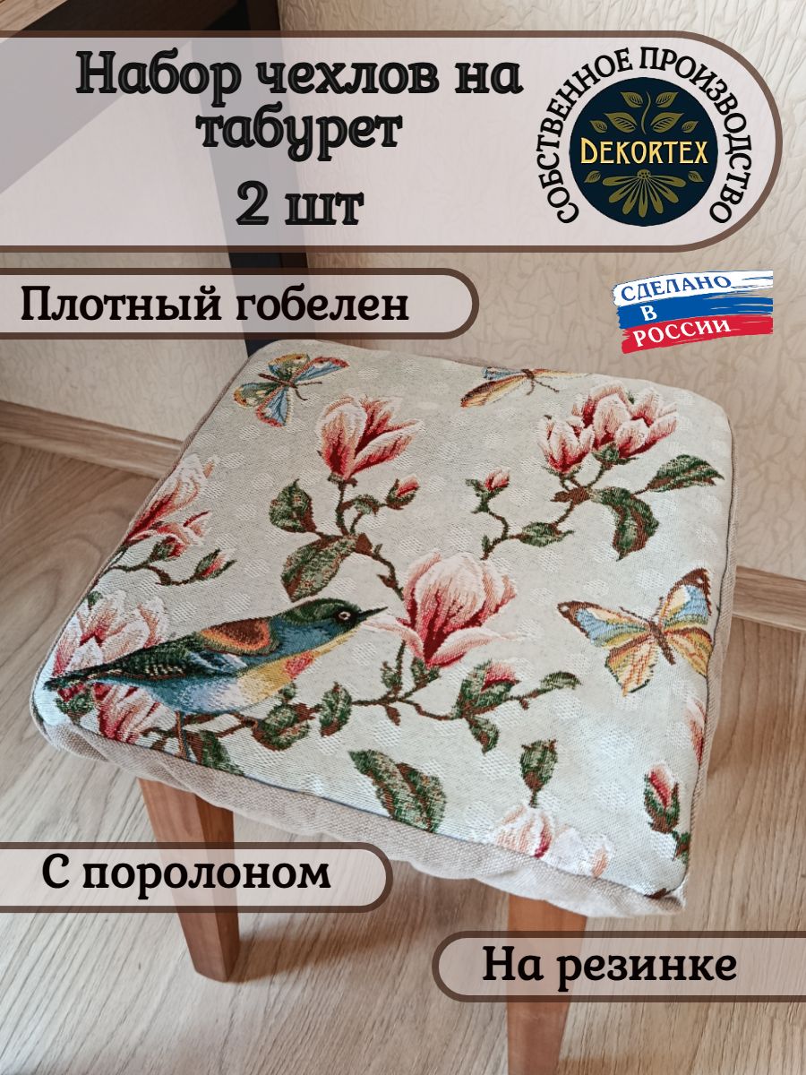 Чехол на табурет из гобелена квадратной формы размером 33х33 см. Верх выполнен из плотного, износостойкого гобелена Российского производства, плотностью 380 г/кв.м и однотонной рогожки. Крепится на табурет с помощью резинки. Благодаря поролоновой вставке высотой 2 см скроет на поверхности табурета неровности, потертости и придаст комфорт при использовании. Поролон легко вынимается и Вы можете почистить или постирать гобеленовый чехол. Допускается бережная стирка. Состав гобелена: 100% П/Э. Допускается погрешность размере табуретницы 1см.