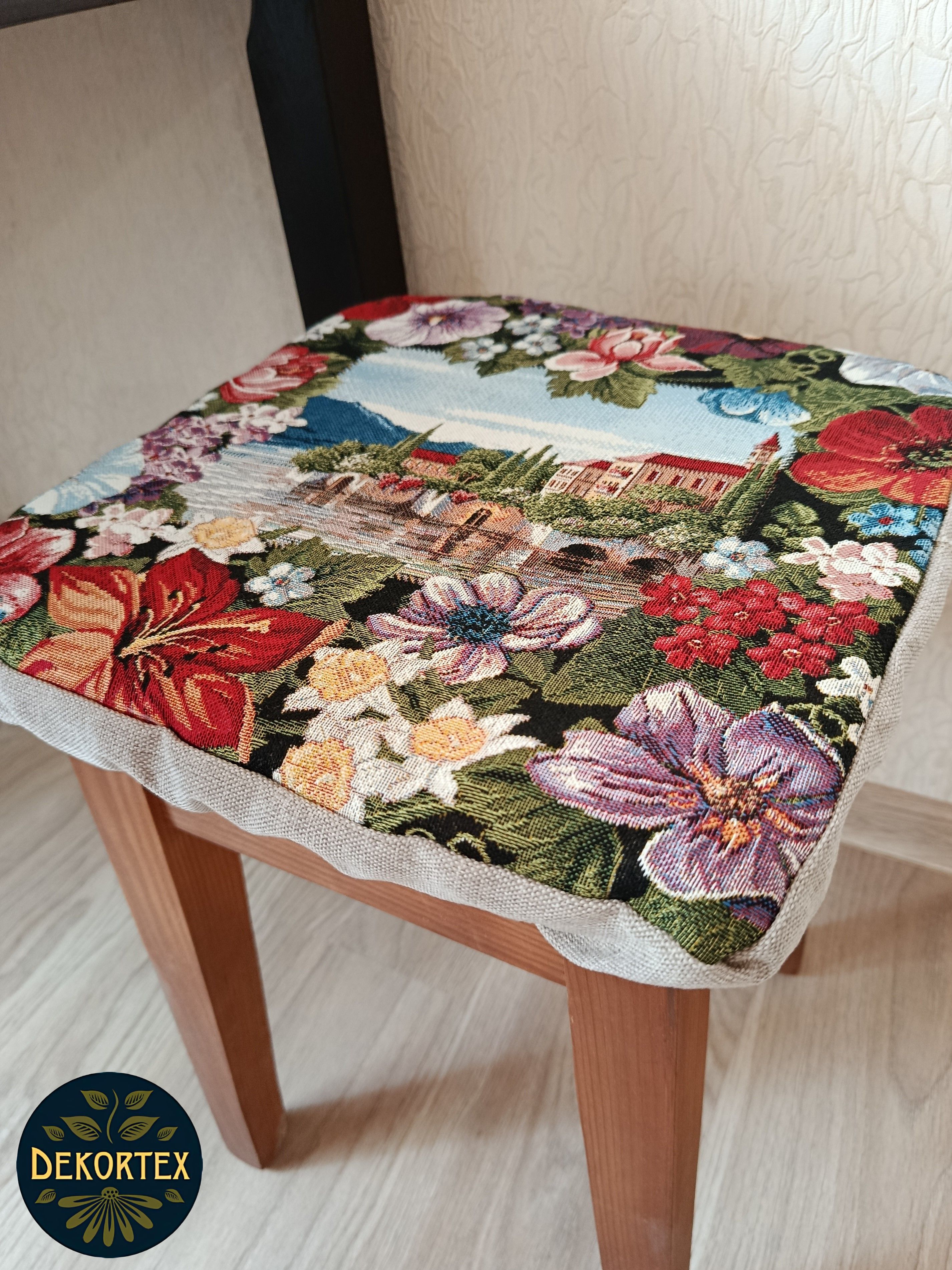 Чехол на табурет из гобелена квадратной формы размером 33х33 см. Верх выполнен из плотного, износостойкого гобелена Российского производства, плотностью 380 г/кв.м и однотонной рогожки. Крепится на табурет с помощью резинки. Благодаря поролоновой вставке высотой 2 см скроет на поверхности табурета неровности, потертости и придаст комфорт при использовании. Поролон легко вынимается и Вы можете почистить или постирать гобеленовый чехол. Допускается бережная стирка. Состав гобелена: 100% П/Э. Допускается погрешность размере табуретницы 1см.