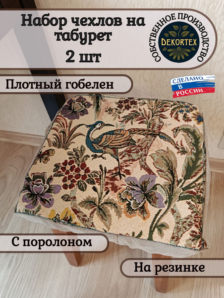 Чехол на табурет из гобелена квадратной формы размером 33х33 см. Верх выполнен из плотного, износостойкого гобелена Российского производства, плотностью 380 г/кв.м и однотонной рогожки. Крепится на табурет с помощью резинки. Благодаря поролоновой вставке высотой 2 см скроет на поверхности табурета неровности, потертости и придаст комфорт при использовании. Поролон легко вынимается и Вы можете почистить или постирать гобеленовый чехол. Допускается бережная стирка. Состав гобелена: 100% П/Э. Допускается погрешность размере табуретницы 1см.