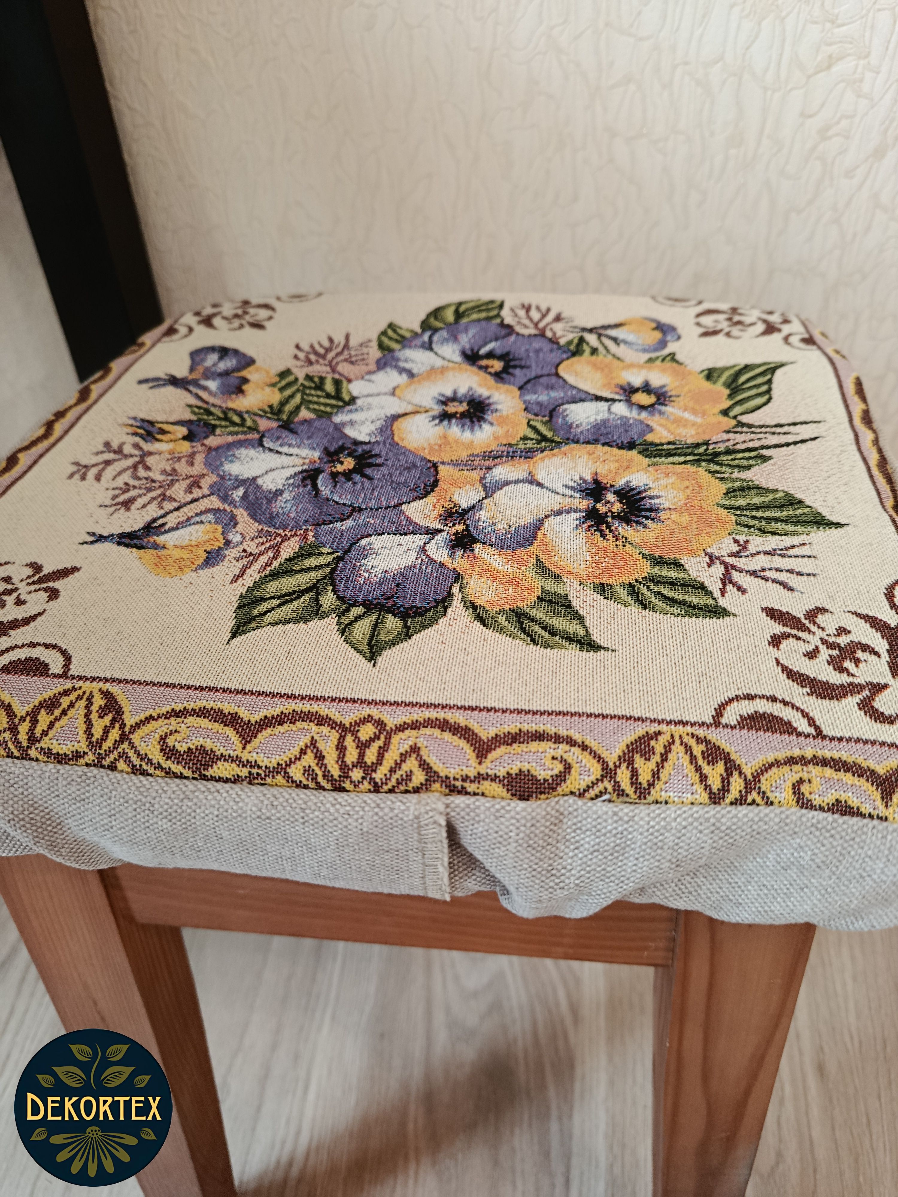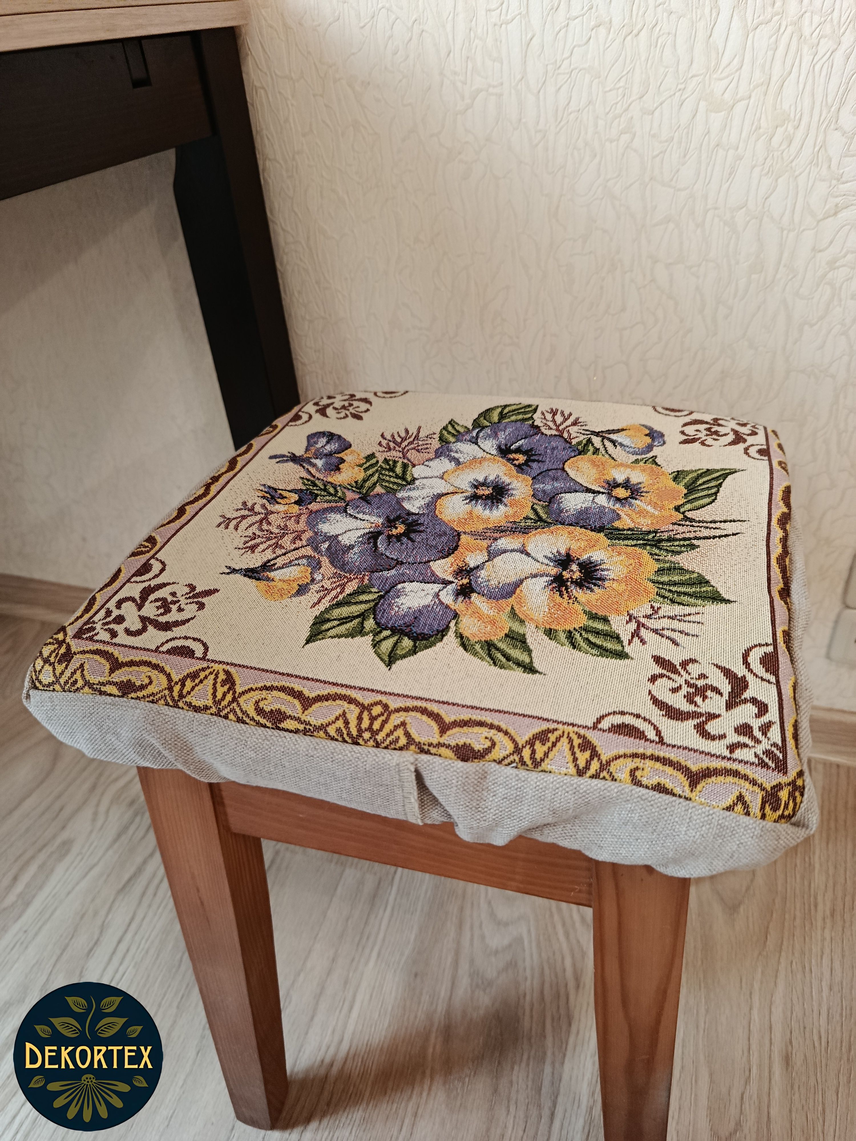 Чехол на табурет из гобелена квадратной формы размером 33х33 см. Верх выполнен из плотного, износостойкого гобелена Российского производства, плотностью 380 г/кв.м и однотонной рогожки. Крепится на табурет с помощью резинки. Благодаря поролоновой вставке высотой 2 см скроет на поверхности табурета неровности, потертости и придаст комфорт при использовании. Поролон легко вынимается и Вы можете почистить или постирать гобеленовый чехол. Допускается бережная стирка. Состав гобелена: 100% П/Э. Допускается погрешность размере табуретницы 1см.