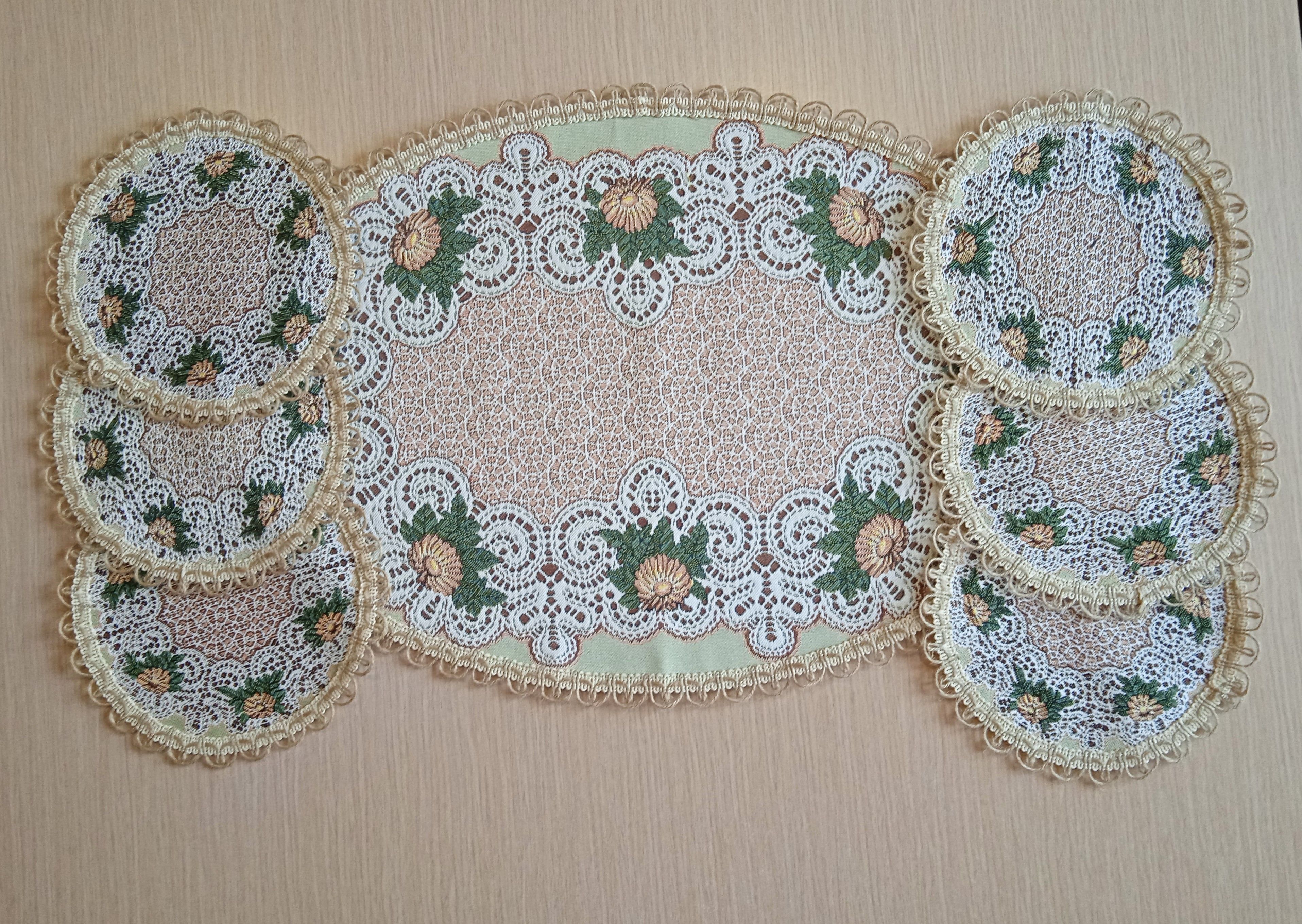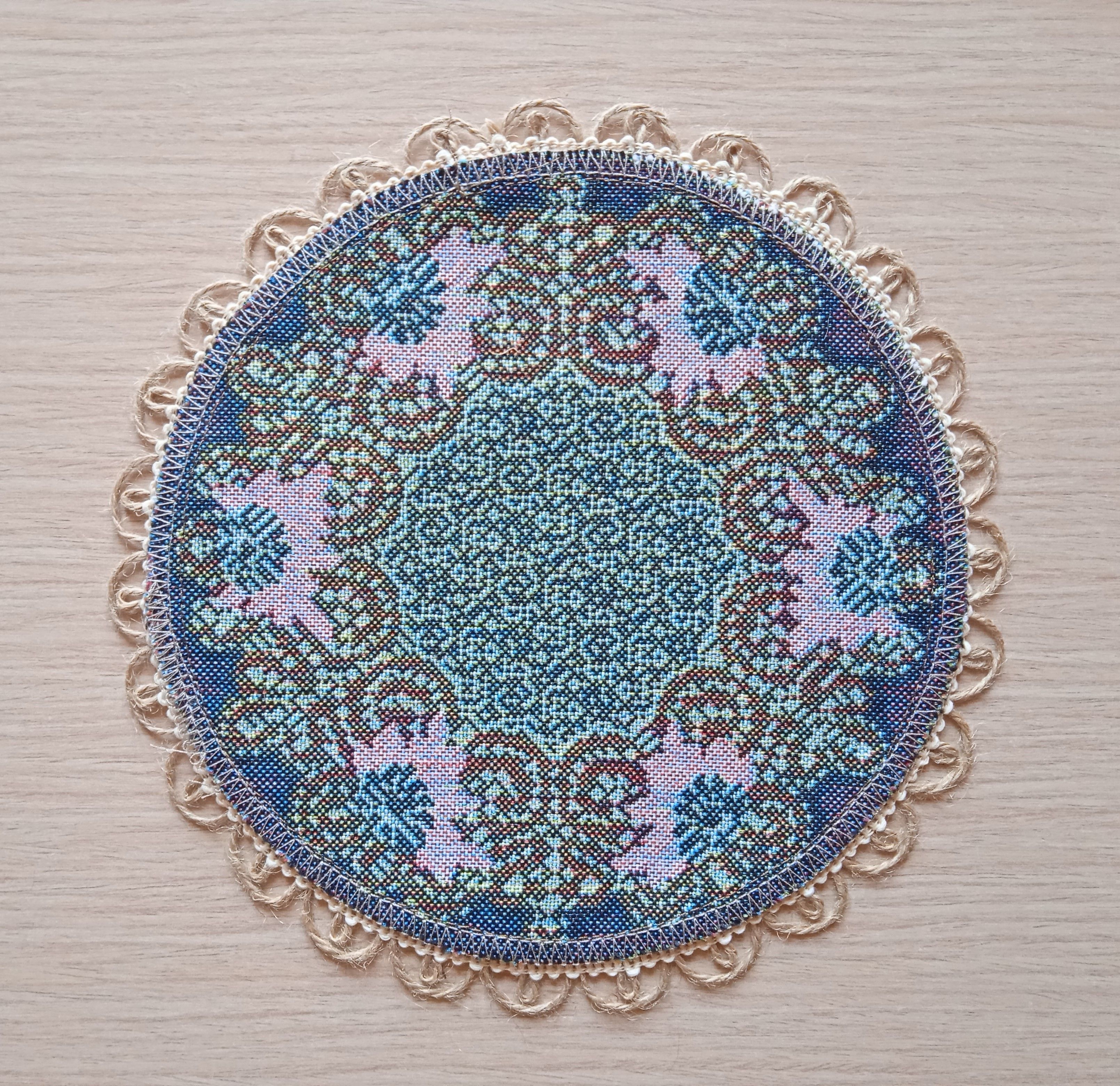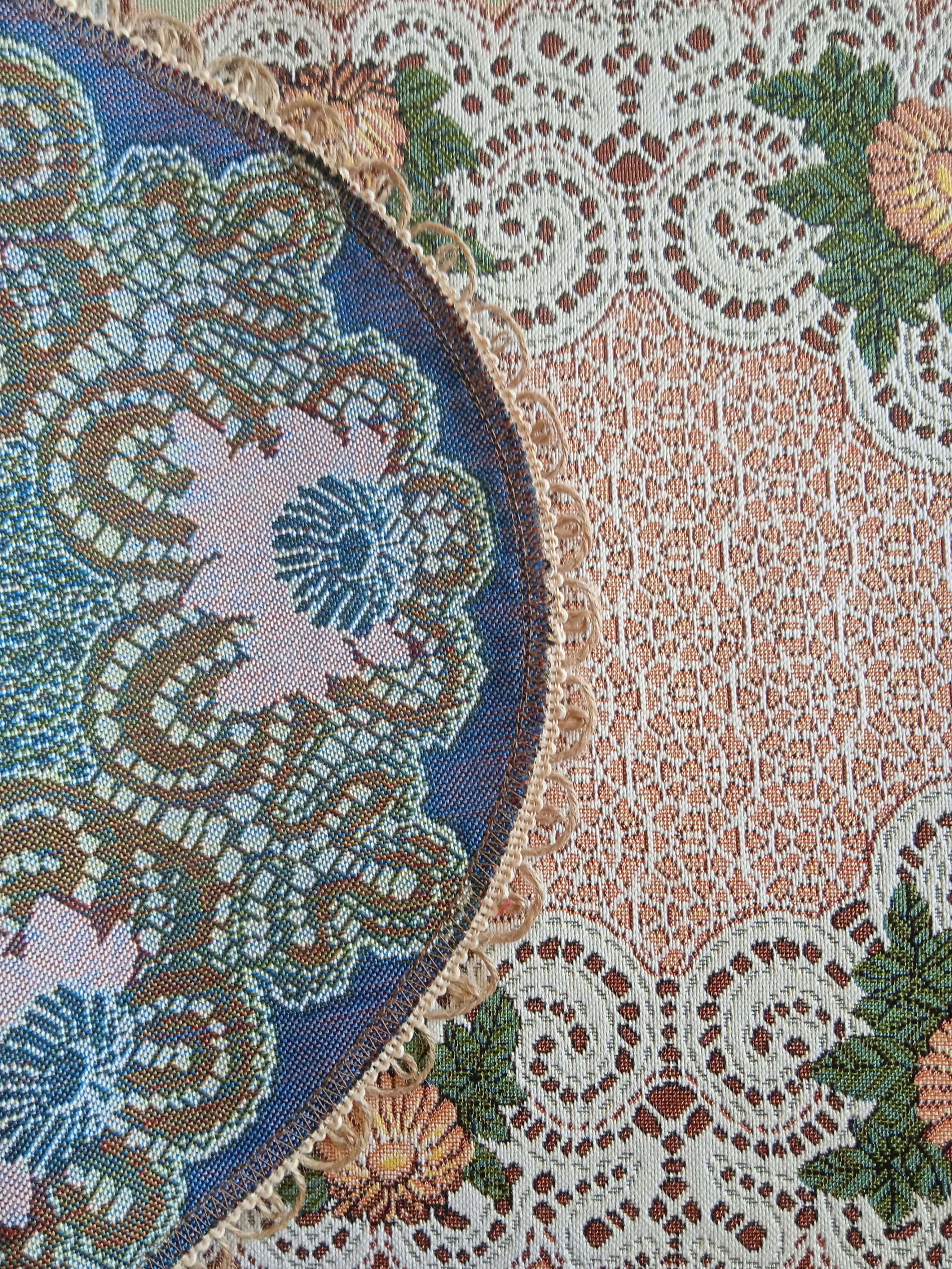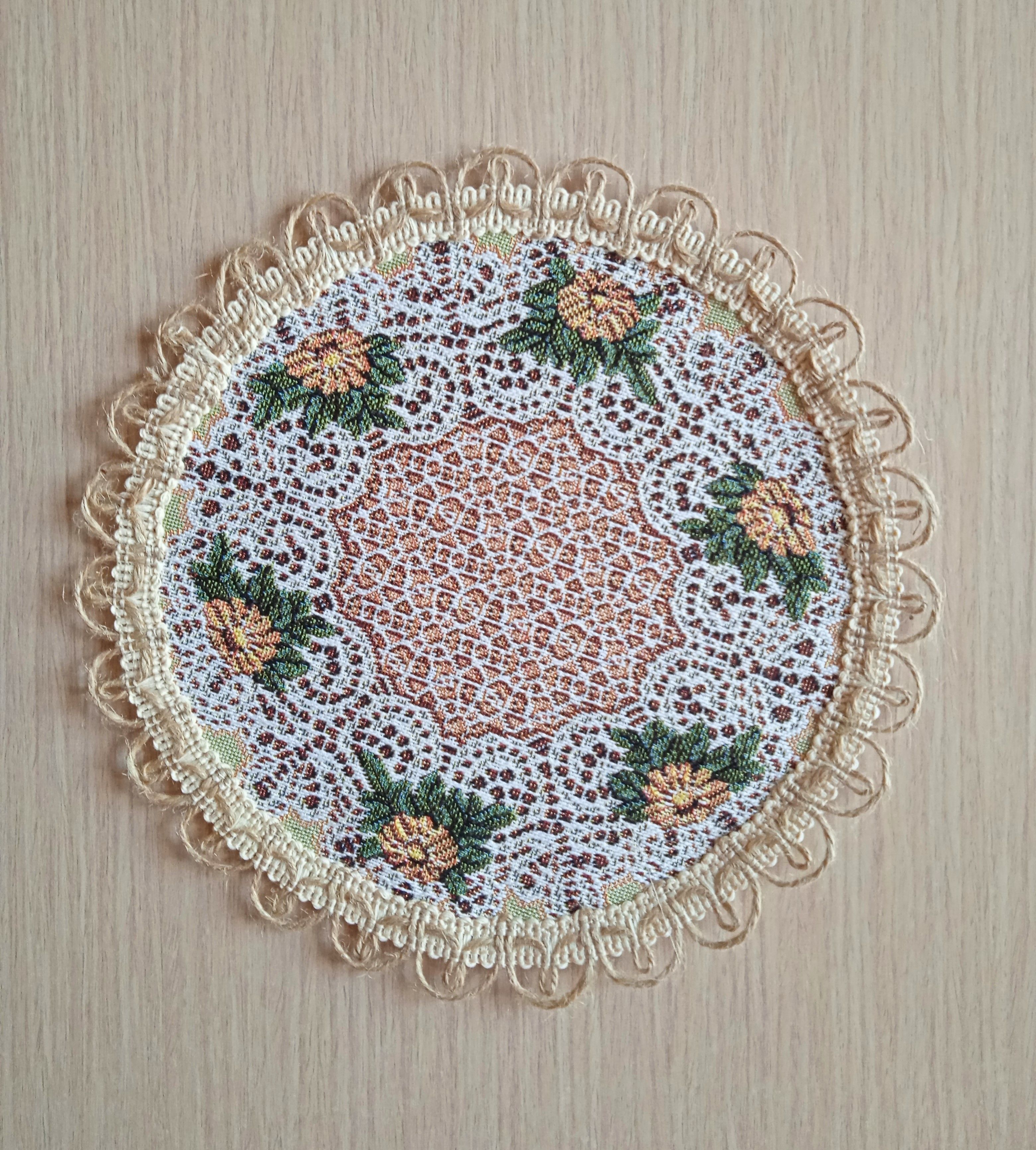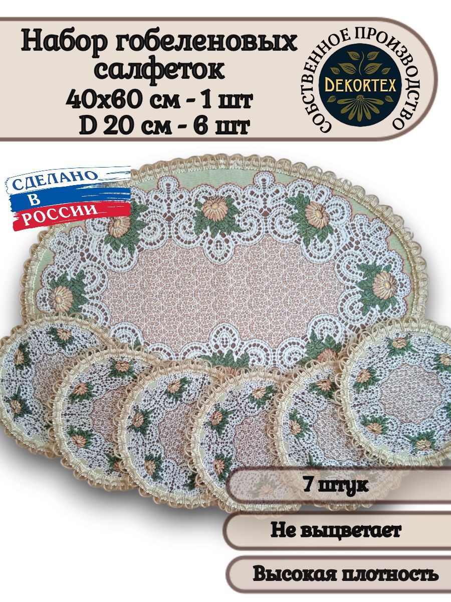 Декоративные гобеленовые салфетки это приятное и полезное украшение для сервировки стола. Салфетки могут продаваться по одной или наборами от двух до десяти штук. Форма, размер, цвет и рисунок салфеток можно выбрать по желанию покупателя. Декоративные салфетки круглой и овальной формы как правило обработаны красивой декоративной тесьмой подходящей по цвету к рисунку на ткани. Внимание! Тесьма может отличаться от представленной на фото. Гобеленовые декоративные салфетки не только модный, красивый предмет интерьера но и полезны и практичны в использовании. Салфетки помогут предохранить поверхность мебели от повреждения. Гобеленовые салфетки устойчивы к загрязнению, хорошо стираются при температуре 30 градусов на дают усадки не линяют. Изделия из гобеленовой ткани имеют длительный срок службы и сохраняют первоначальный вид и форму.