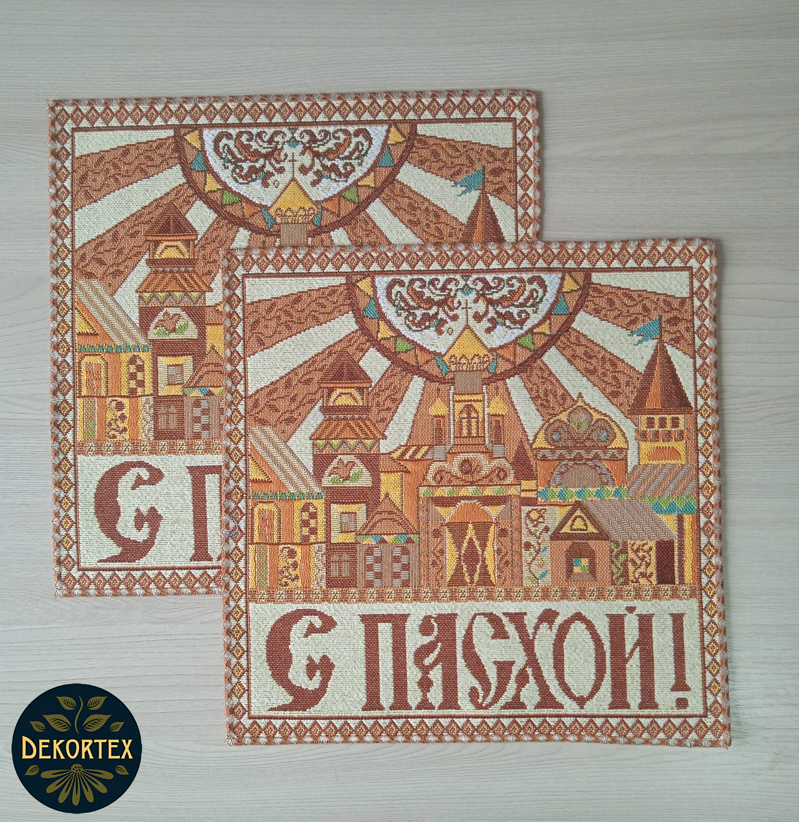 Салфетка декоративная из гобеленовой ткани с рисунком Пасхальной тематики. Нежные, светлые тона рисунка совпадают с общим настроем большого праздника. Салфетка с пасхальным рисунком прекрасное украшение праздничного стола. Подчеркивает и дополняет значимость и настроение Светлого Воскресения. Может стать приятным подарком для Ваших родных и близких. Такие не дорогие но очень приятные предметы интерьера позволяют нам добавить в привычный быт атмосферу праздника.