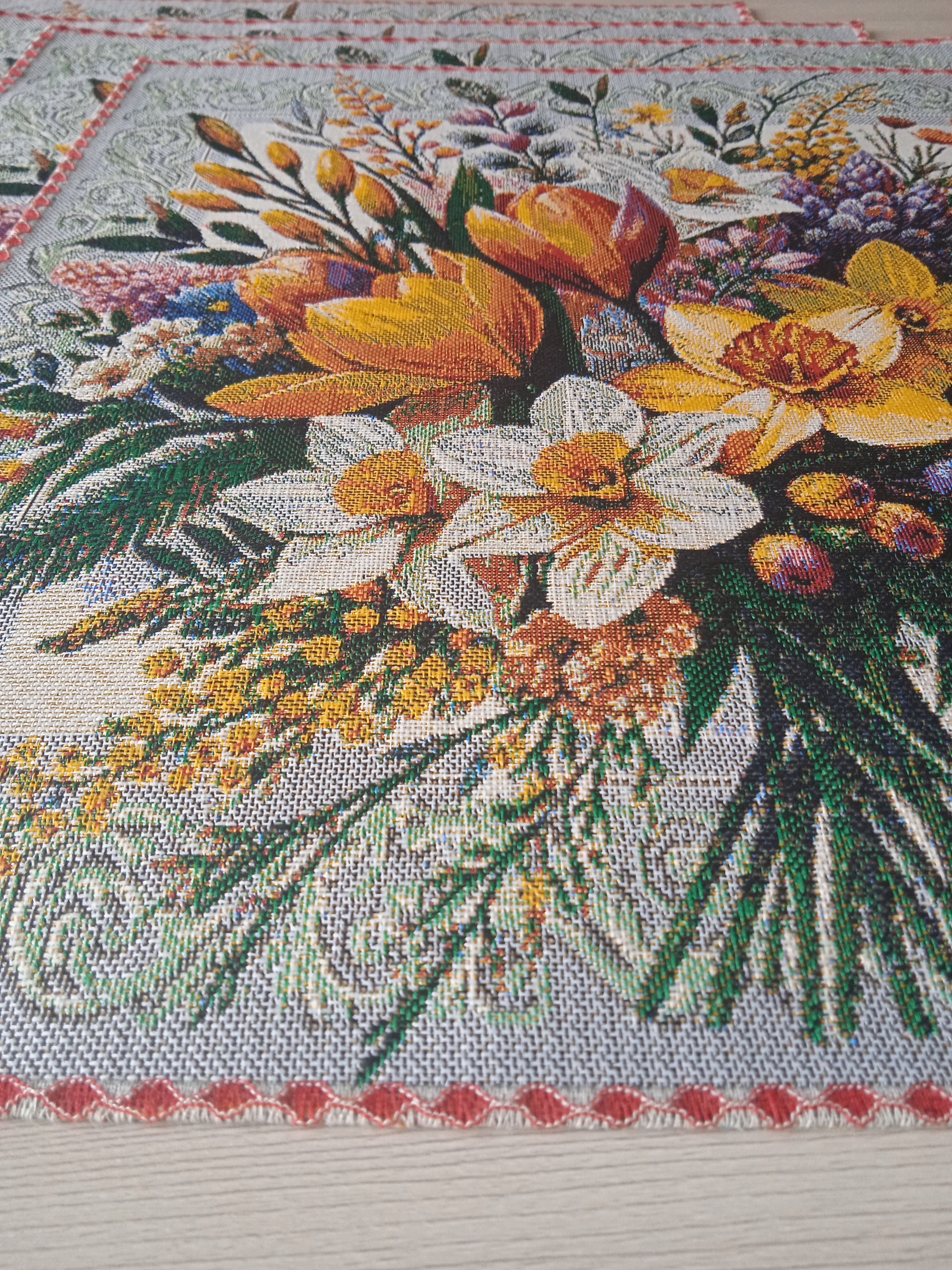 Декоративные гобеленовые салфетки это приятное и полезное украшение для сервировки стола. Салфетки могут продаваться по одной или наборами от двух до десяти штук. Форма, размер, цвет и рисунок салфеток можно выбрать по желанию покупателя. Декоративные салфетки круглой и овальной формы как правило обработаны красивой декоративной тесьмой подходящей по цвету к рисунку на ткани. Гобеленовые декоративные салфетки не только модный, красивый предмет интерьера но и полезны и практичны в использовании. Салфетки помогут предохранить поверхность мебели от повреждения. Гобеленовые салфетки устойчивы к загрязнению, хорошо стираются при температуре 30 градусов на дают усадки не линяют. Изделия из гобеленовой ткани имеют длительный срок службы и сохраняют первоначальный вид и форму.
