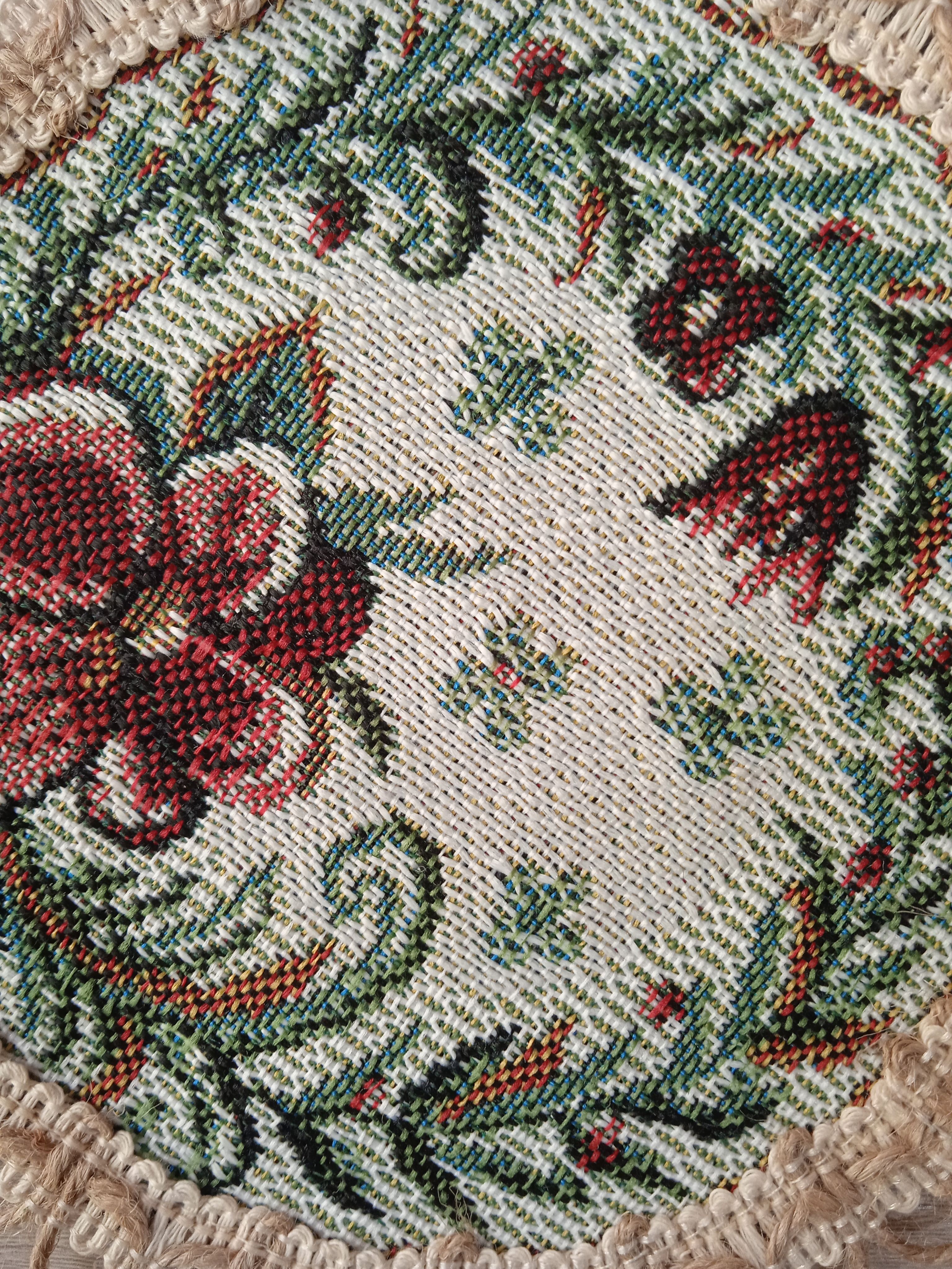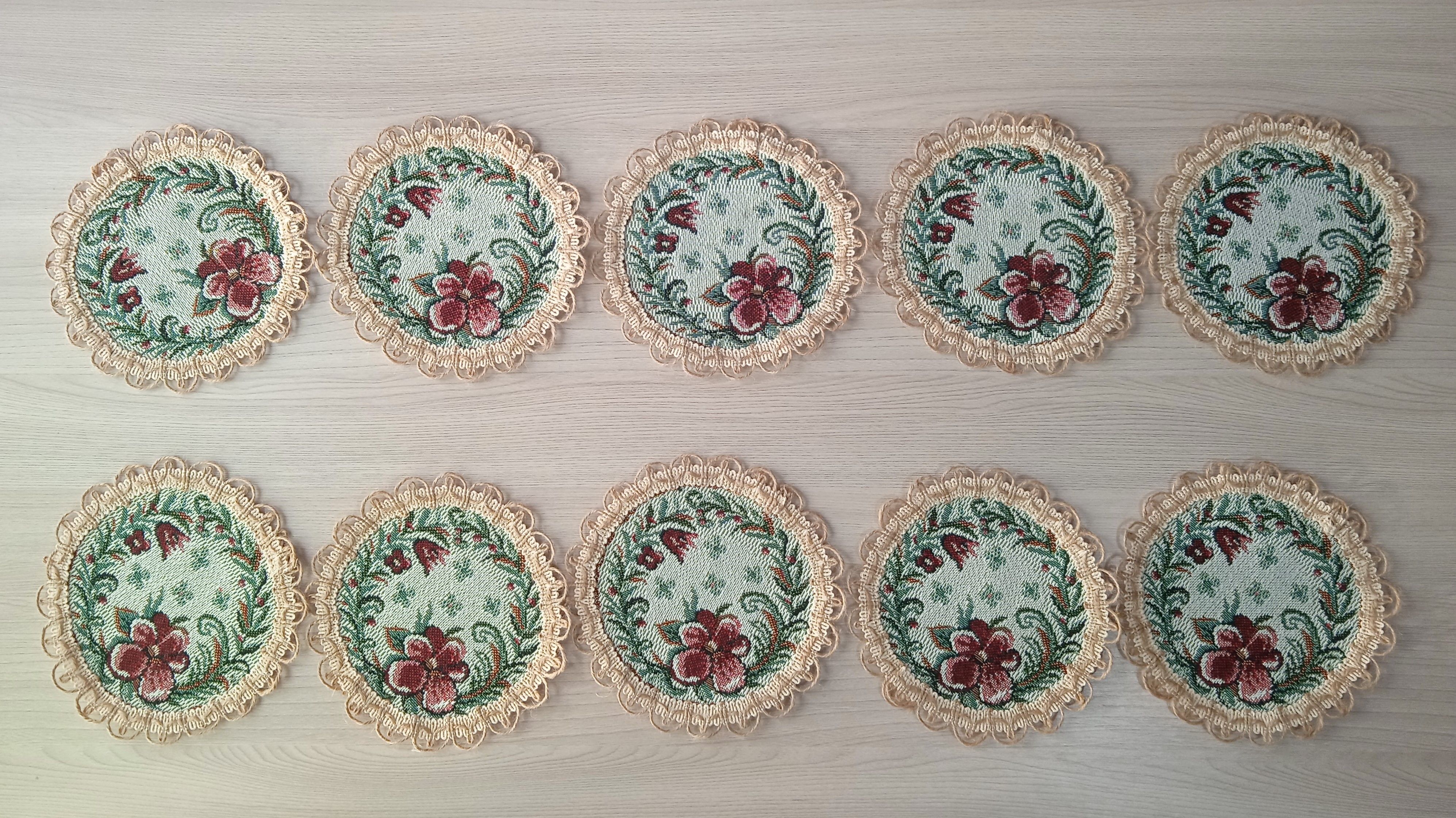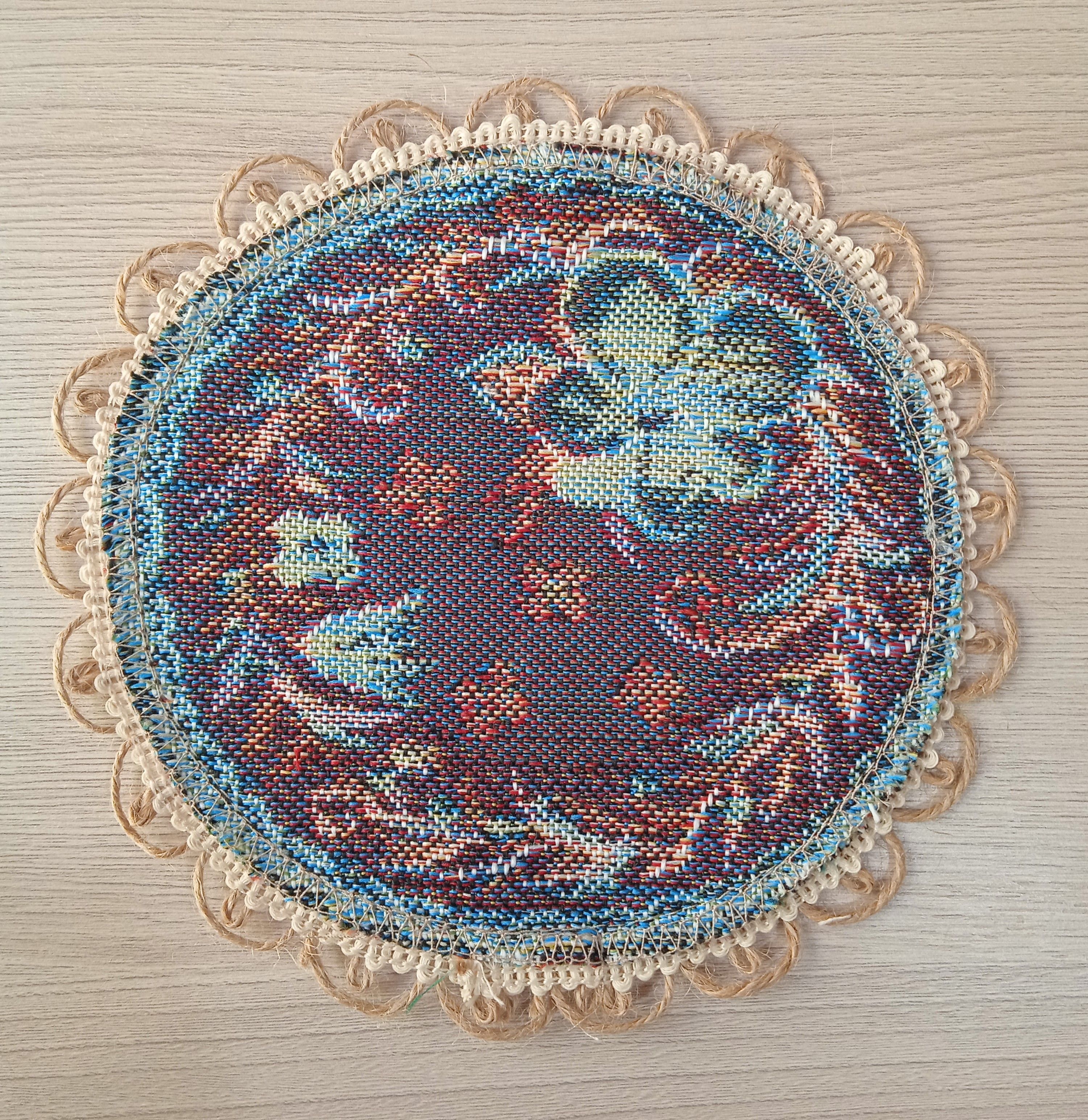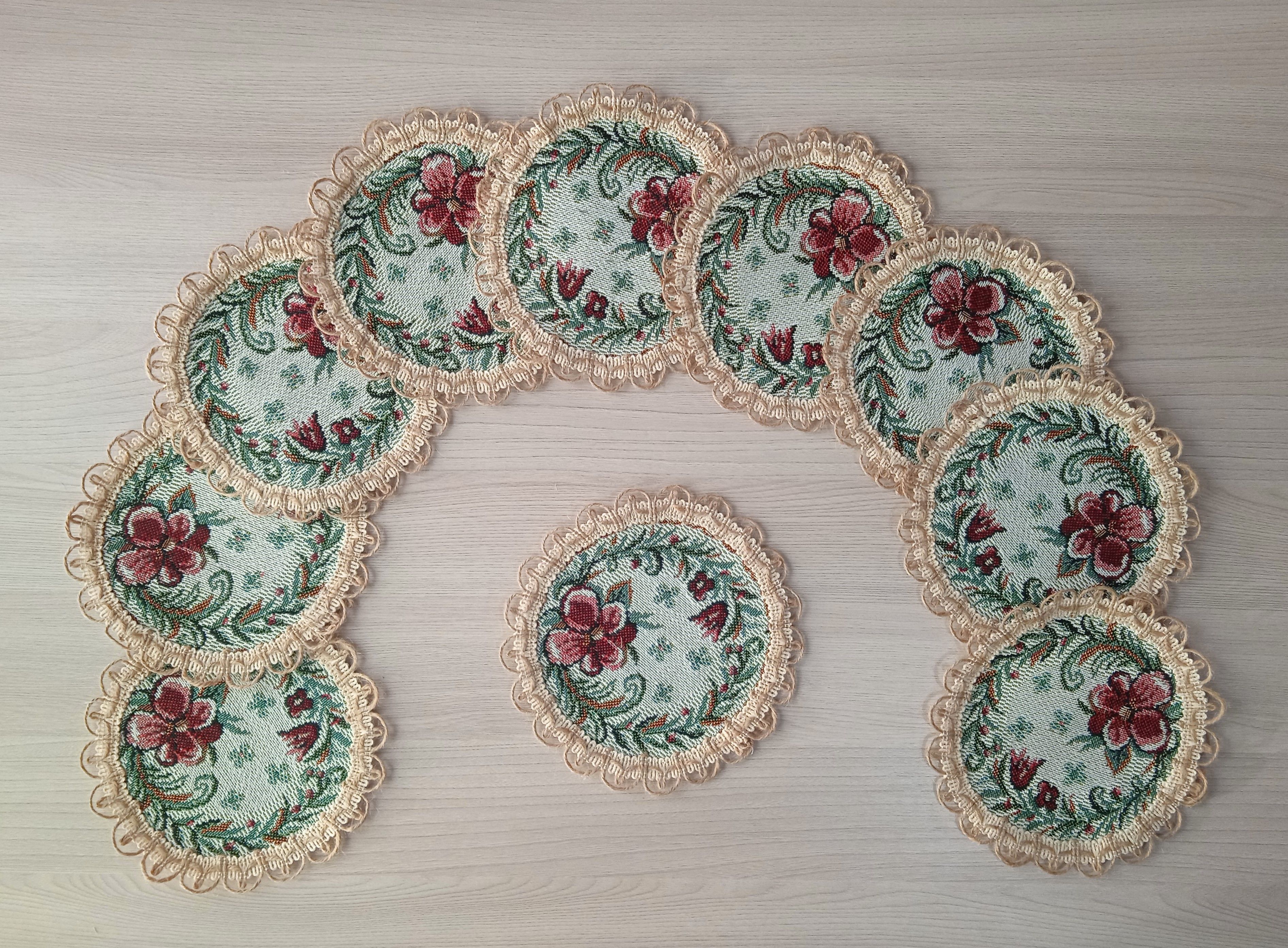 Декоративные гобеленовые салфетки это приятное и полезное украшение для сервировки стола. Салфетки могут продаваться по одной или наборами от двух до десяти штук. Форма, размер, цвет и рисунок салфеток можно выбрать по желанию покупателя. Декоративные салфетки круглой и овальной формы как правило обработаны красивой декоративной тесьмой подходящей по цвету к рисунку на ткани. Цвет тесьмы может отличаться от представленного на фото. Гобеленовые декоративные салфетки не только модный, красивый предмет интерьера но и полезны и практичны в использовании. Салфетки помогут предохранить поверхность мебели от повреждения. Гобеленовые салфетки устойчивы к загрязнению, хорошо стираются при температуре 30 градусов на дают усадки не линяют. Изделия из гобеленовой ткани имеют длительный срок службы и сохраняют первоначальный вид и форму.