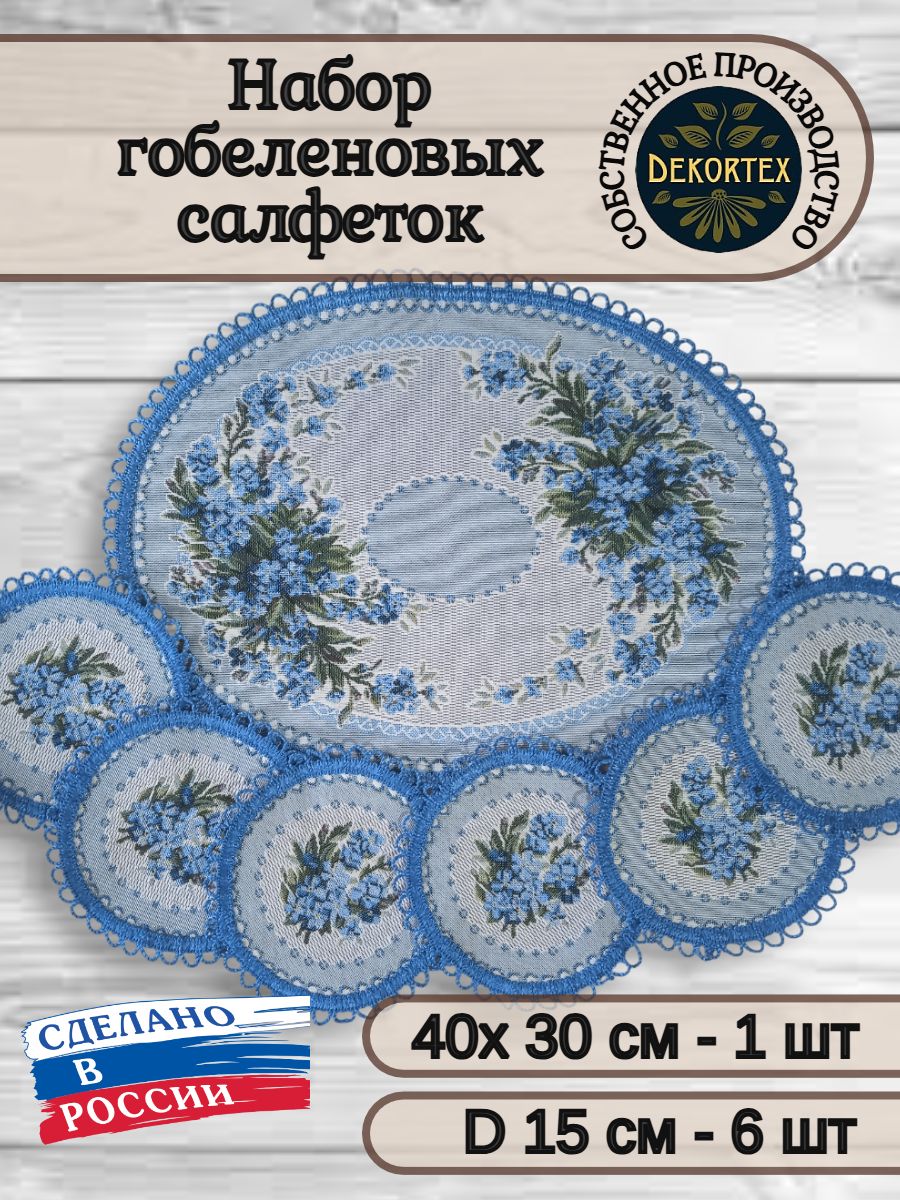 Декоративные гобеленовые салфетки это приятное и полезное украшение для сервировки стола. Салфетки могут продаваться по одной или наборами от двух до десяти штук. Форма, размер, цвет и рисунок салфеток можно выбрать по желанию покупателя. Декоративные салфетки круглой и овальной формы как правило обработаны красивой декоративной тесьмой подходящей по цвету к рисунку на ткани. Гобеленовые декоративные салфетки не только модный, красивый предмет интерьера но и полезны и практичны в использовании. Салфетки помогут предохранить поверхность мебели от повреждения. Гобеленовые салфетки устойчивы к загрязнению, хорошо стираются при температуре 30 градусов на дают усадки не линяют. Изделия из гобеленовой ткани имеют длительный срок службы и сохраняют первоначальный вид и форму.